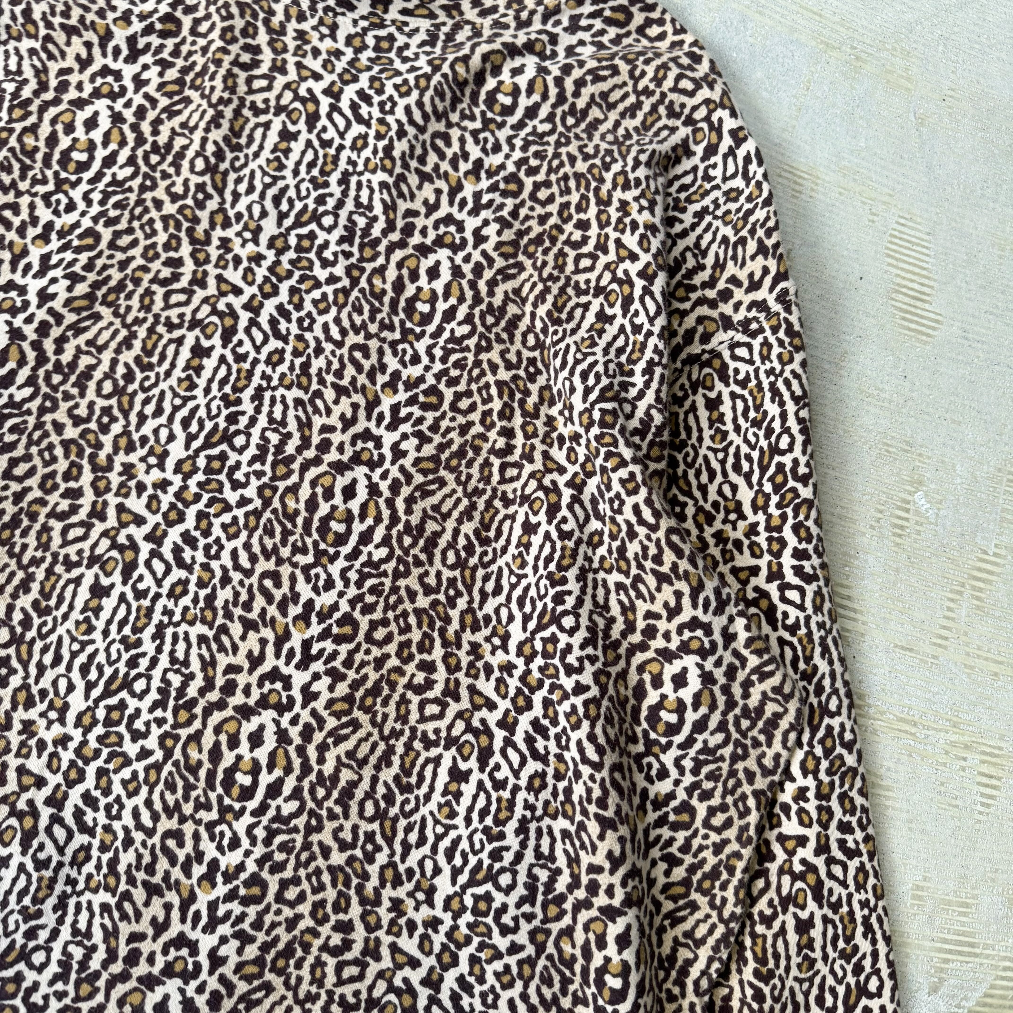 ブラウン×ブラックのレオパード柄をのせた90年代トップス。