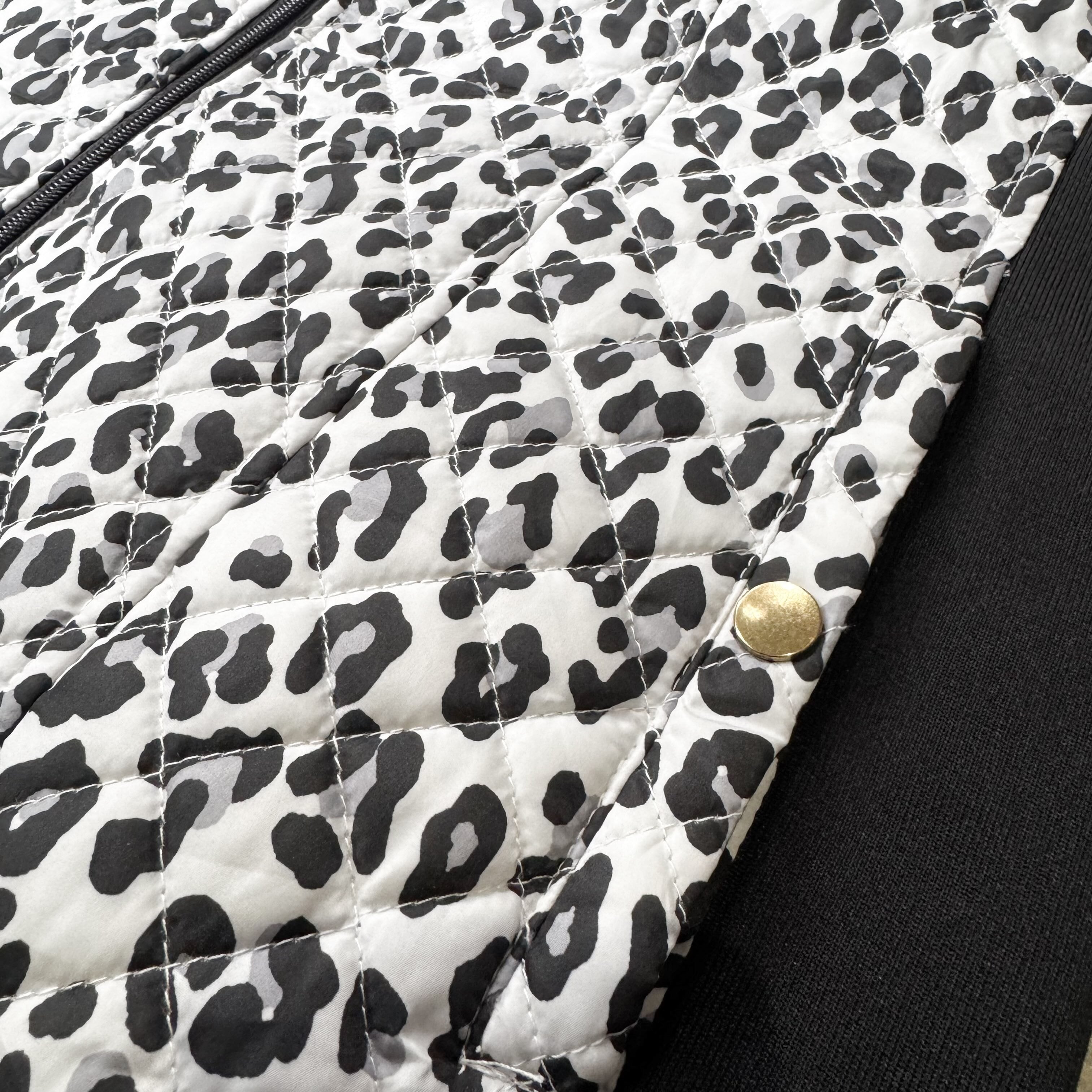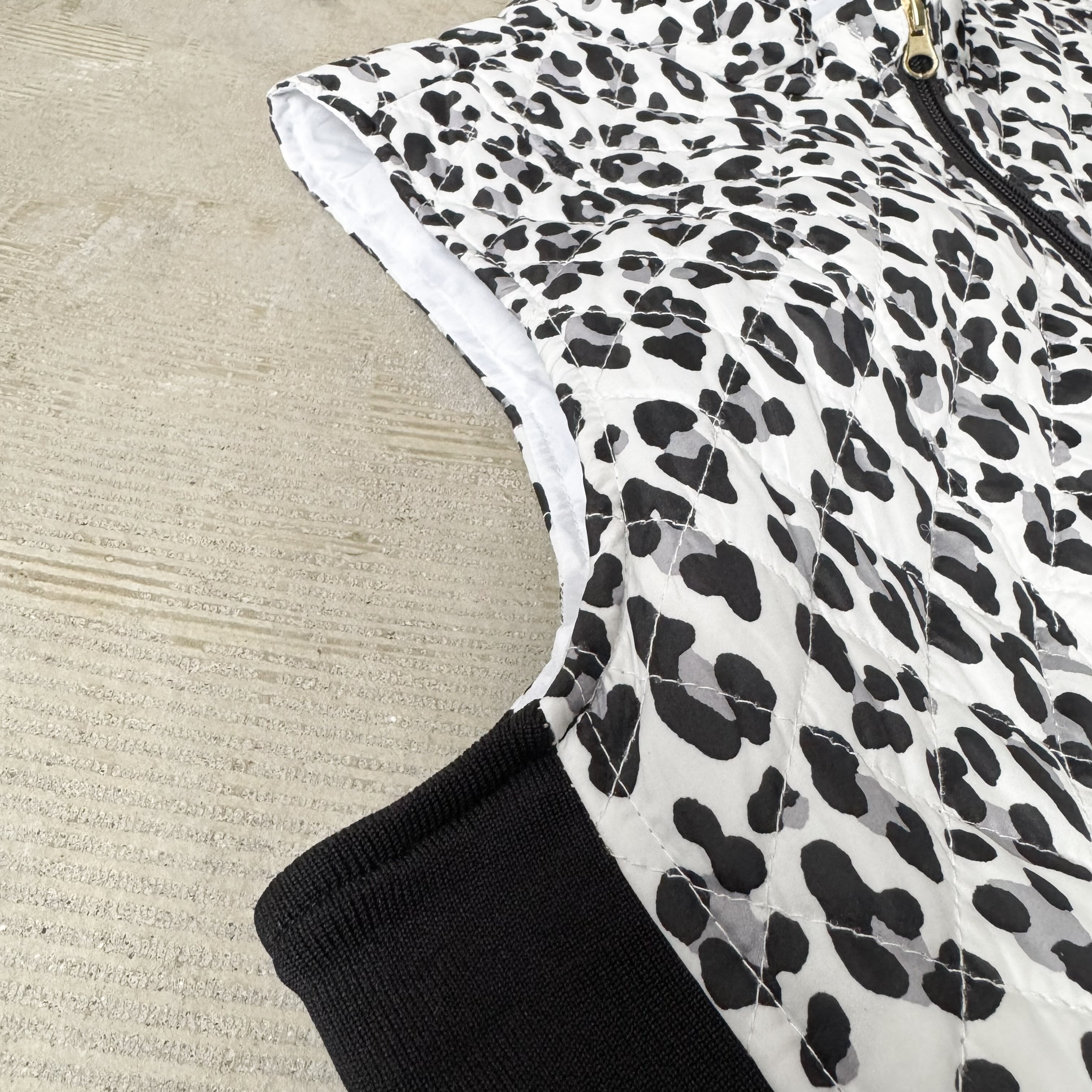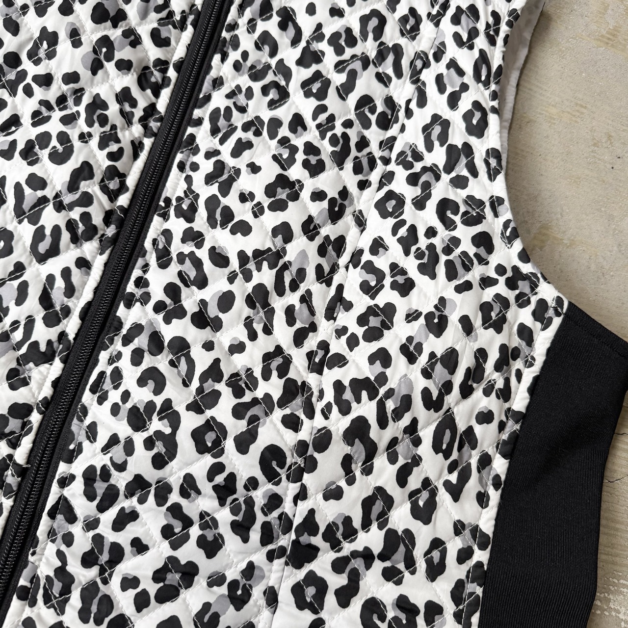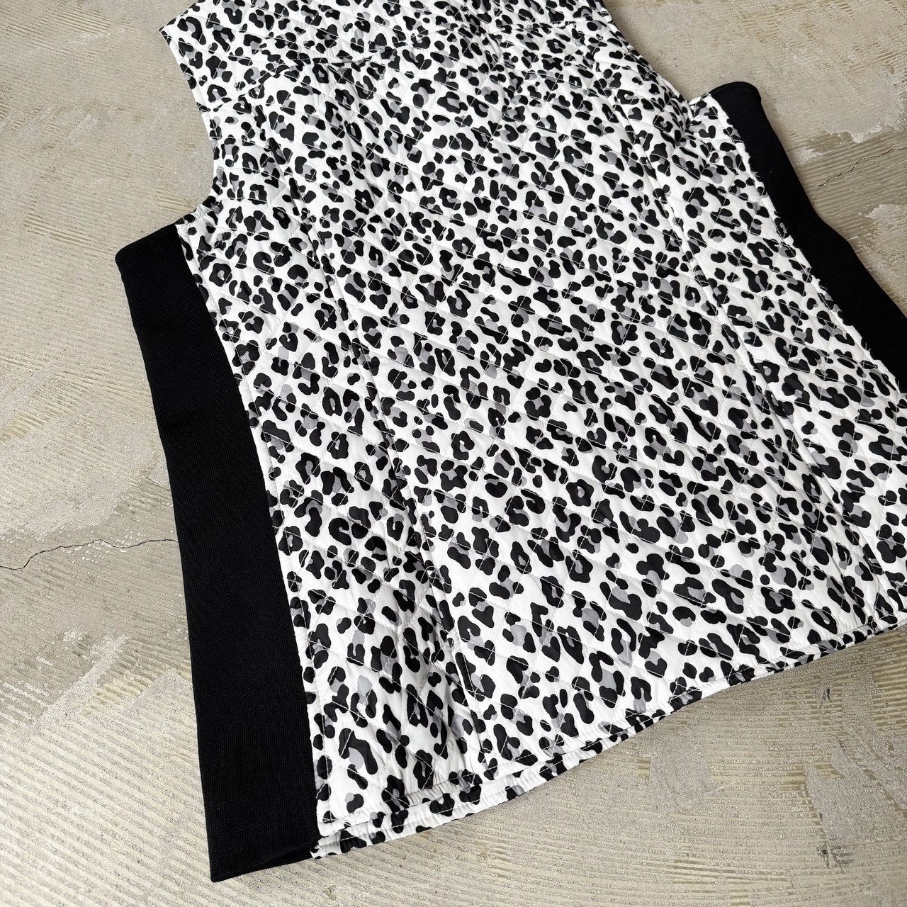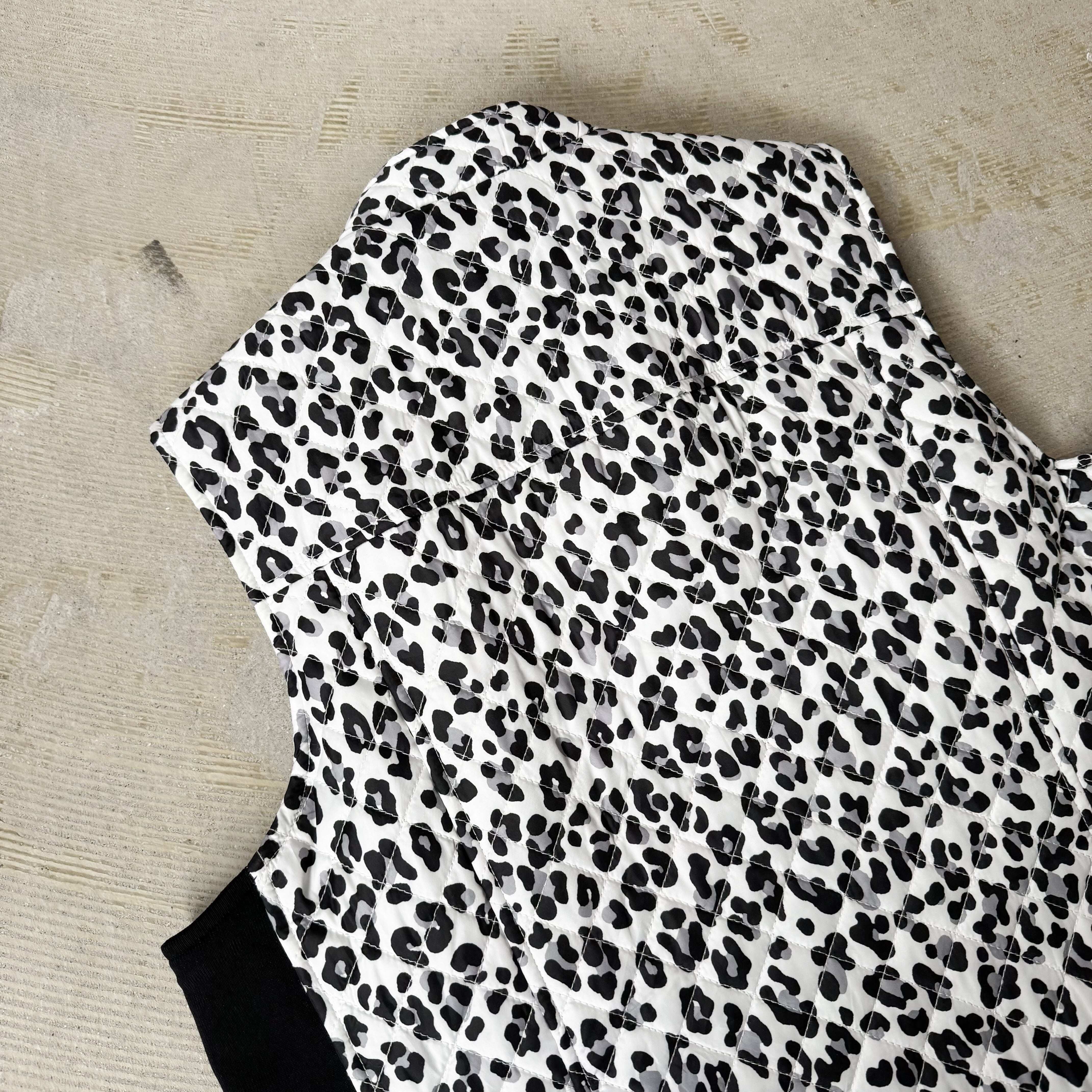・黒×白のレオパード柄が印象的なキルティングベスト。