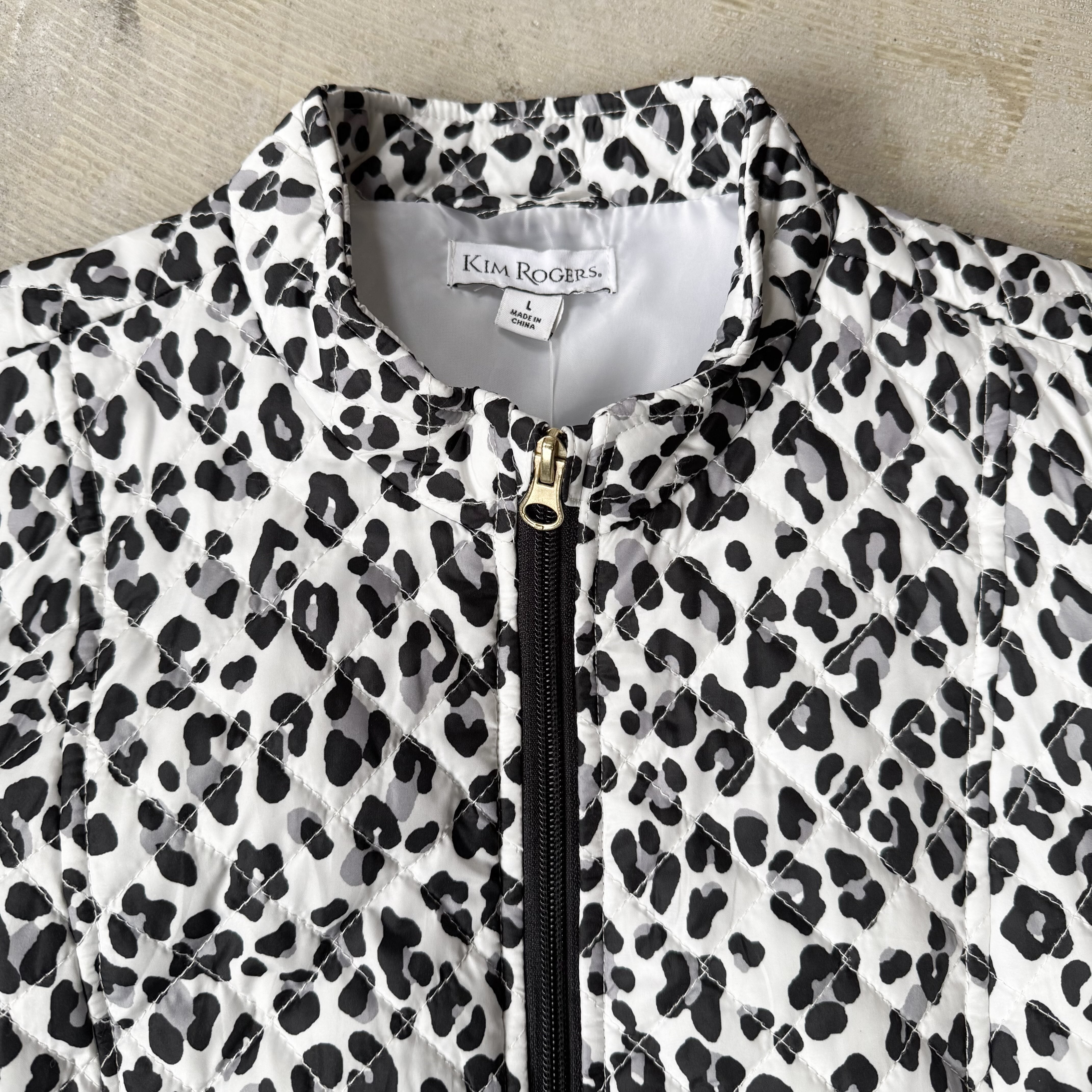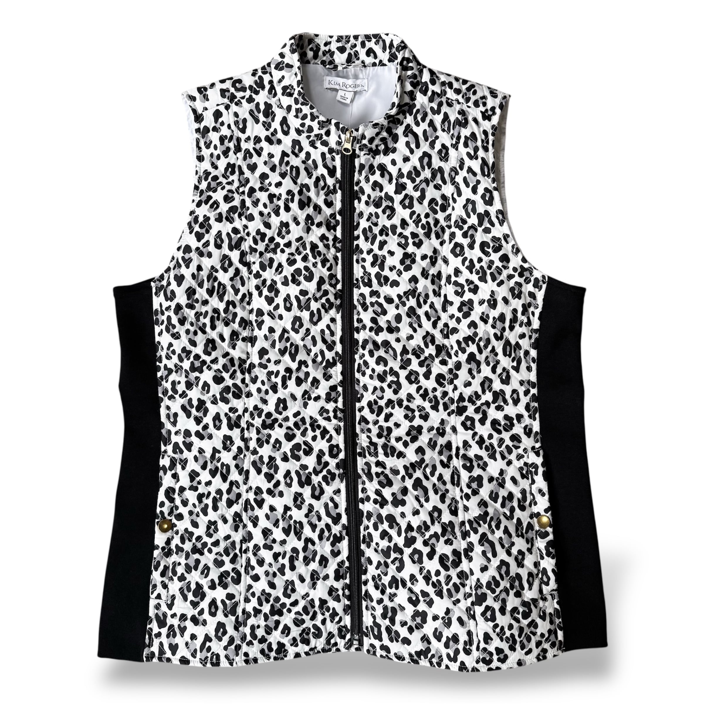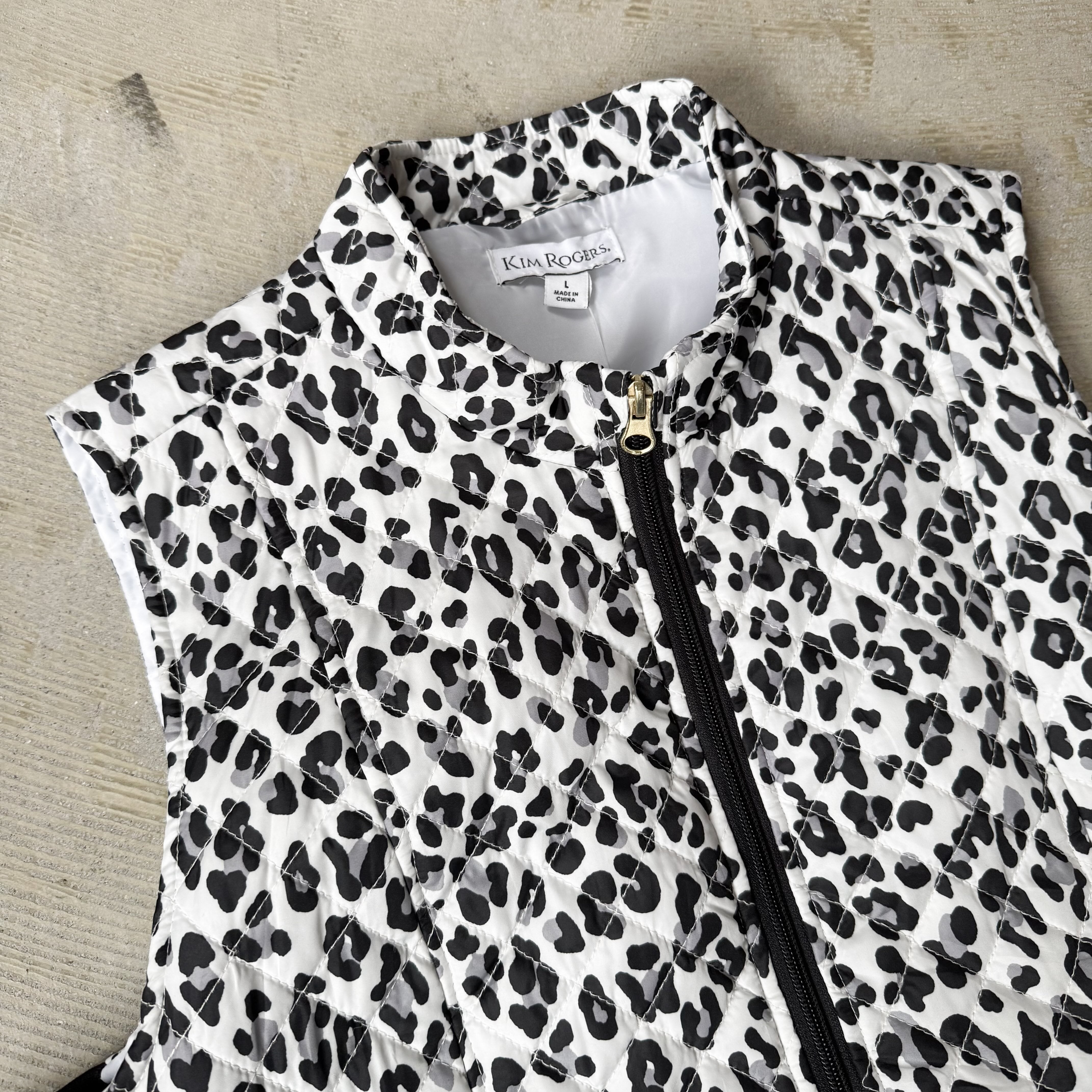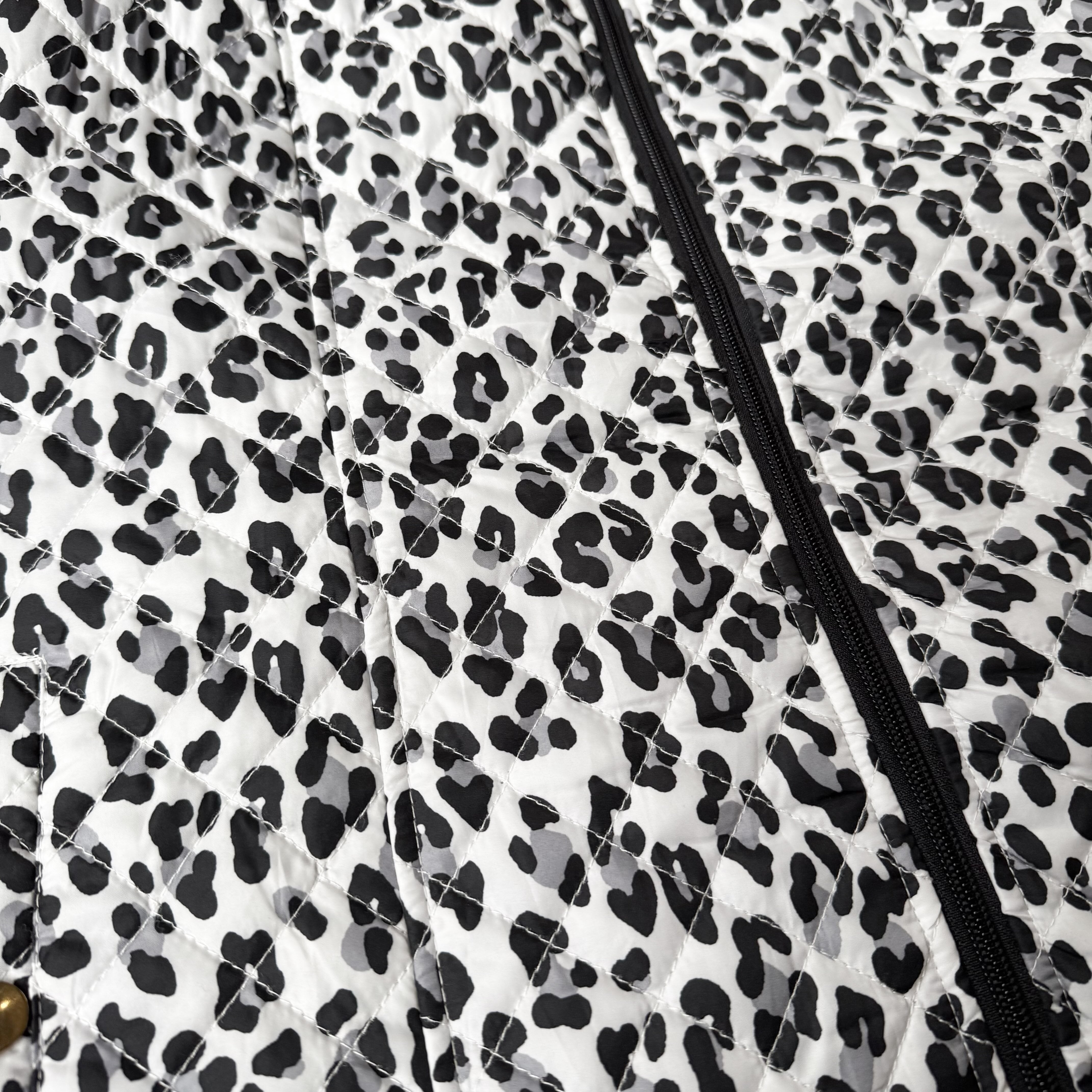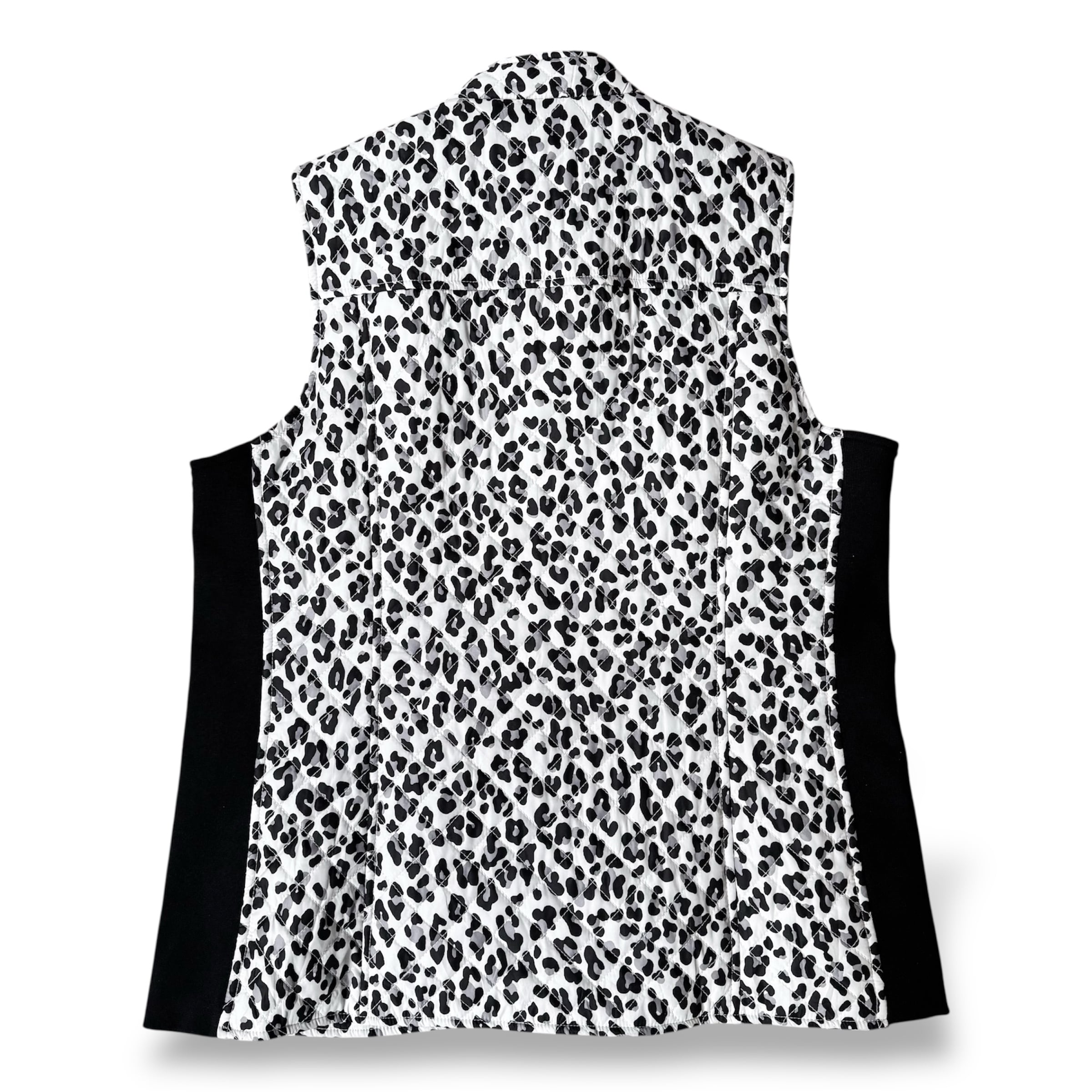 ・黒×白のレオパード柄が印象的なキルティングベスト。