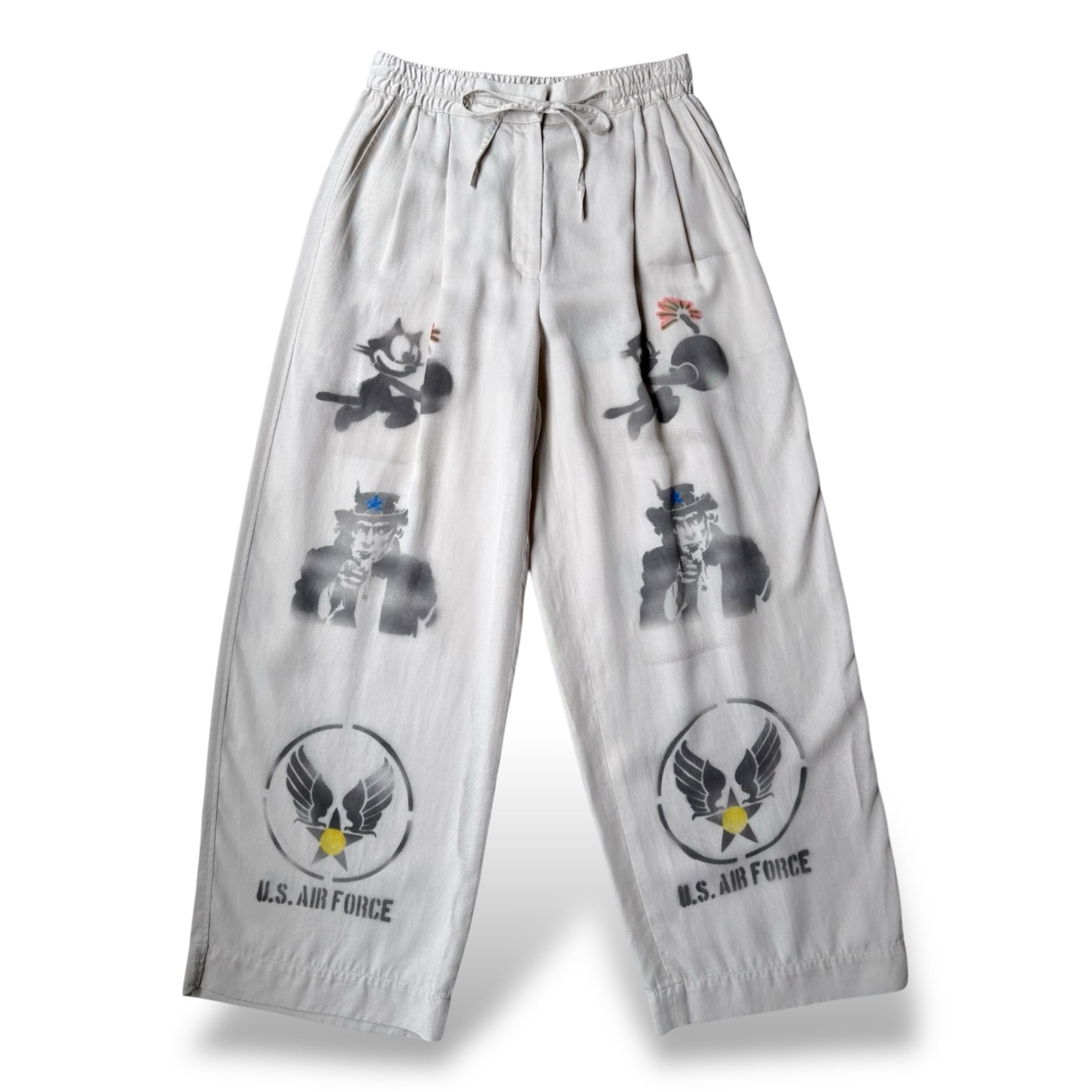HAND PAINTED STENCIL ART DESIGN WIDE PANTS / ハンド ペイント ステンシル アート デザイン ワイド パンツ