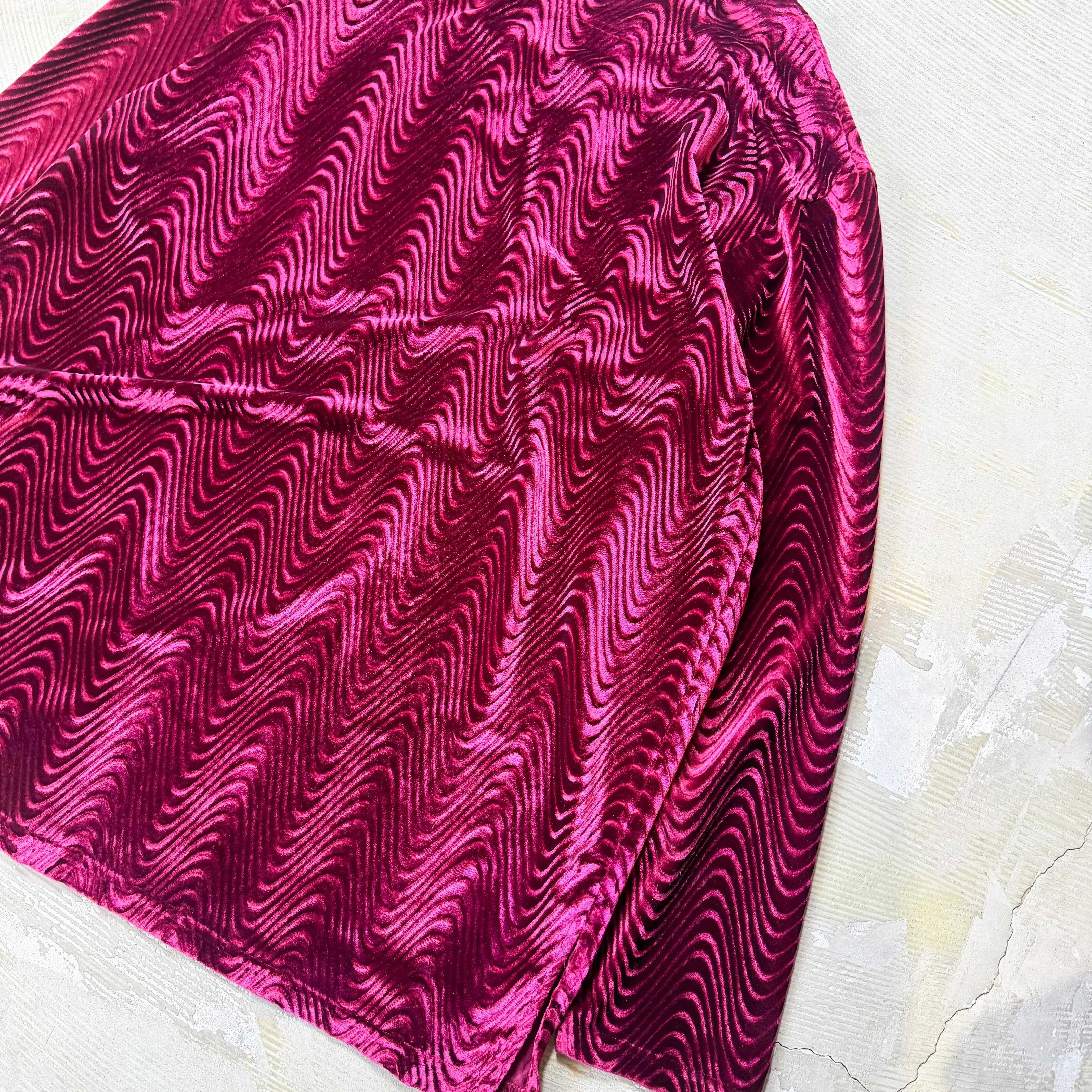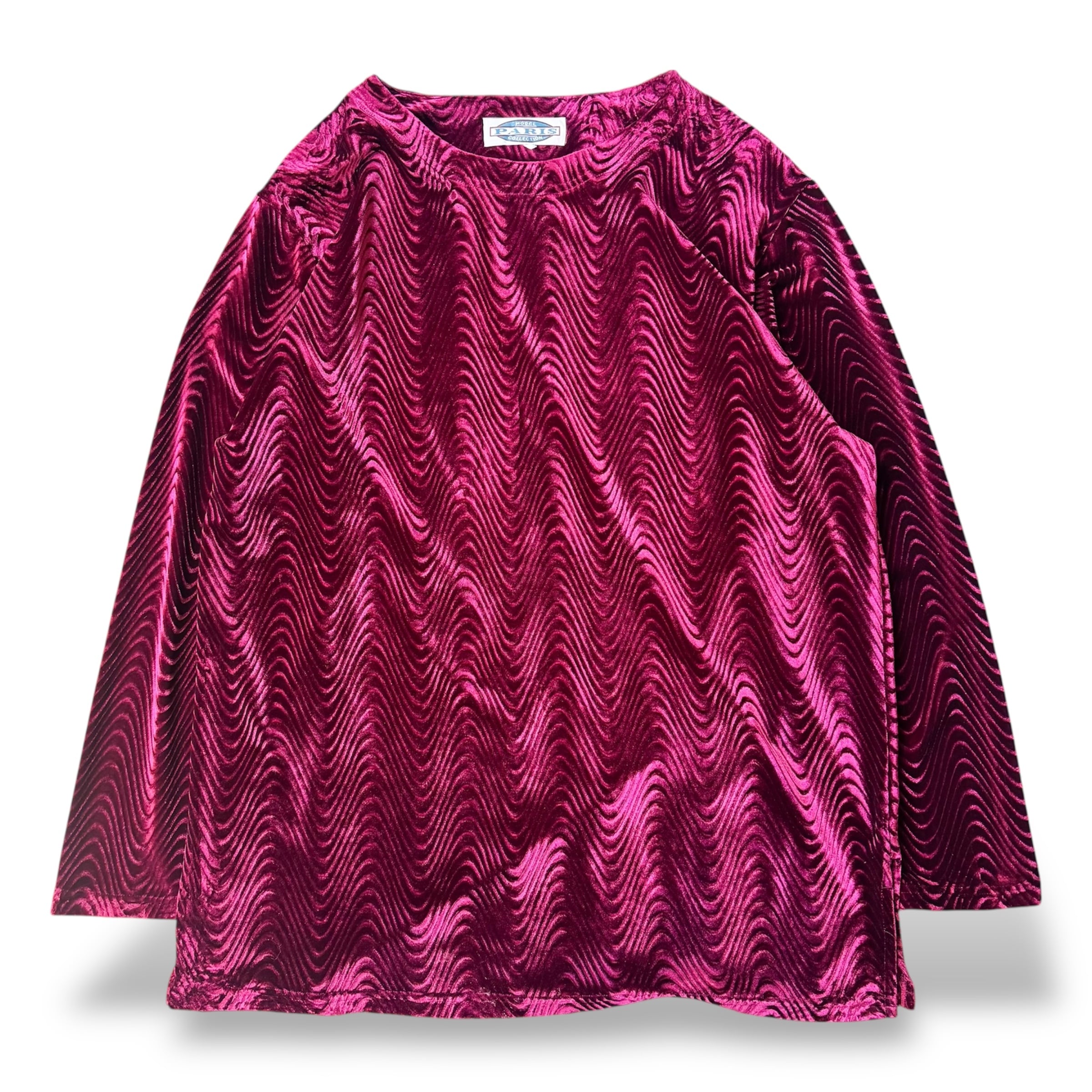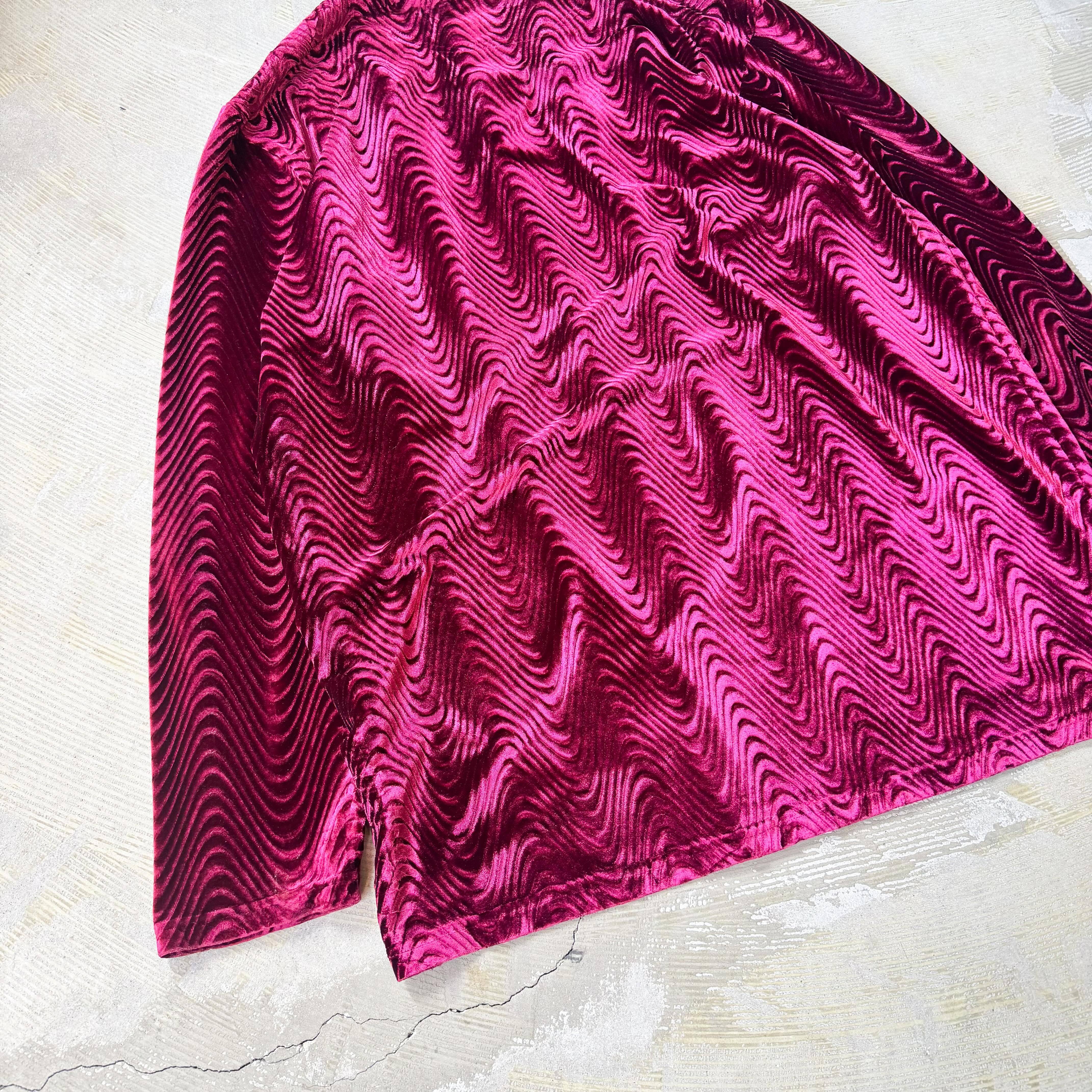 1990's VINTAGE WAVE PATTERN VELVET L/S TOPS / 90年代 ヴィンテージ 柄 ベルベット ベロア 長袖 トップス