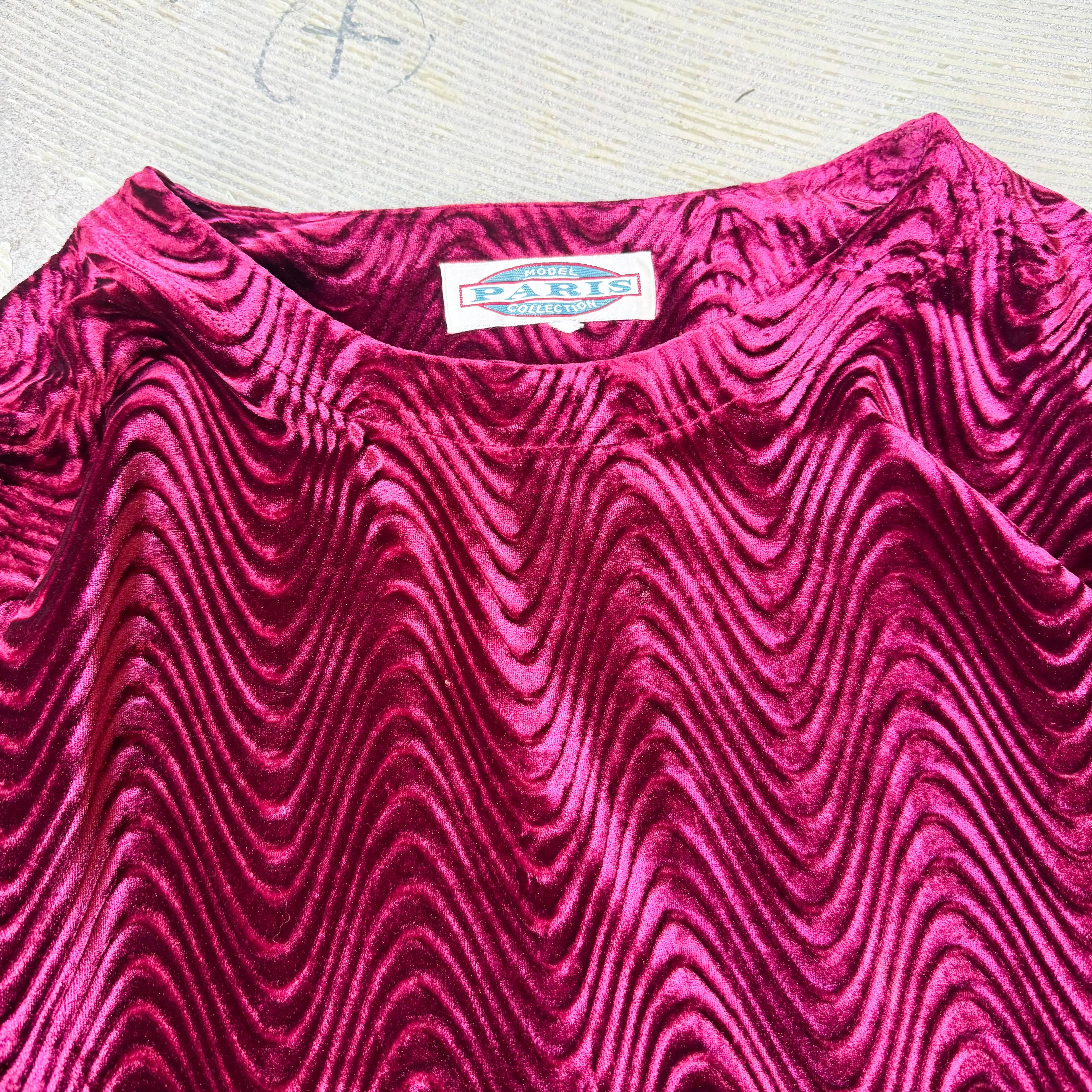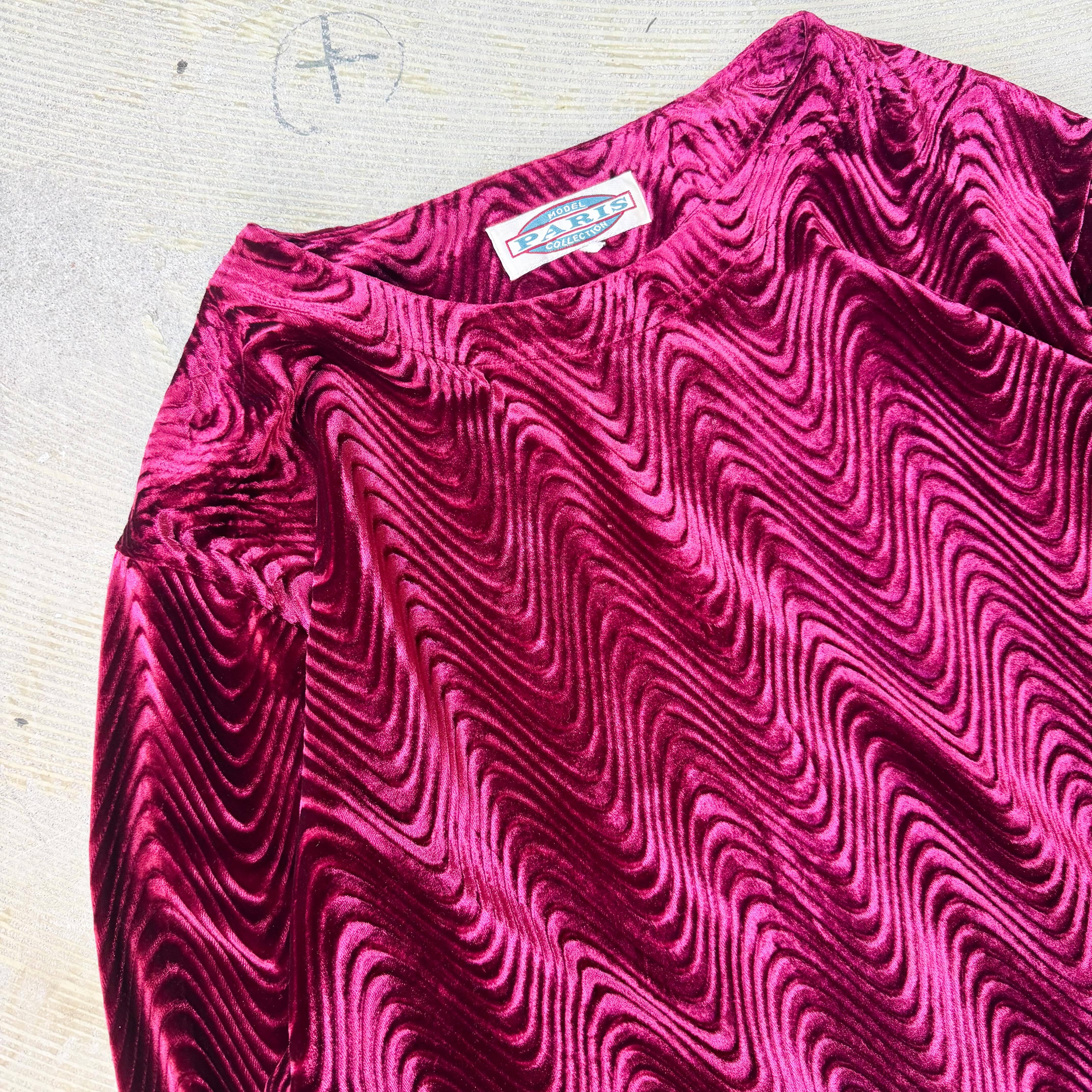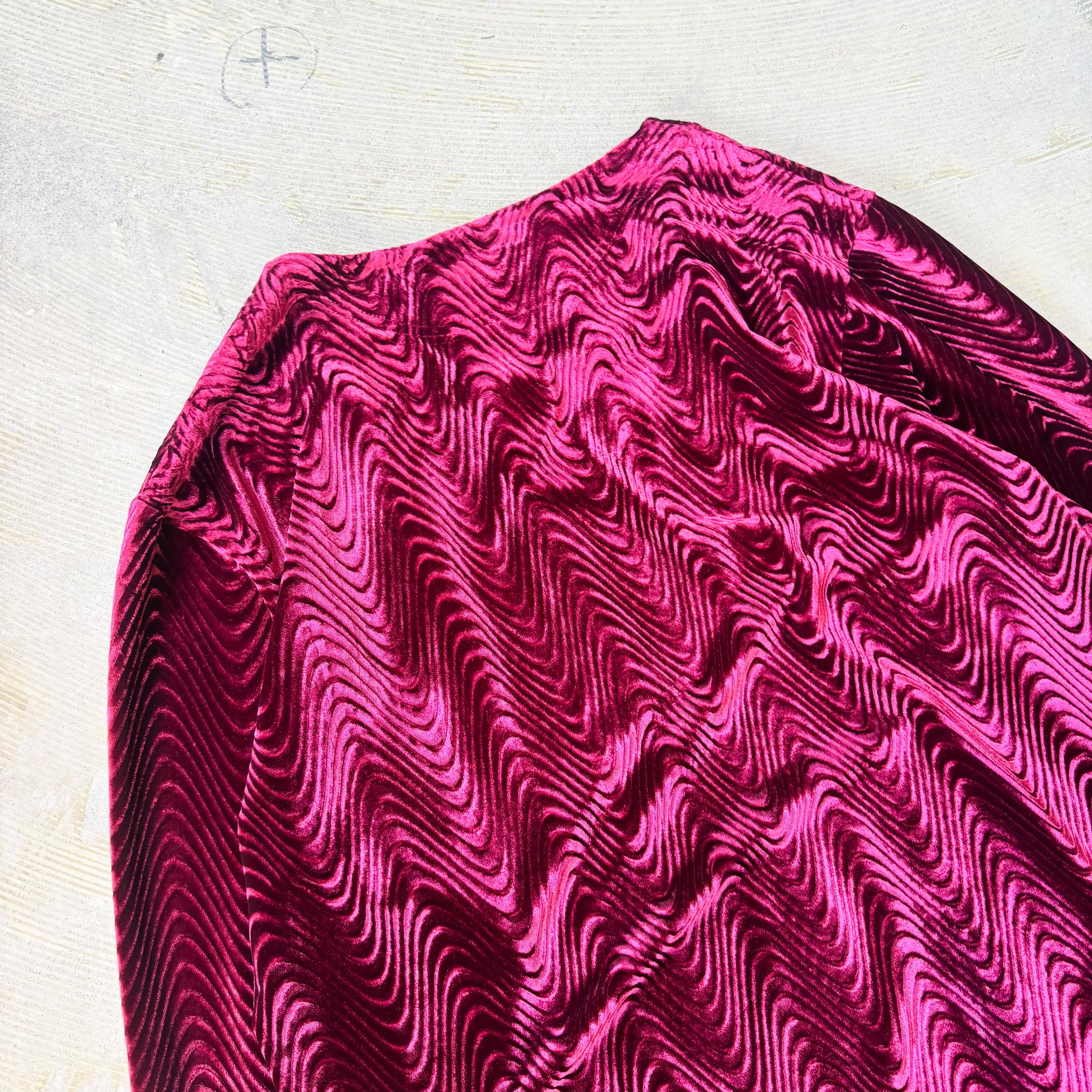 1990's VINTAGE WAVE PATTERN VELVET L/S TOPS / 90年代 ヴィンテージ 柄 ベルベット ベロア 長袖 トップス