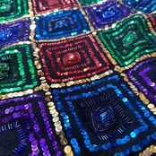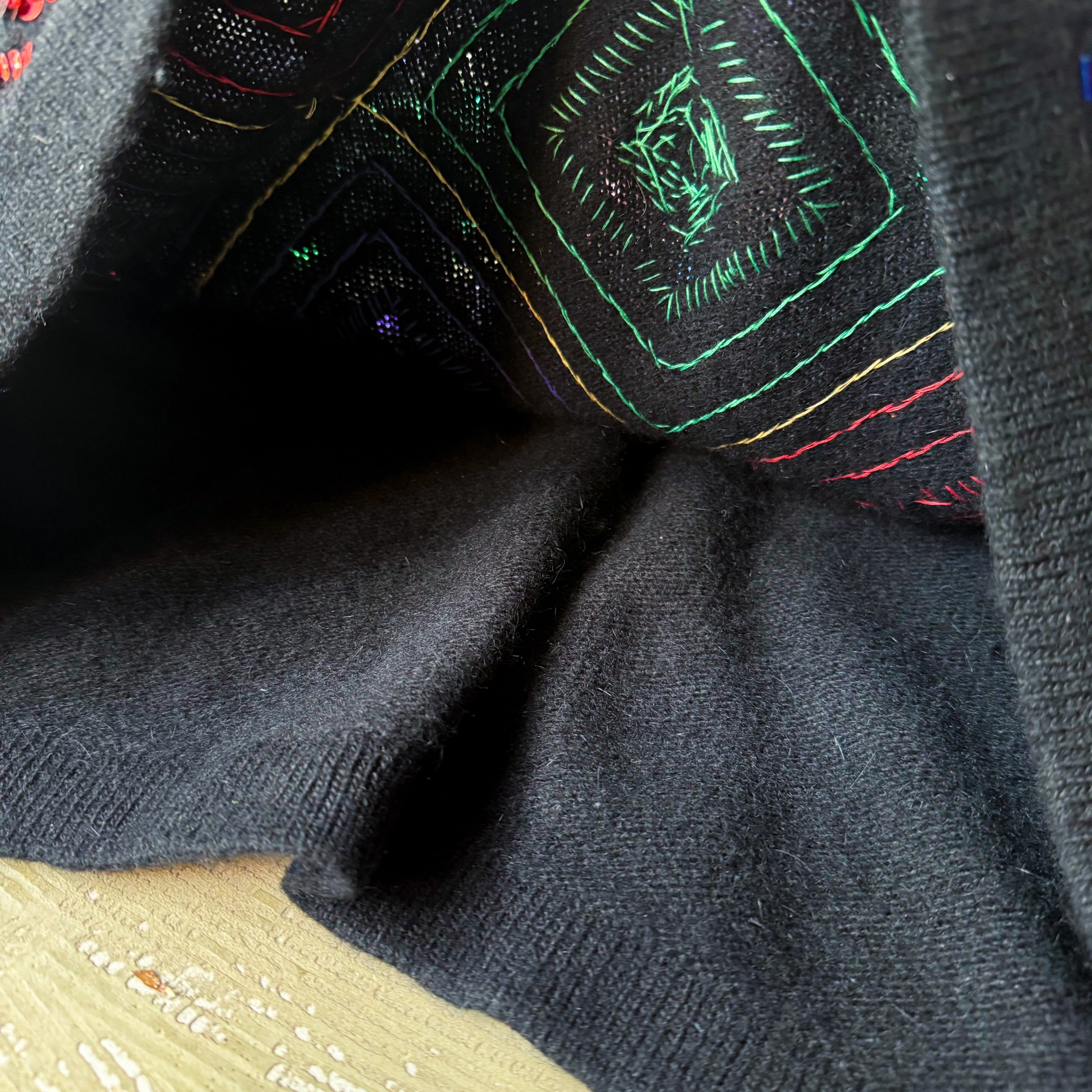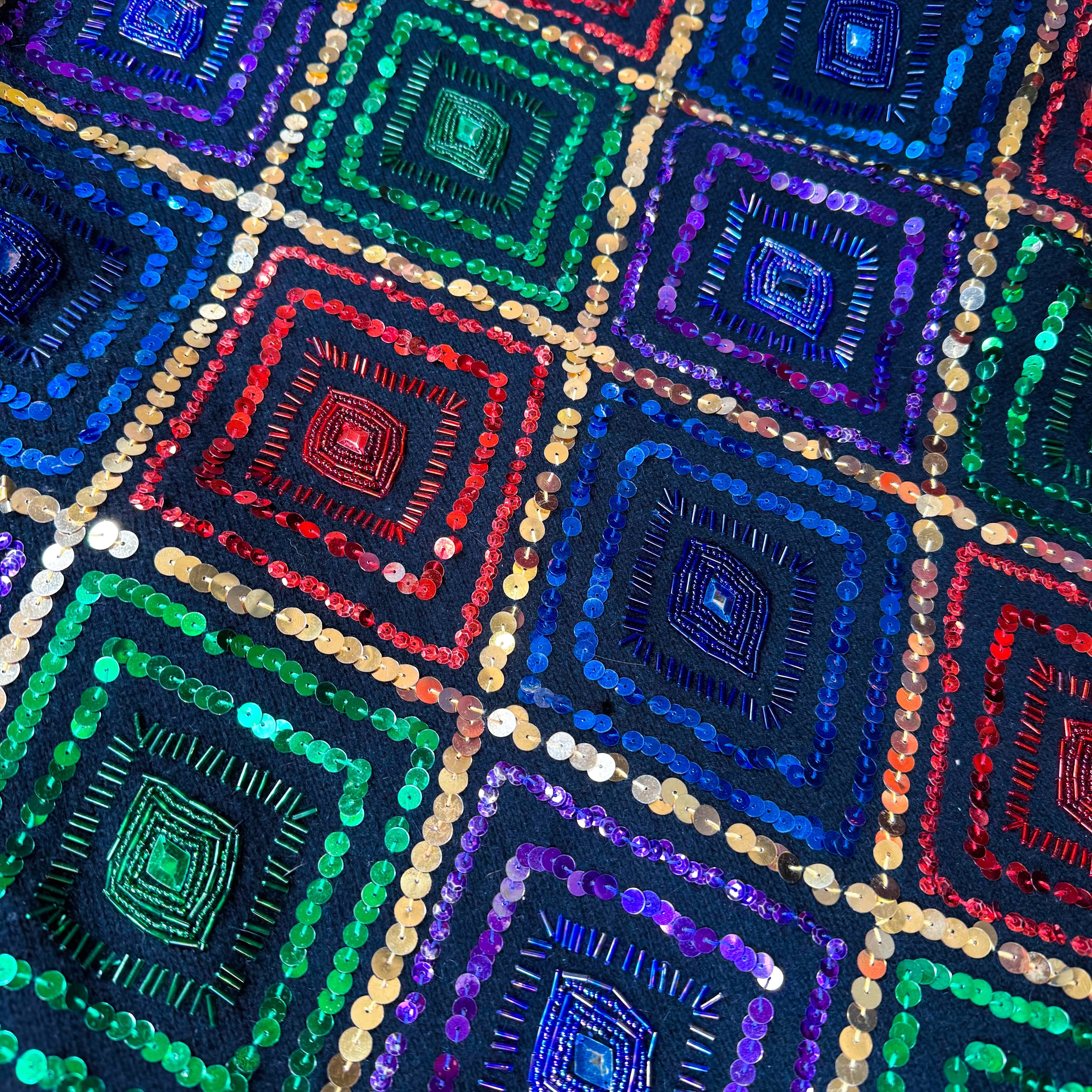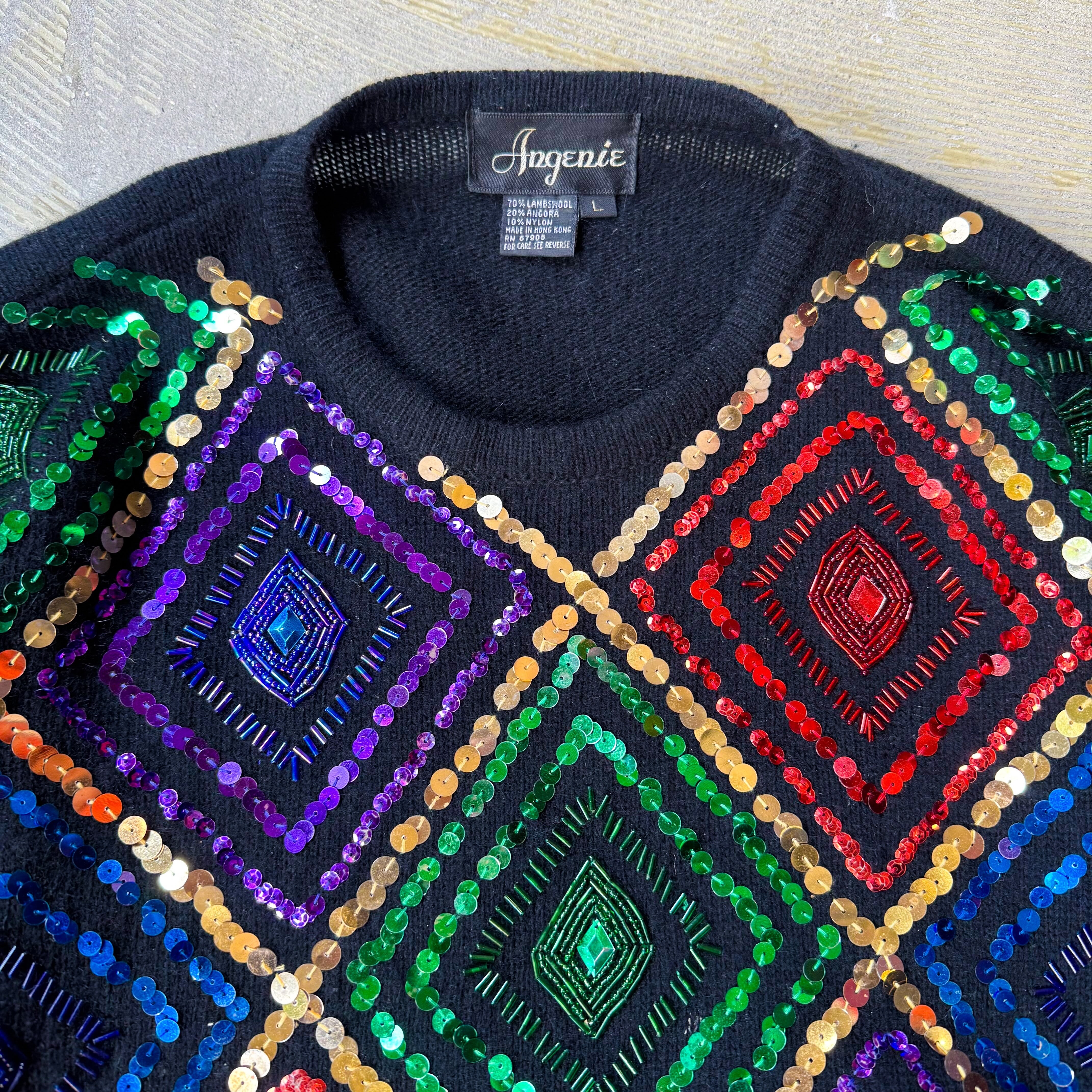 多色のスパンコールとビーズで幾何学模様を描いた80’sニット。