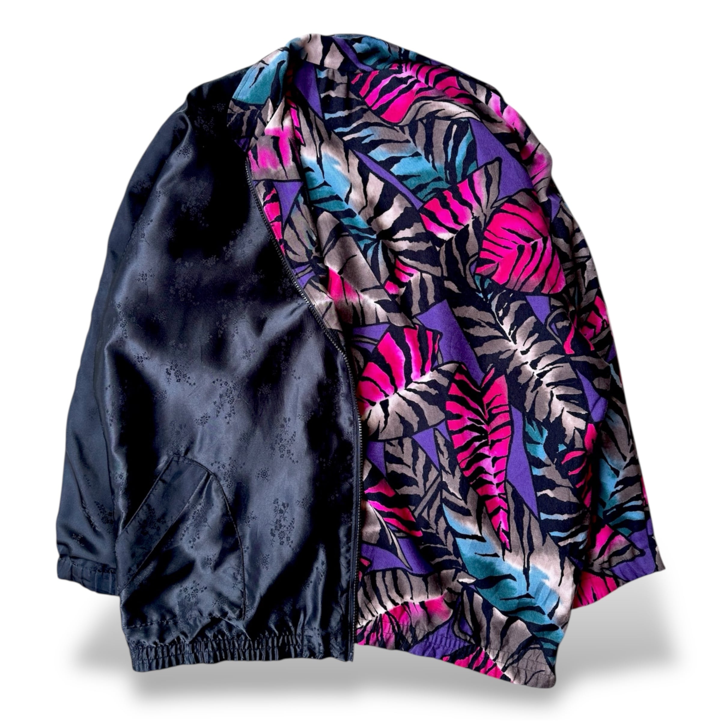 1980's VINTAGE BOTANICAL PATTERN REVERSIBLE ZIP UP JACKET / 80年代 ヴィンテージ ボタニカル 柄 リバーシブル ジップ アップ ジャケット
