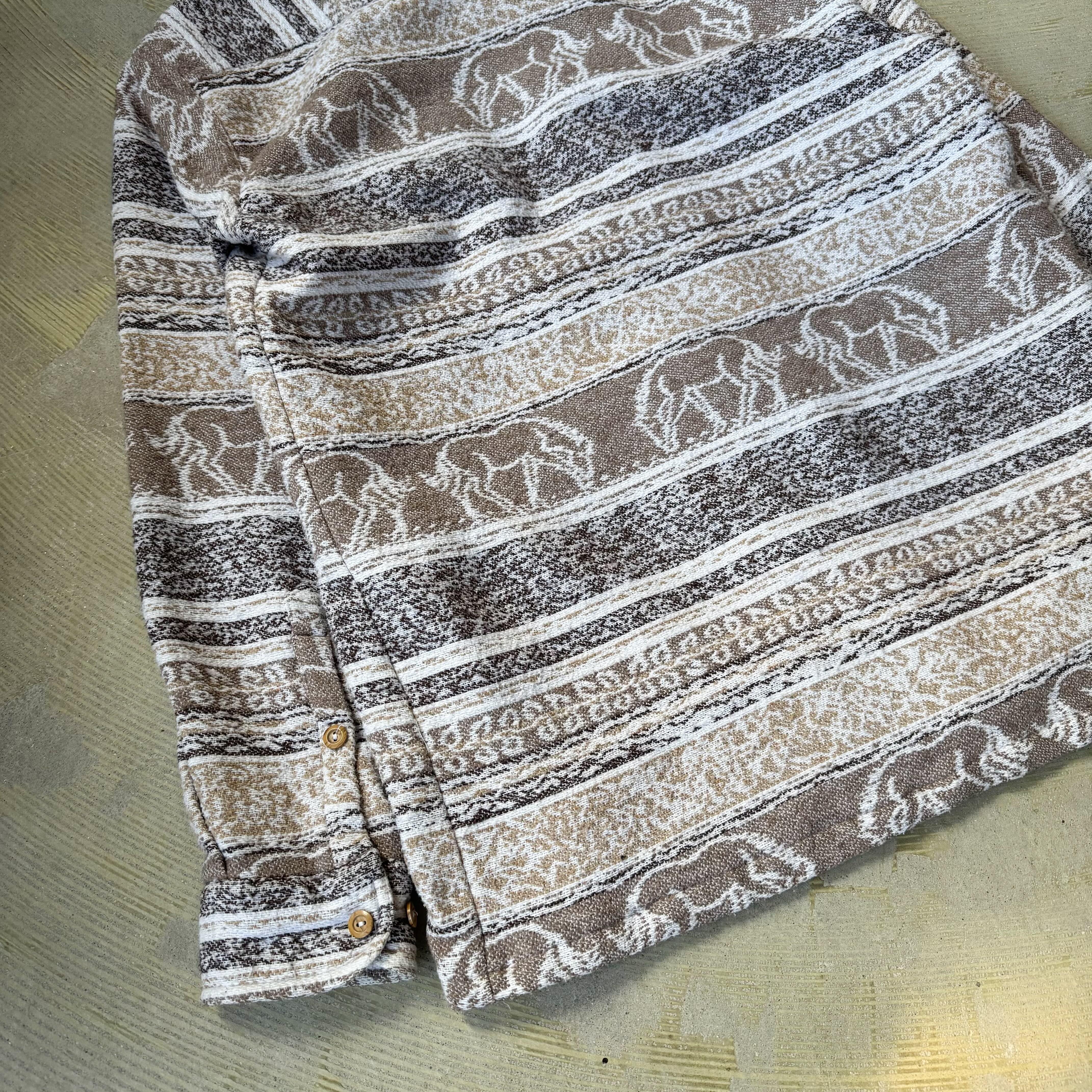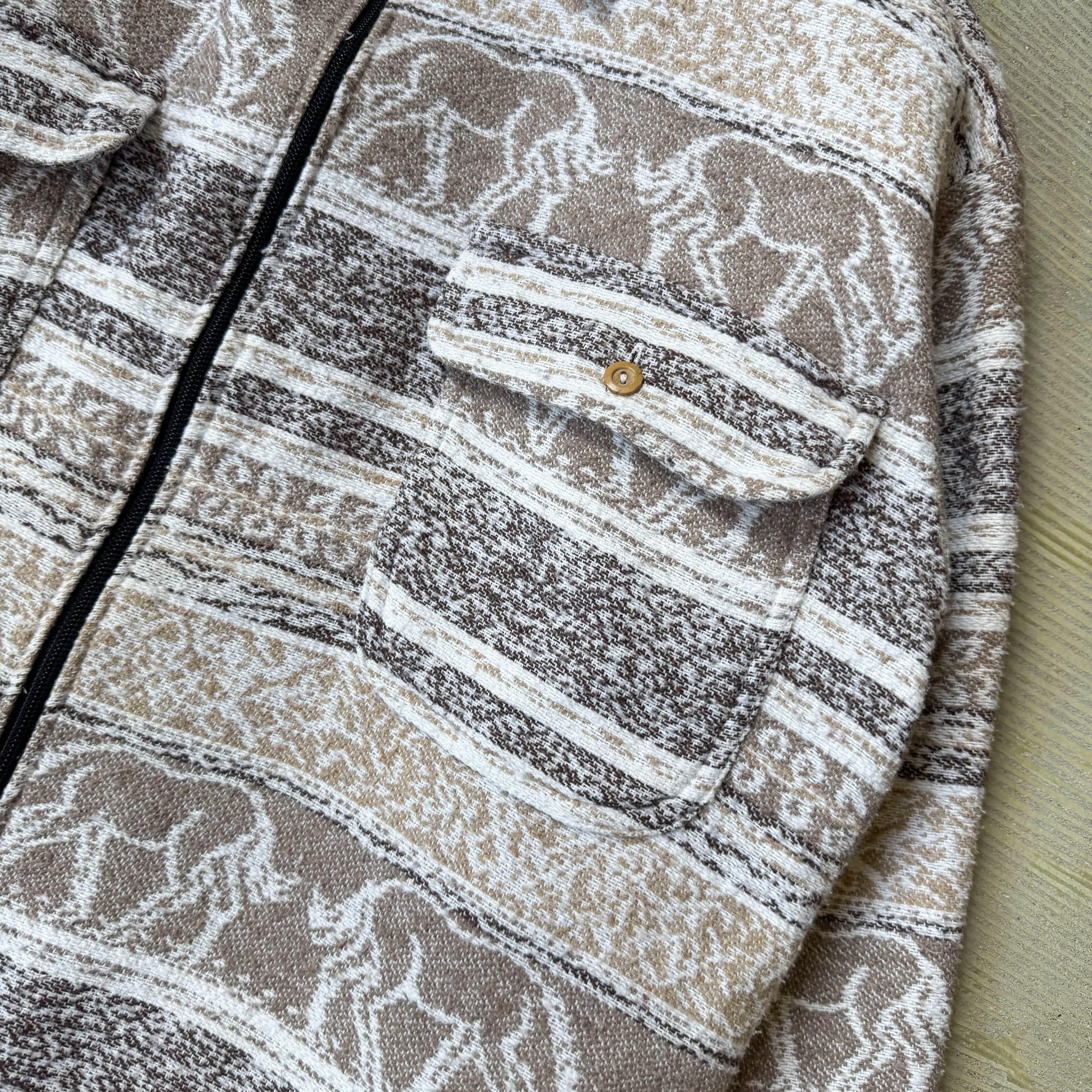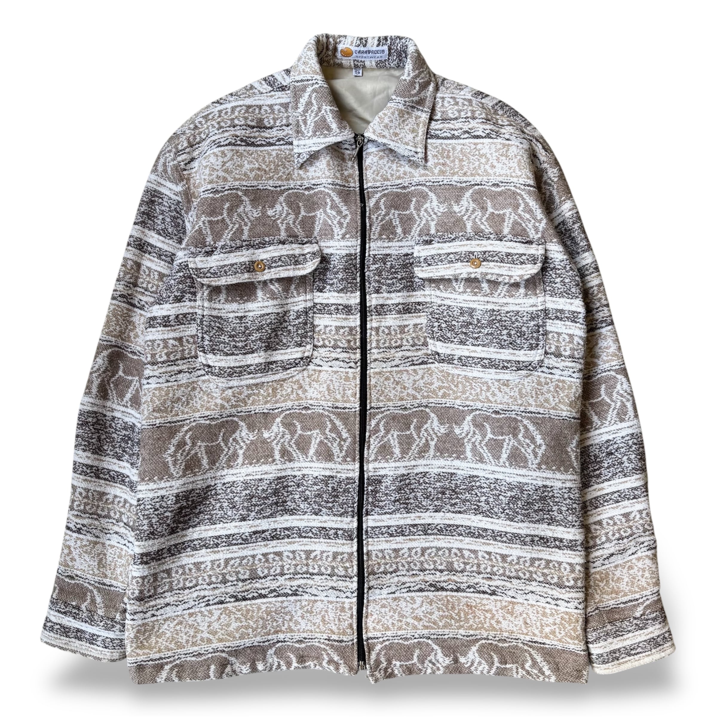 ANIMAL BORDER PATTERN ZIP UP SHIRT JACKET / アニマル ボーダー 柄 ジップ アップ シャツ ジャケット