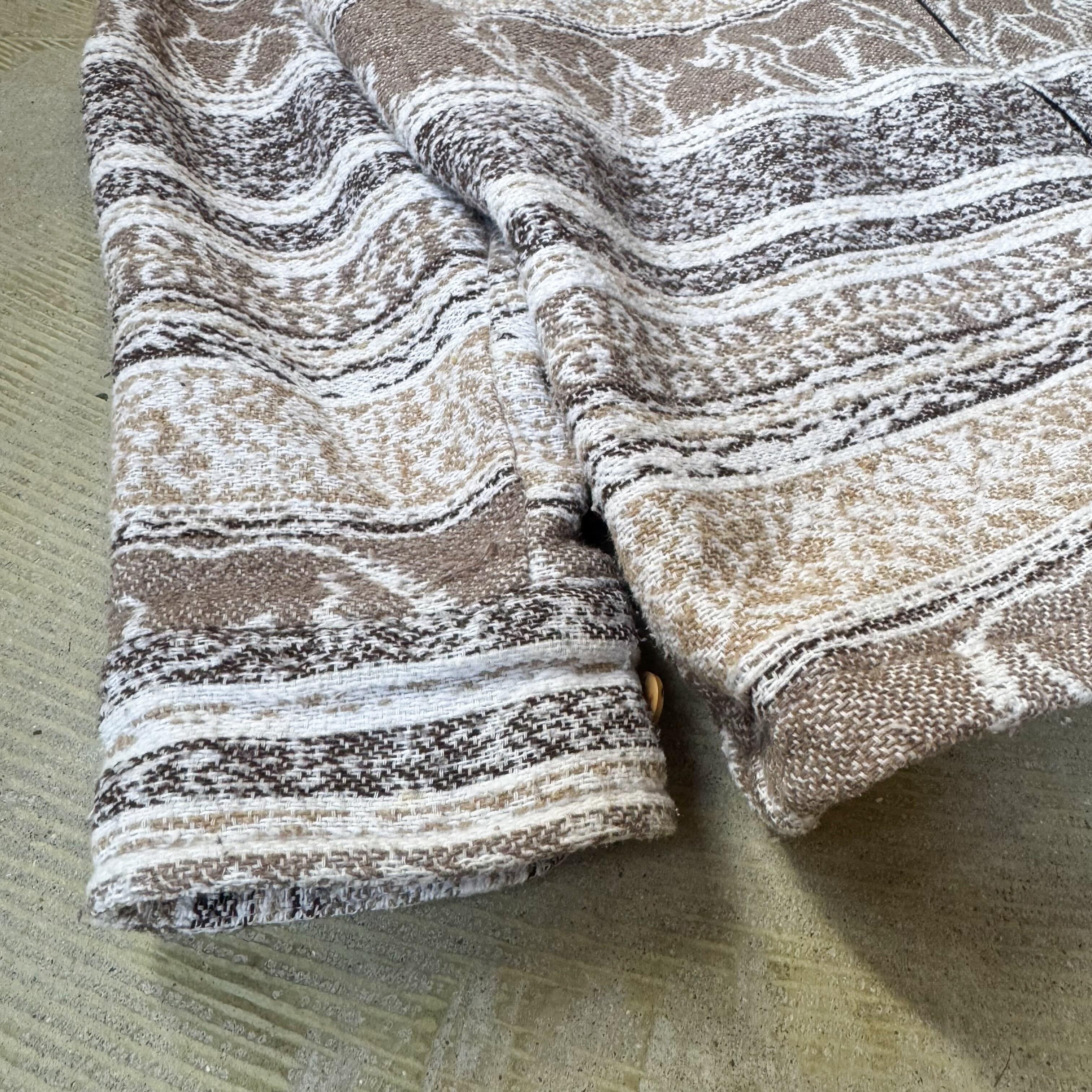 連続する動物モチーフをのせたテキスタイルジャケット。