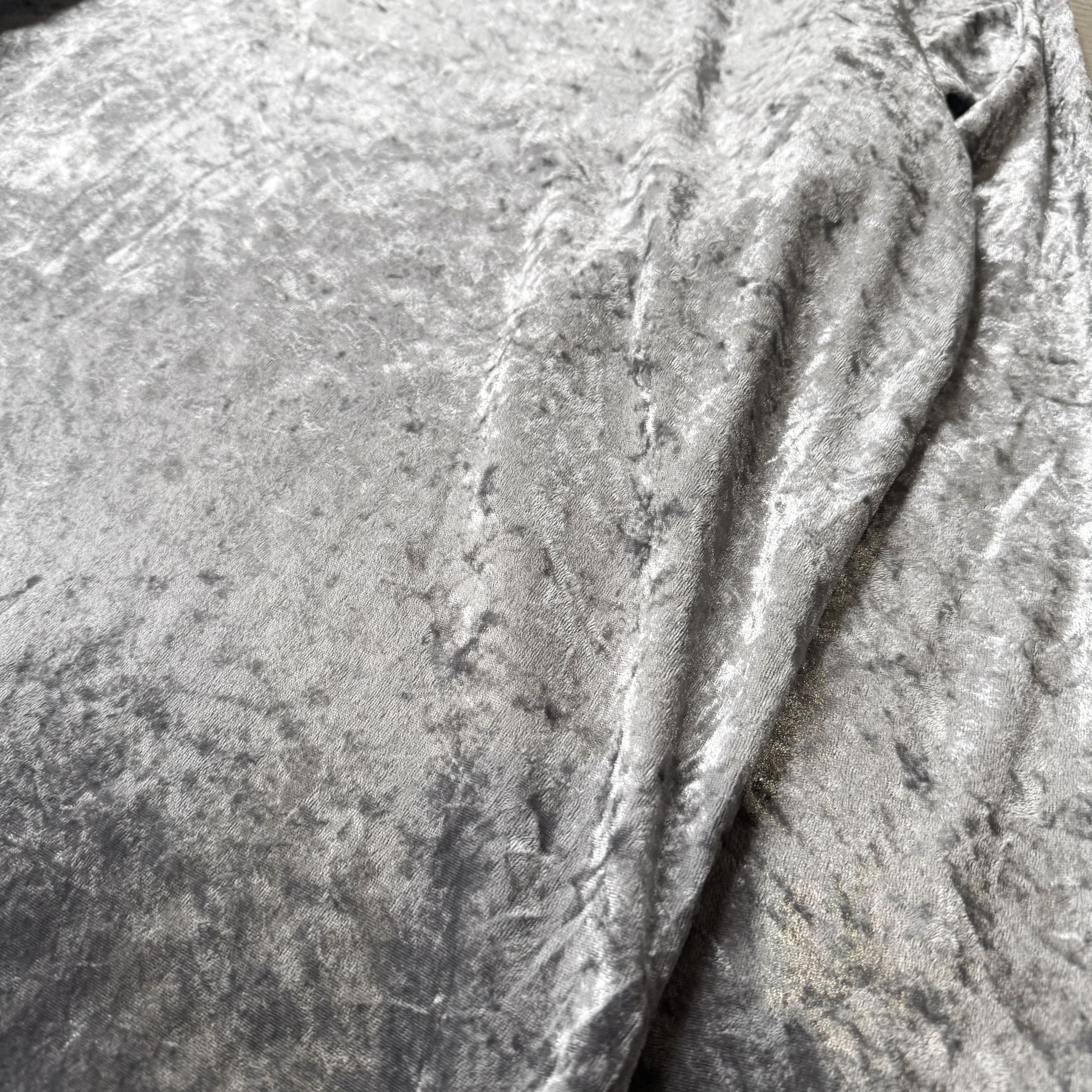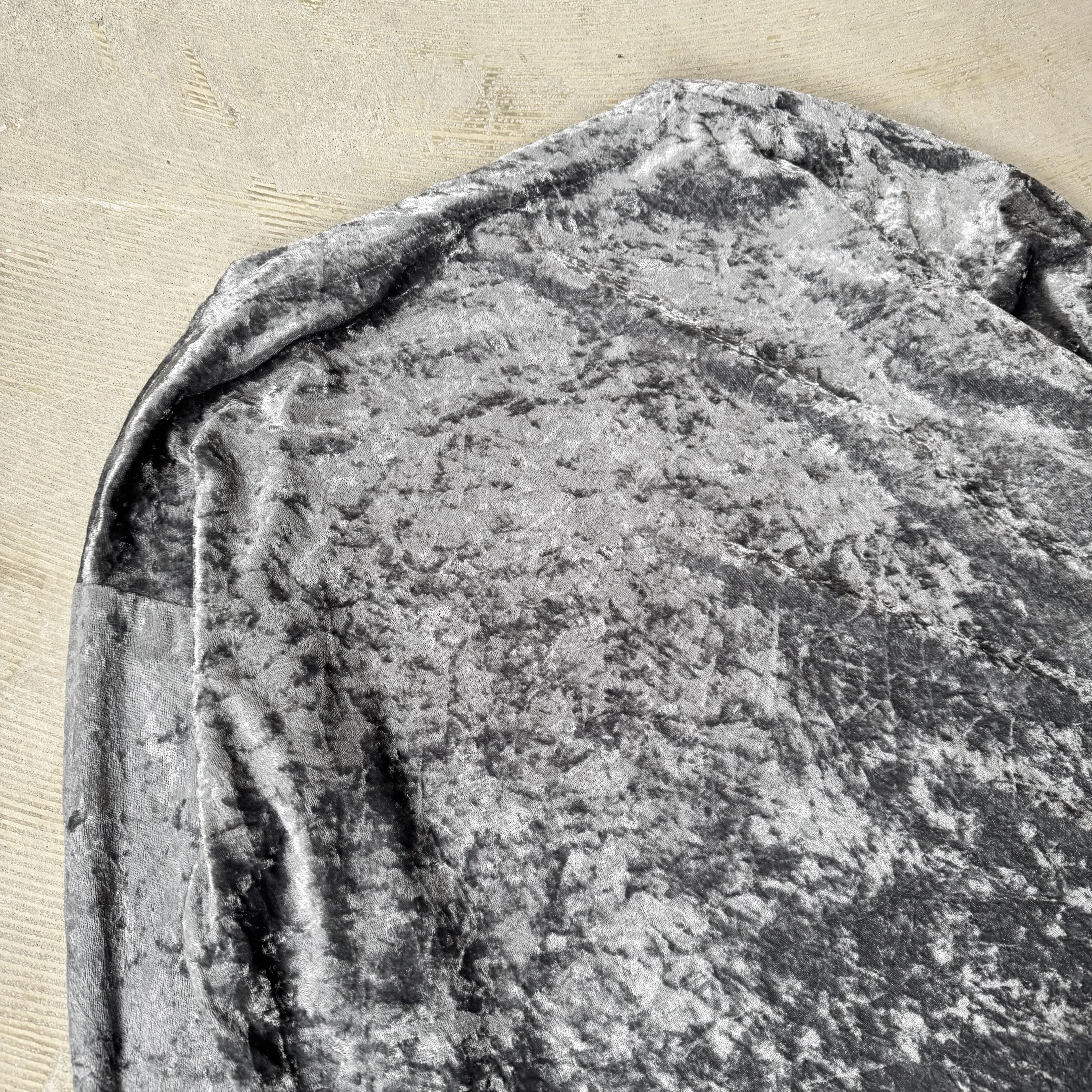 シルバーグレーの冷たさと、ベルベット特有の湿度が同居し
