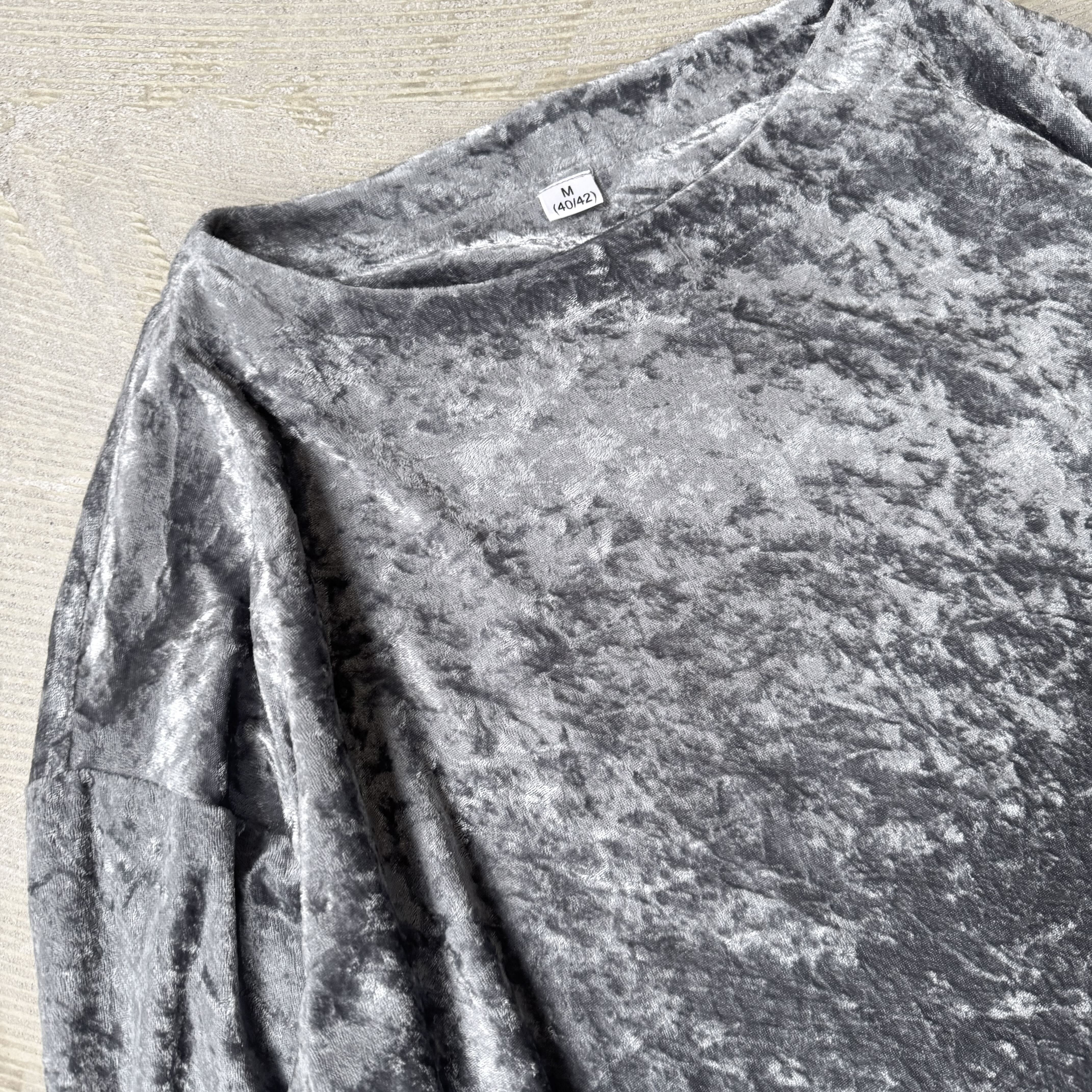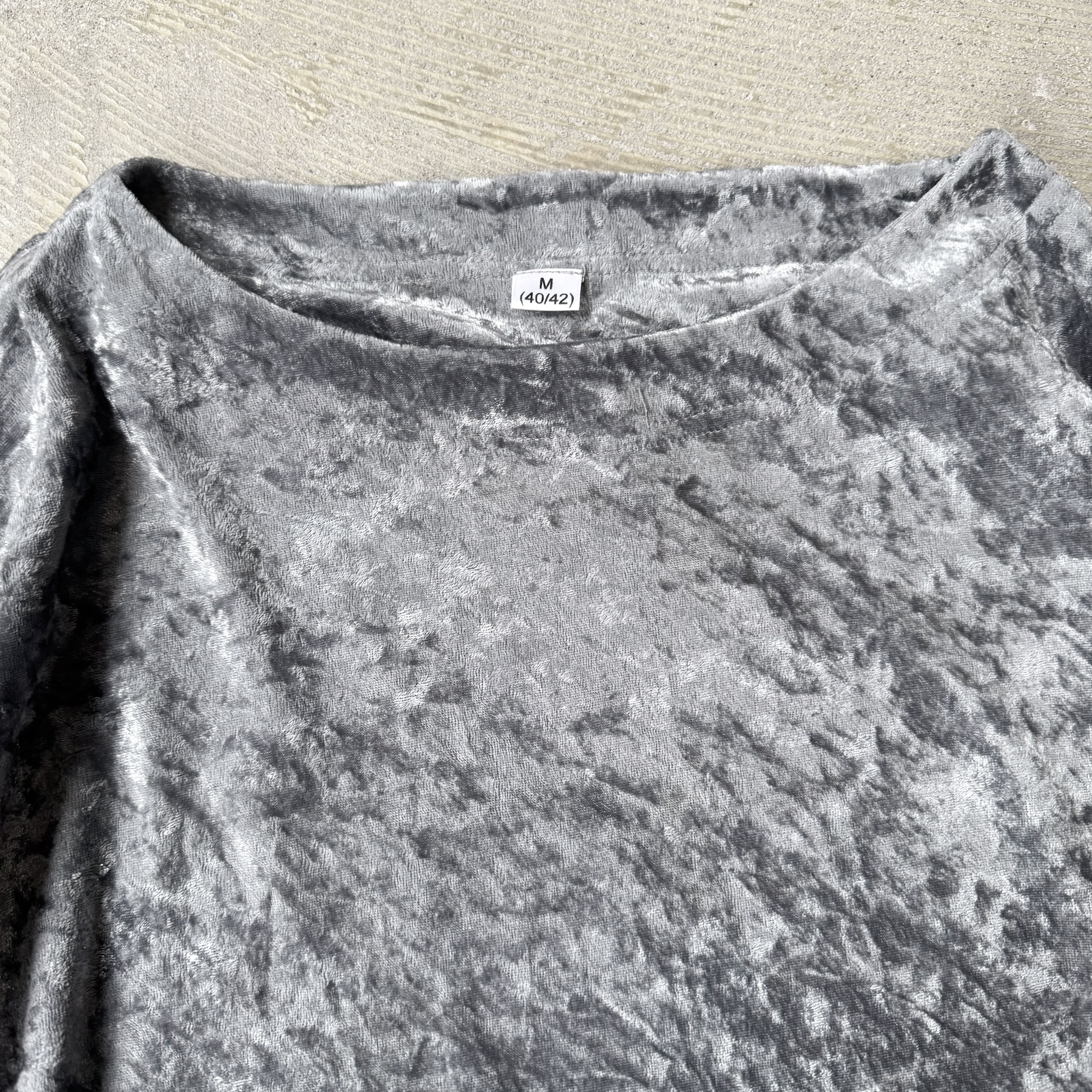 SILVER COLOR CRUSHED VELVET DESIGN L/S TOPS / シルバー クラッシュ ベルベット ベロア 長袖 トップス