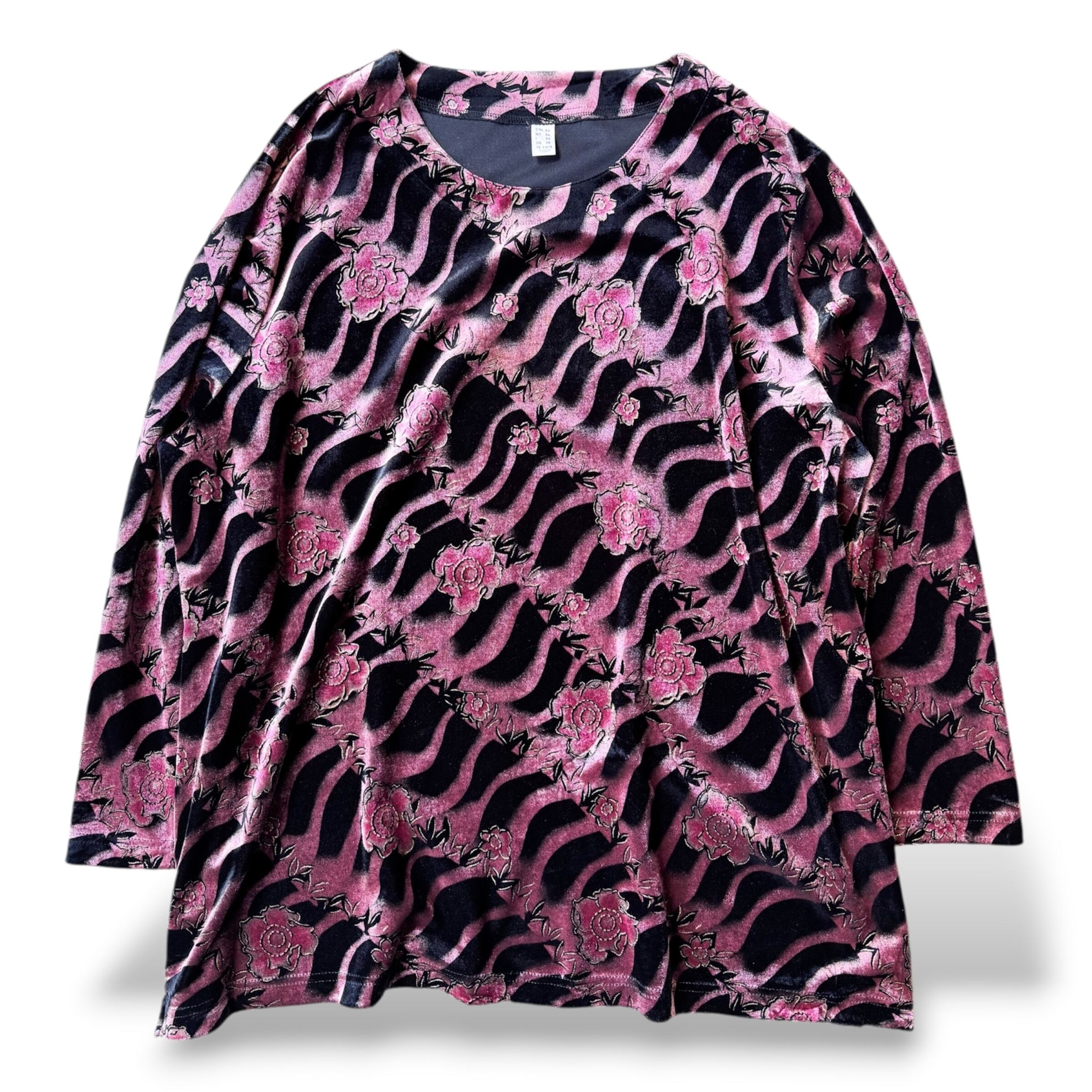 FLORAL PATTERN COLOR VELVET DESING L/S TOPS / 花柄 カラー ベルベット ベロア 長袖 トップス