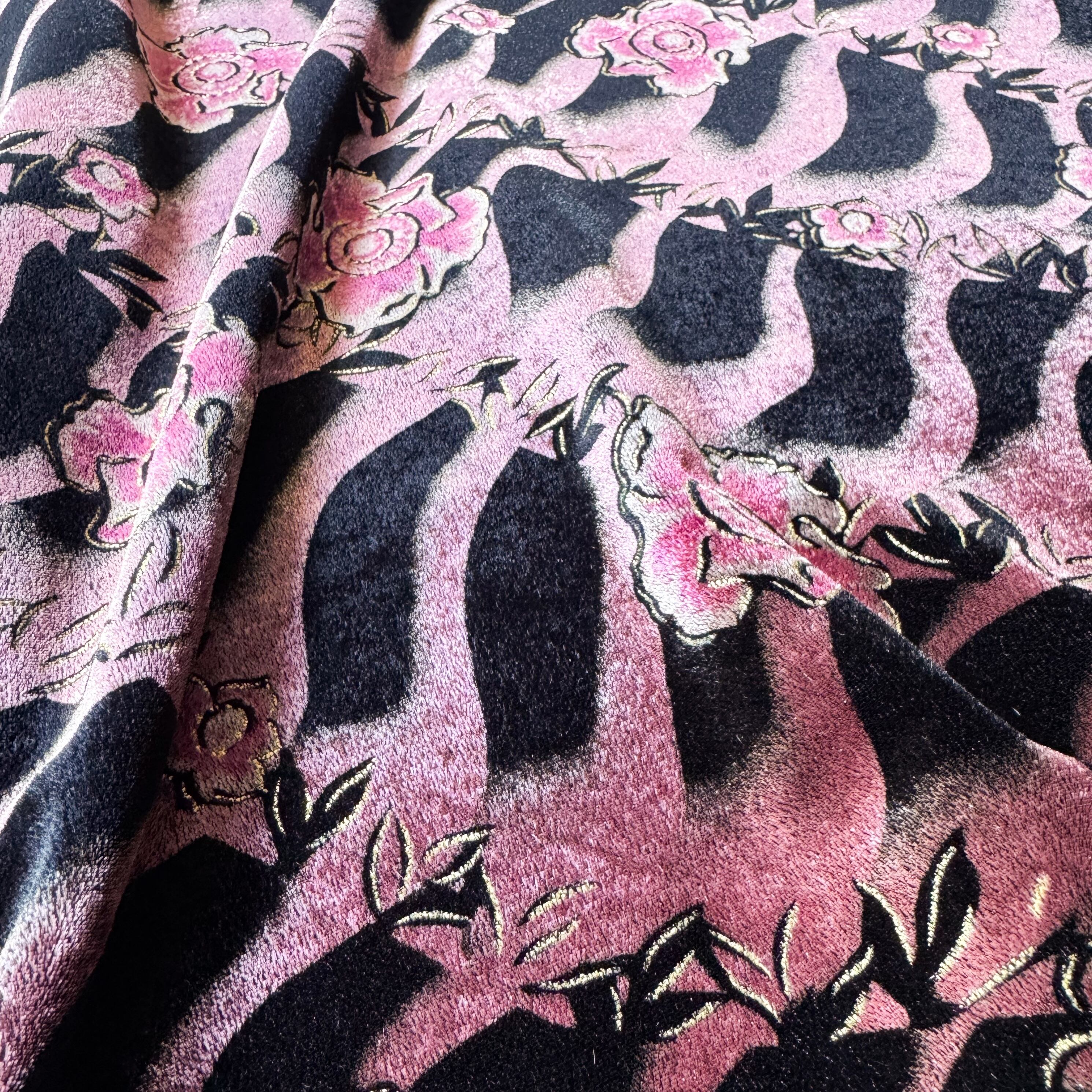 ・ブラックとピンクボディに花柄をのせたベルベットが