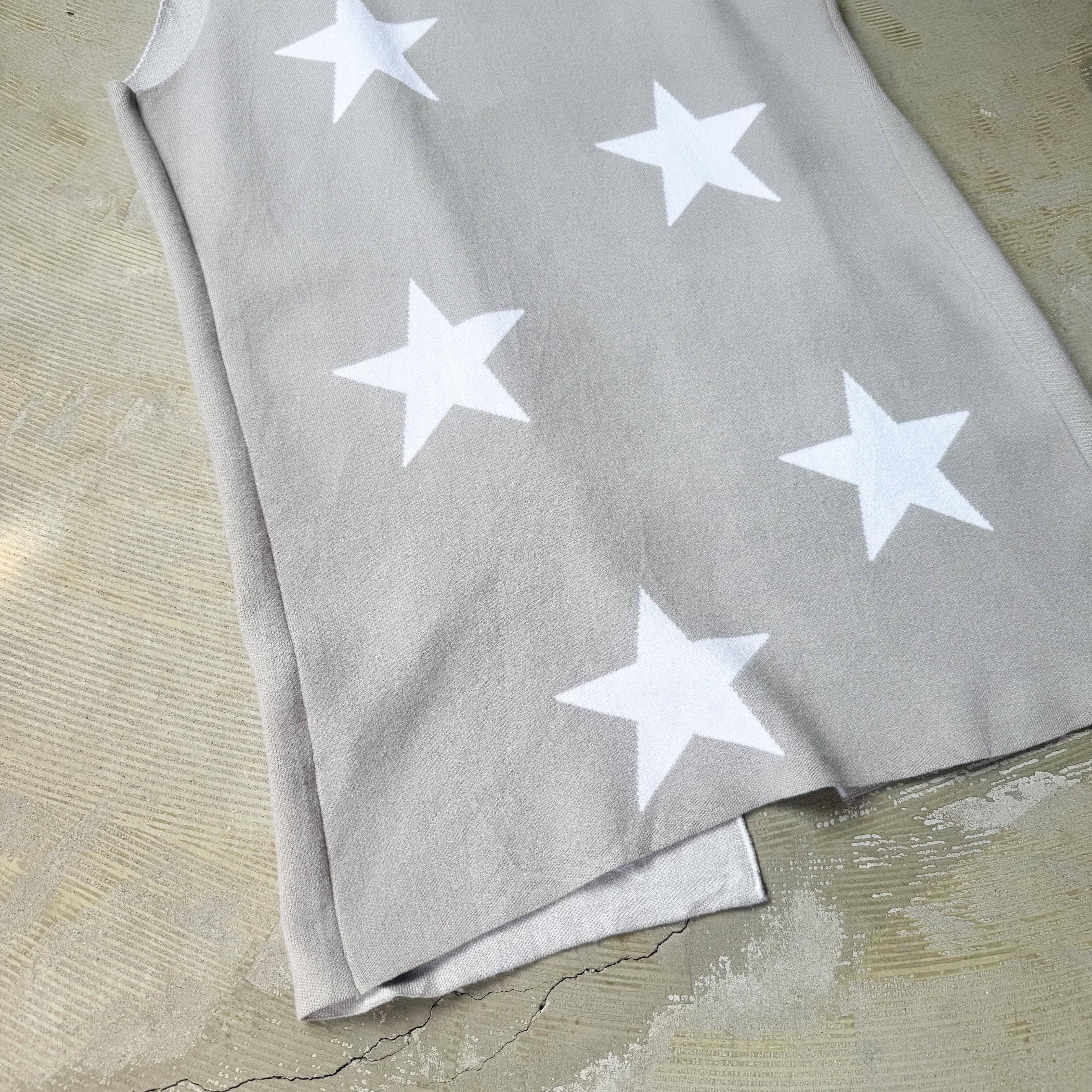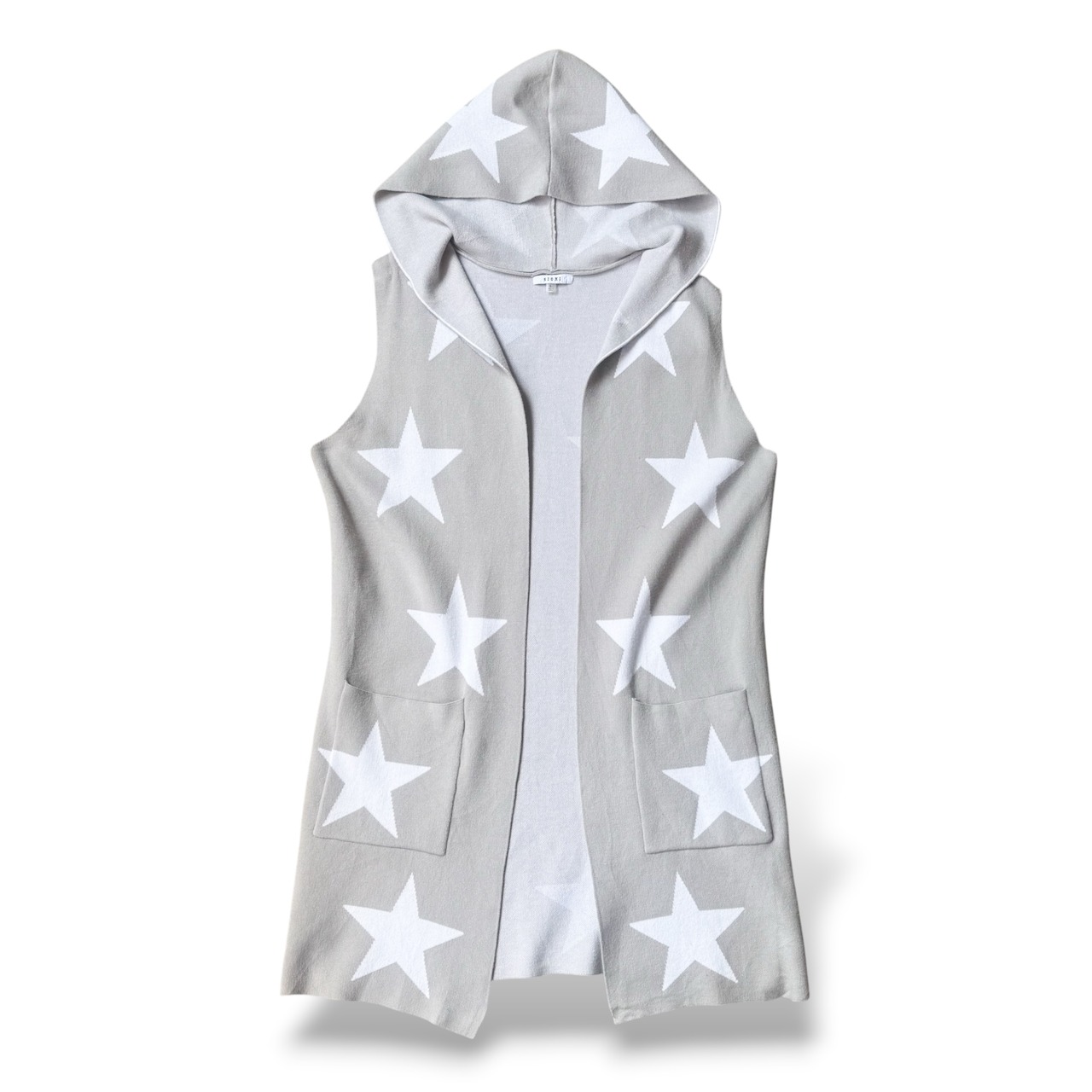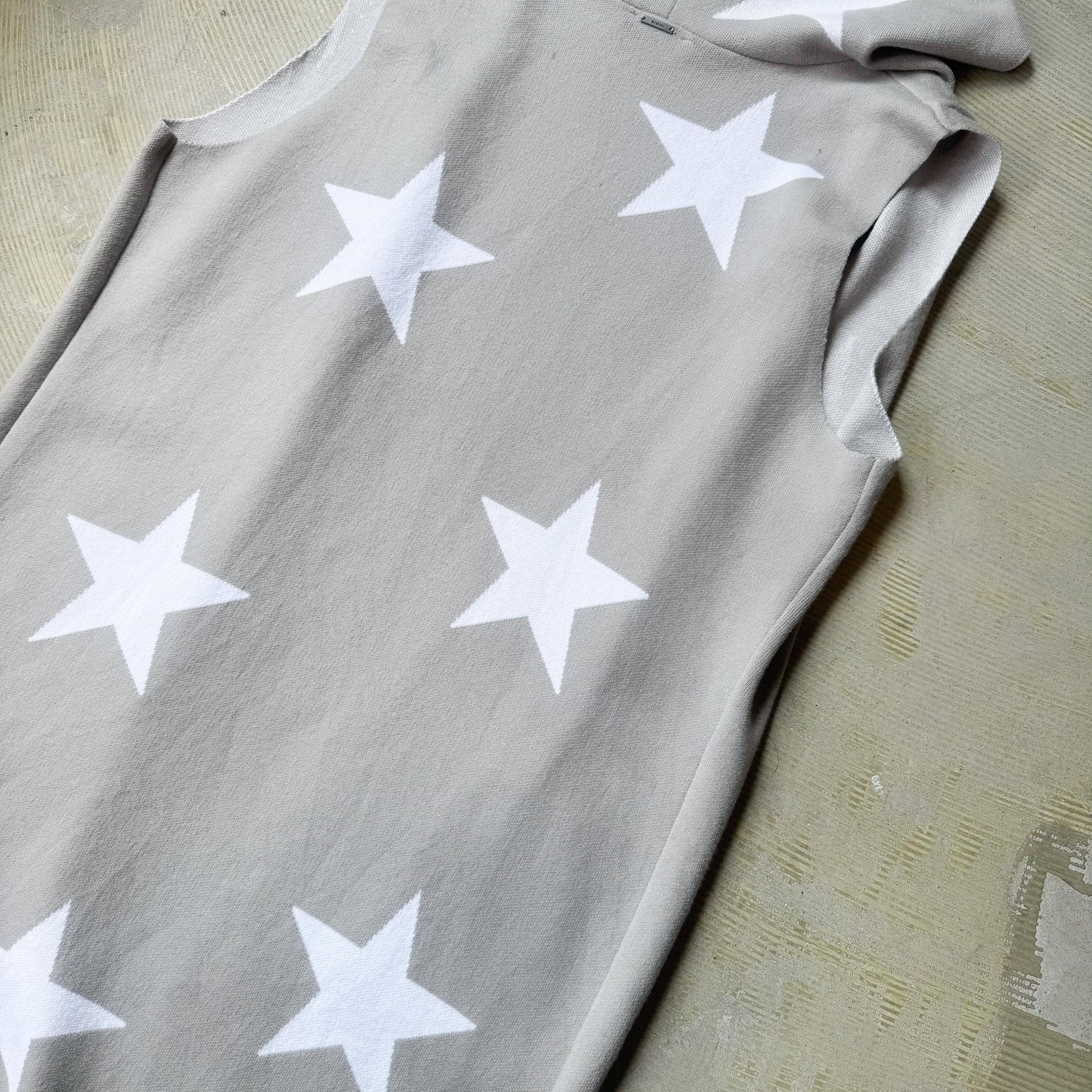 RAMDOM STARS PATTERN HOODIE VEST / 星柄 フーディ デザイン サマー ニット ロング ベスト