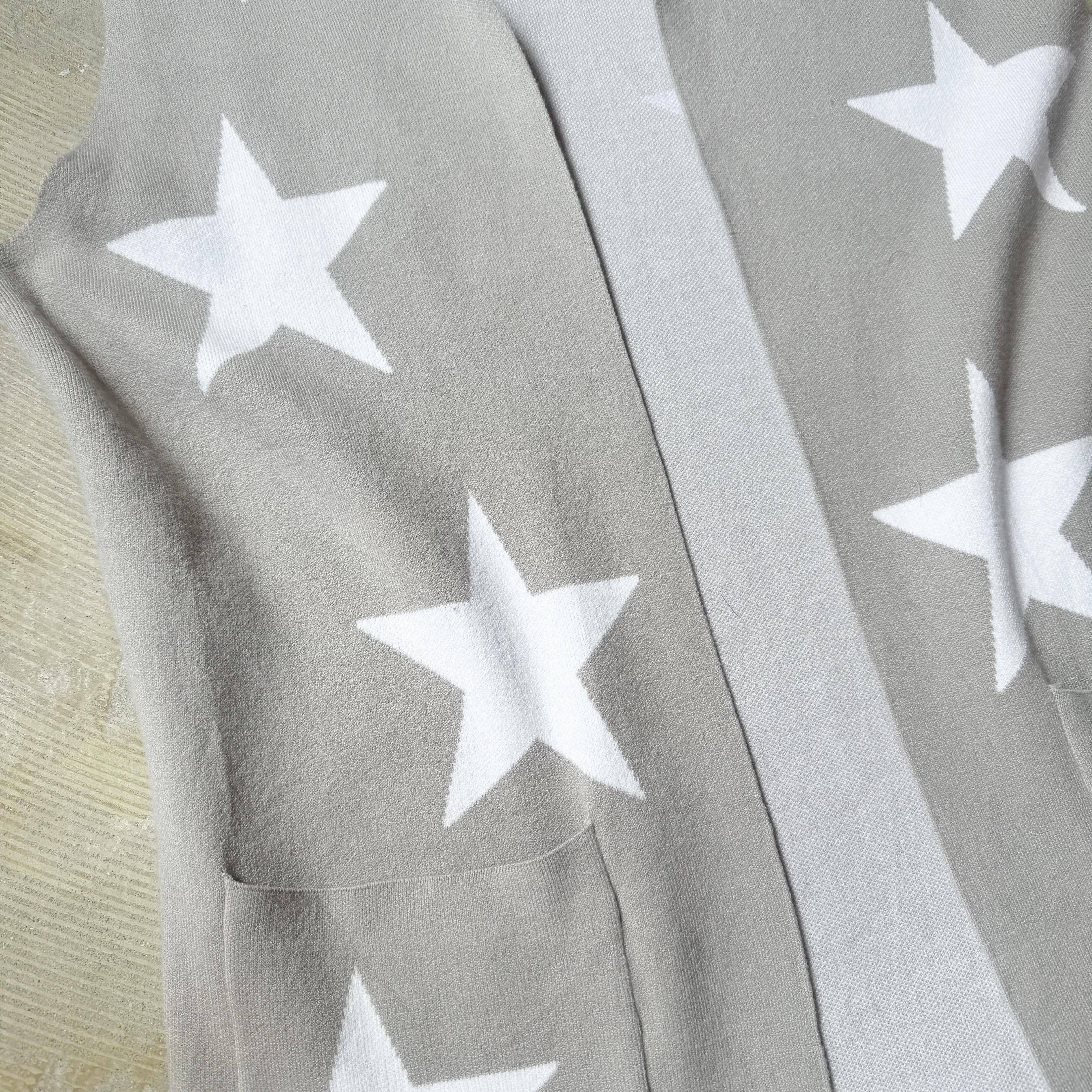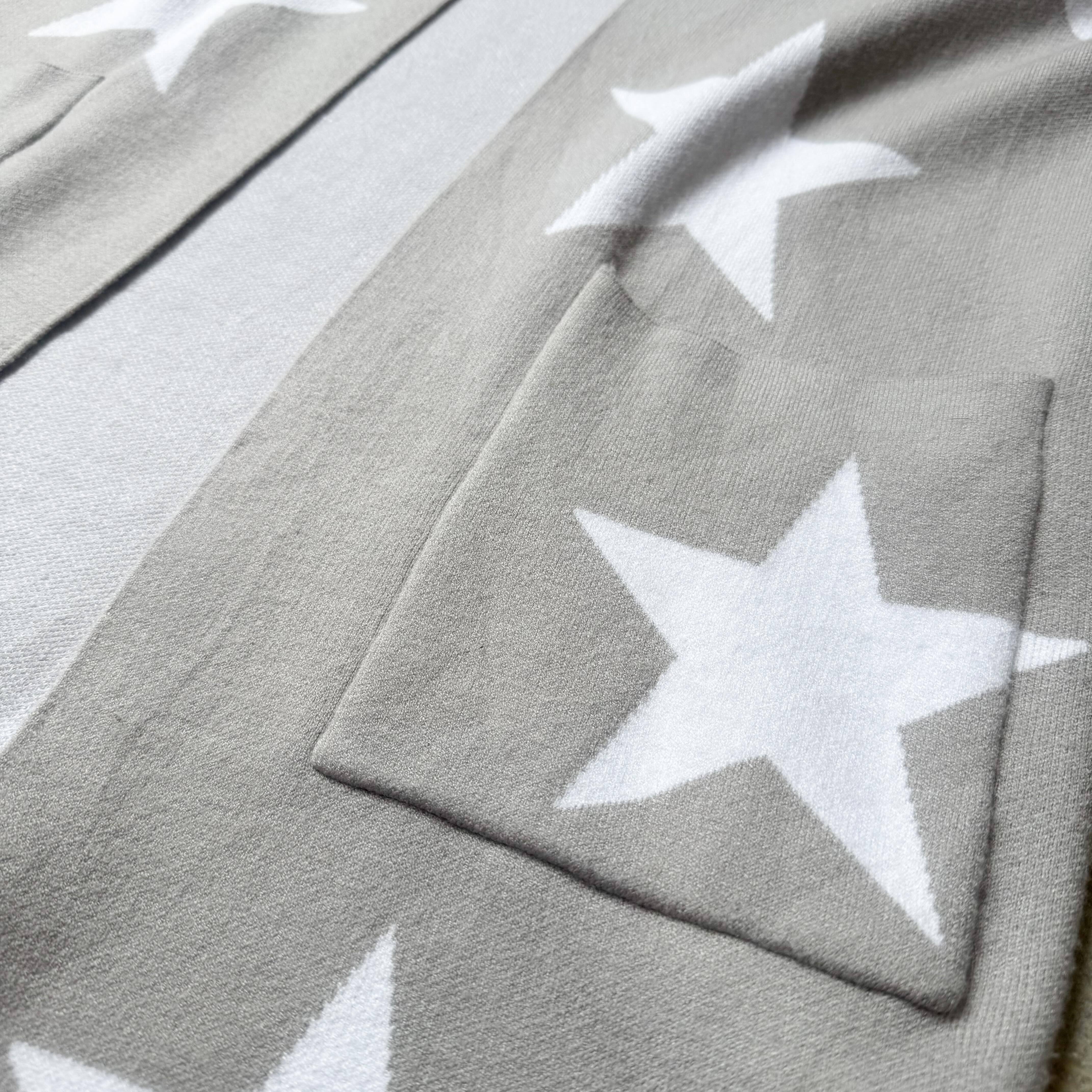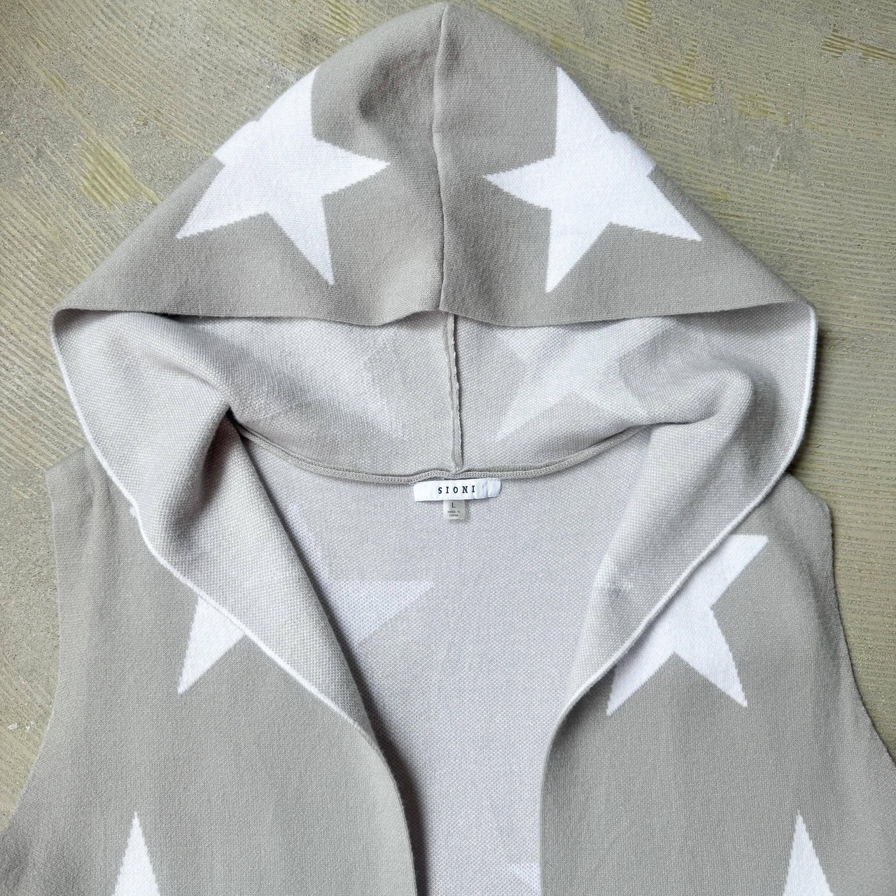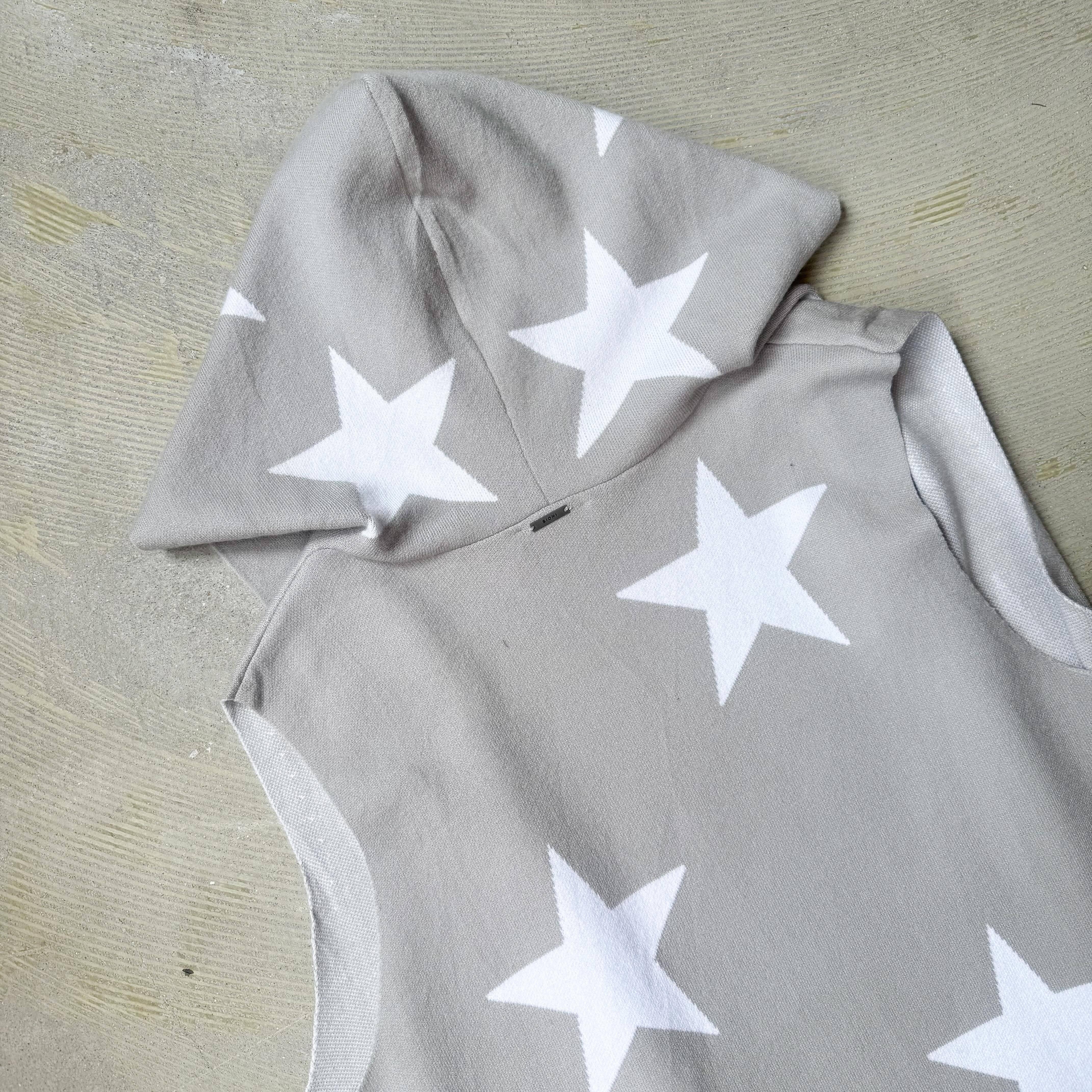 RAMDOM STARS PATTERN HOODIE VEST / 星柄 フーディ デザイン サマー ニット ロング ベスト