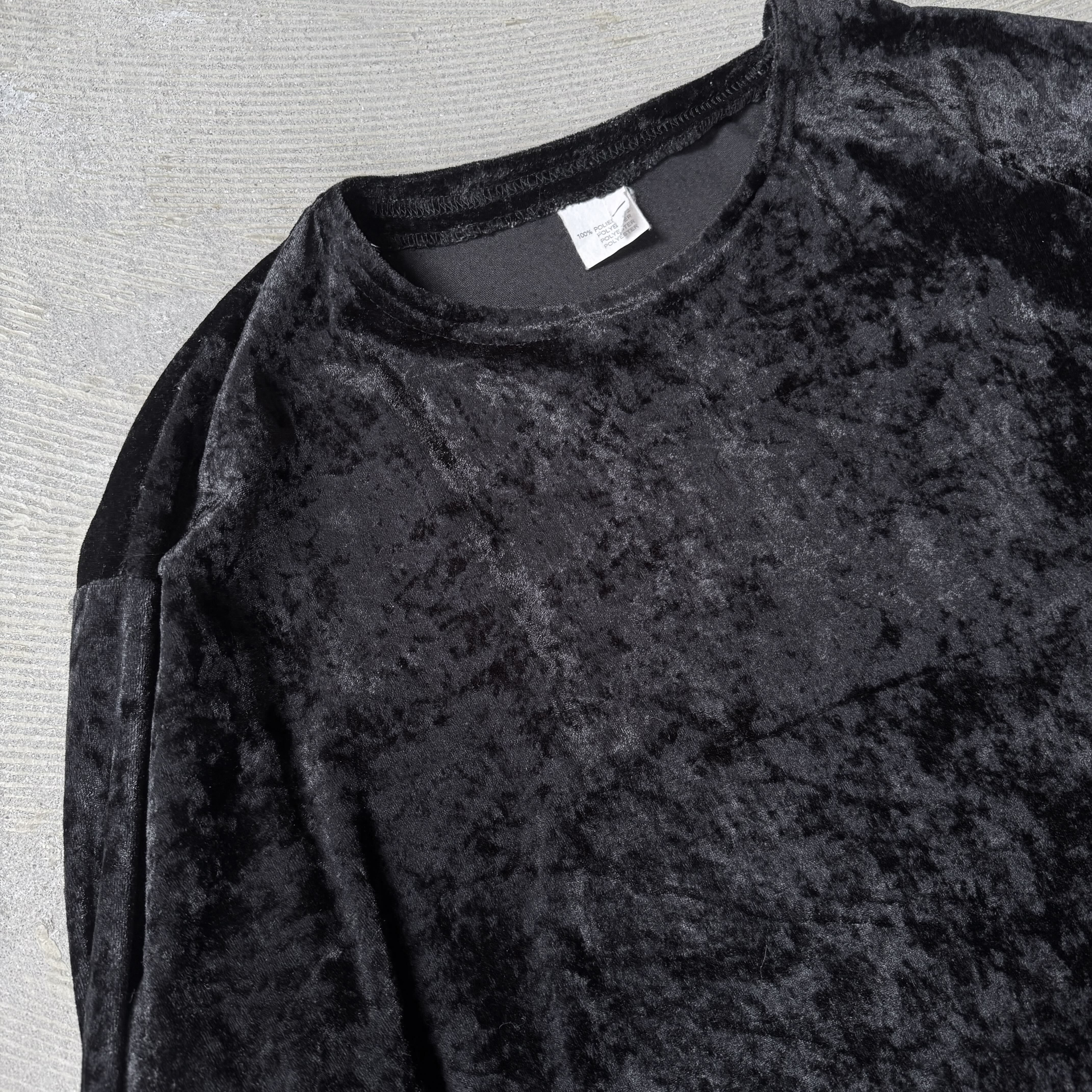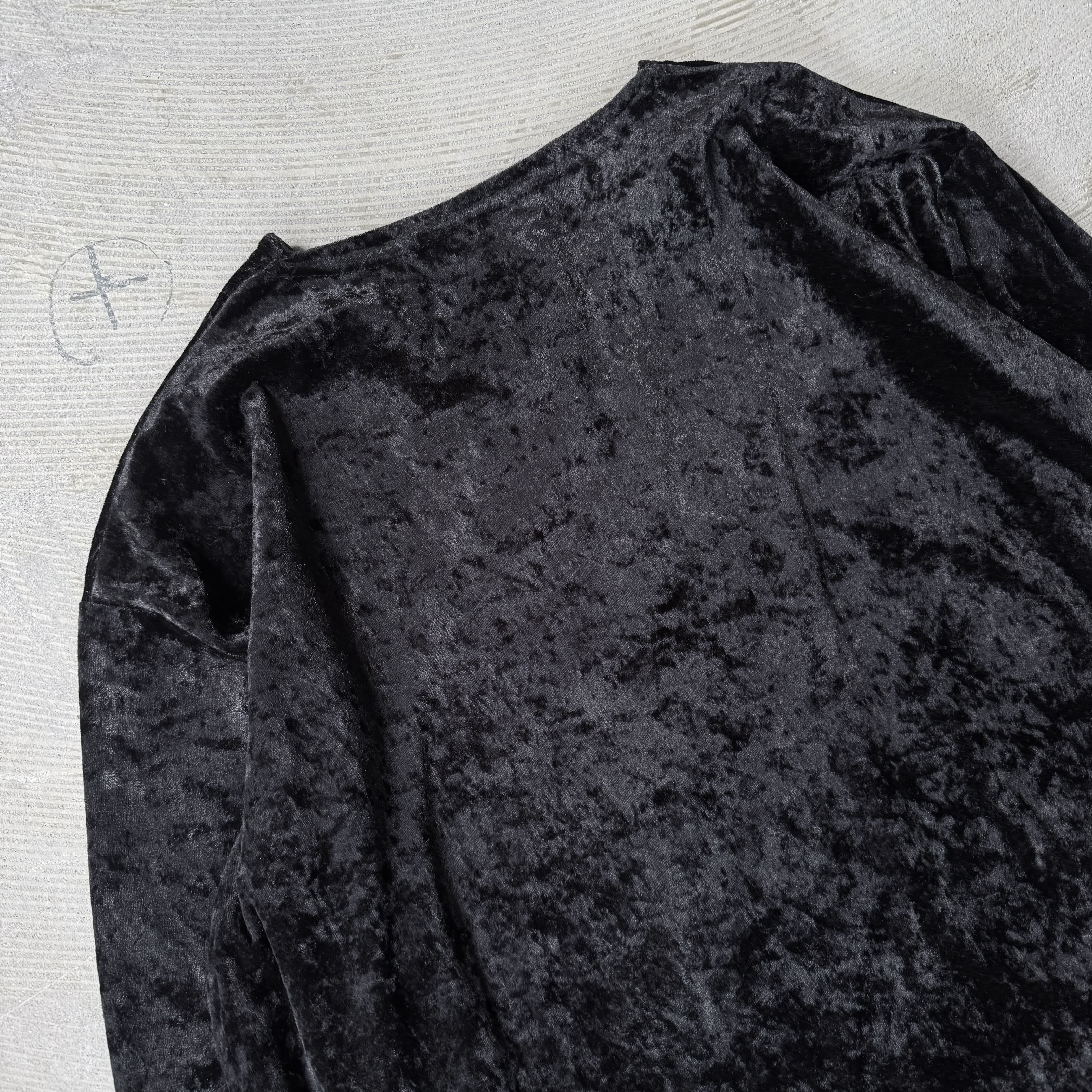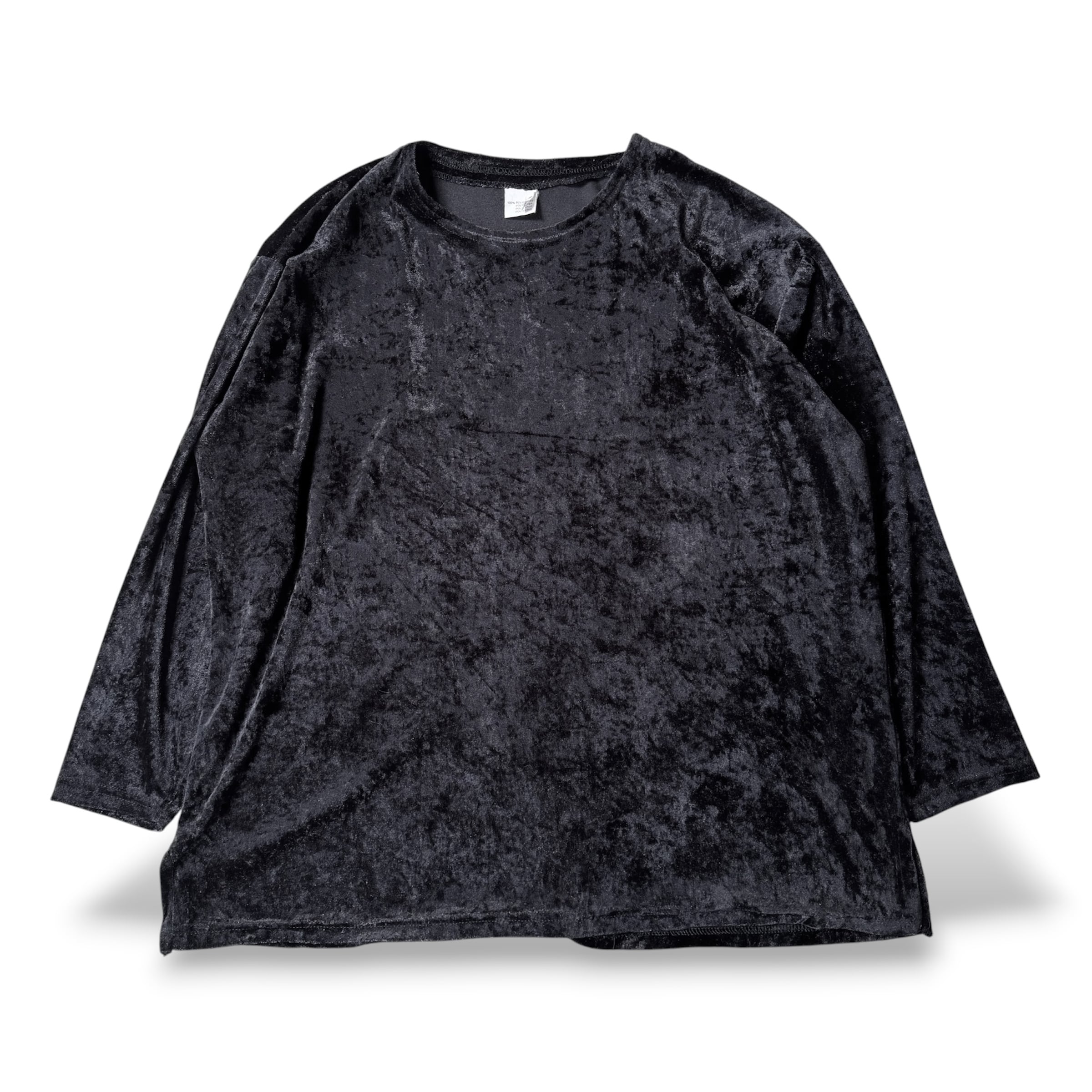 BLACK COLOR VELVET DESIGN L/S TOPS / ブラック ベルベット ベロア 長袖 トップス