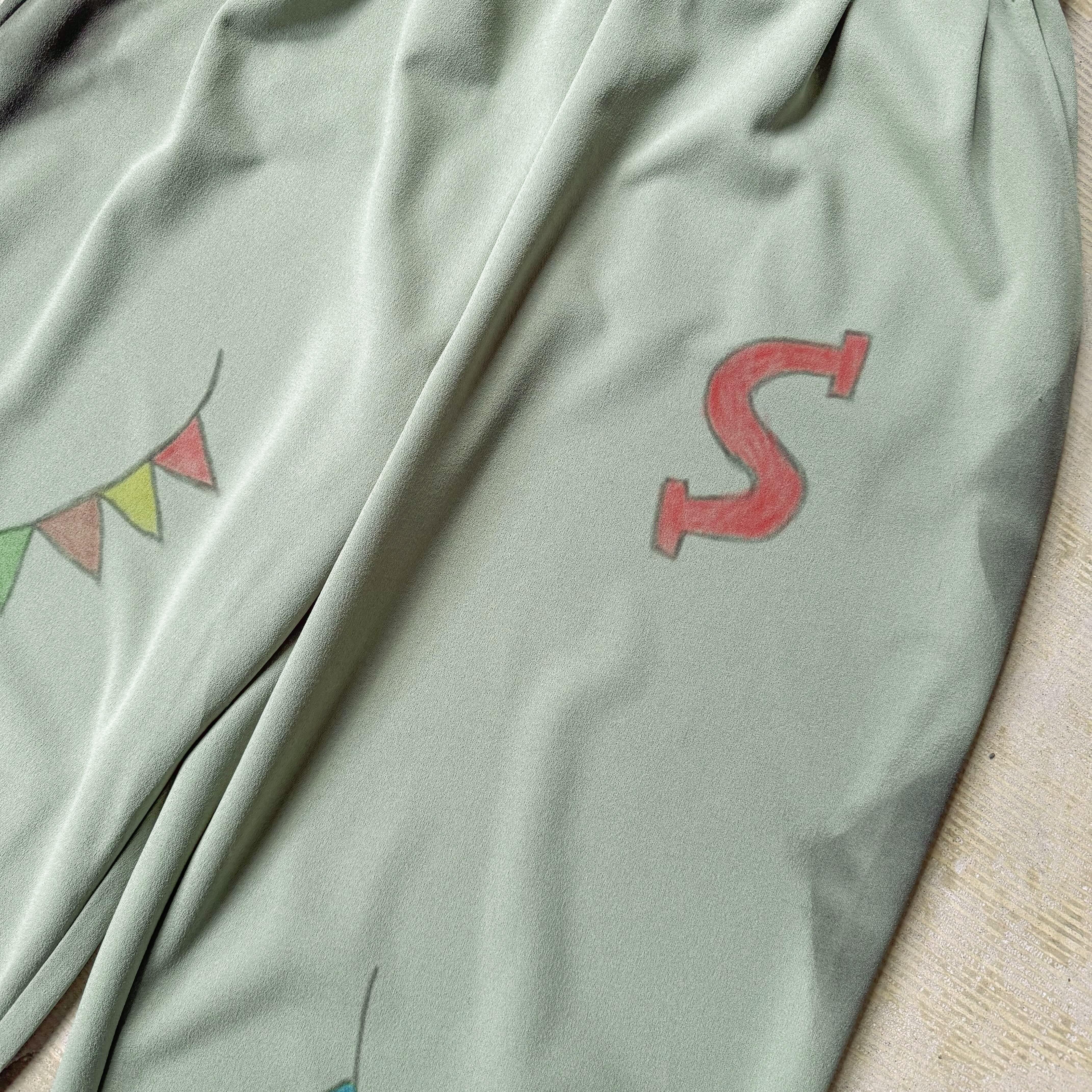 HAND PAINTED STENCIL ART WIDE COLOR PANTS / ハンド ペイント ステンシル アート ワイド カラー パンツ
