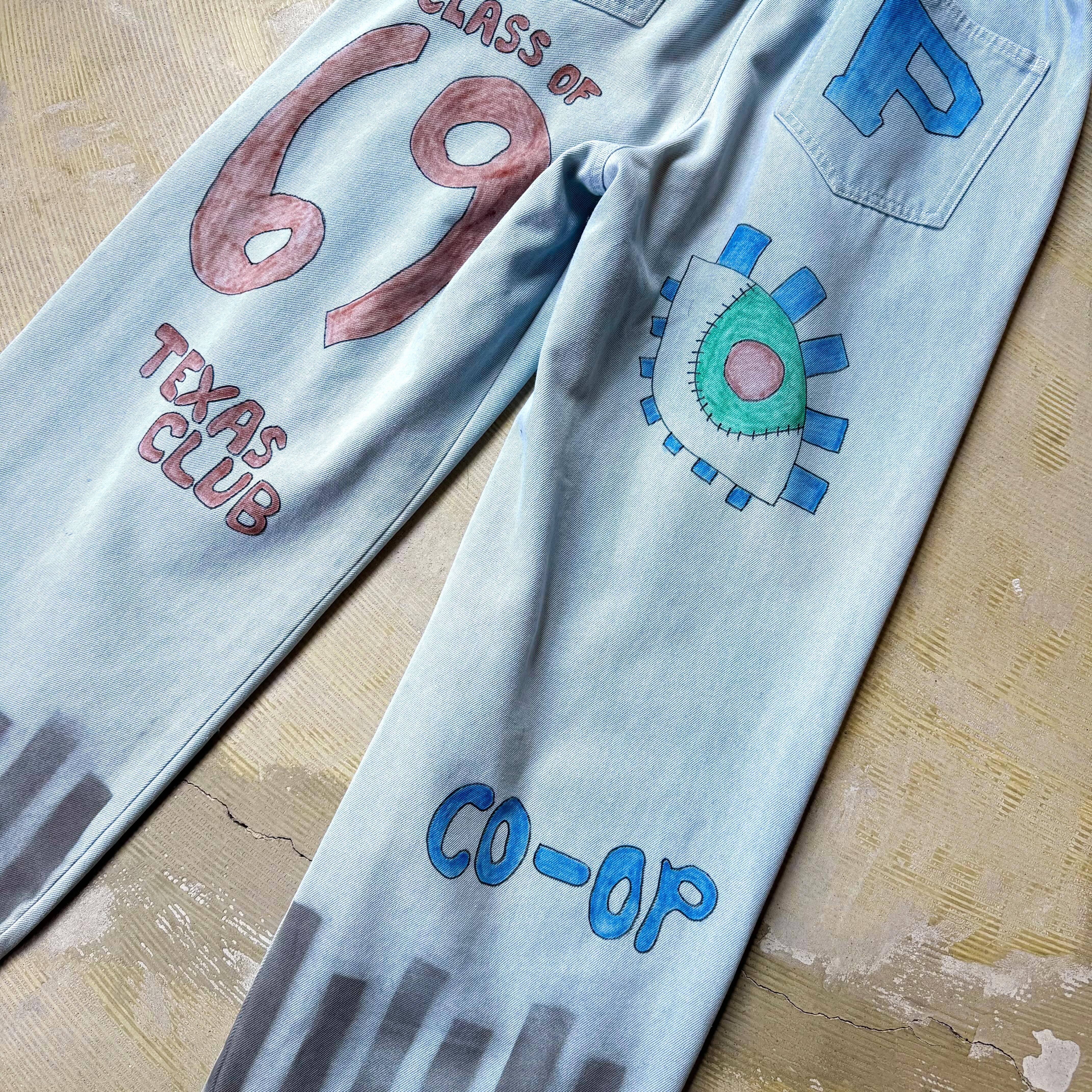 HAND PAINTED STENCIL ART WIDE DENIM PANTS / ハンド ペイント ステンシル アート ワイド デニム パンツ
