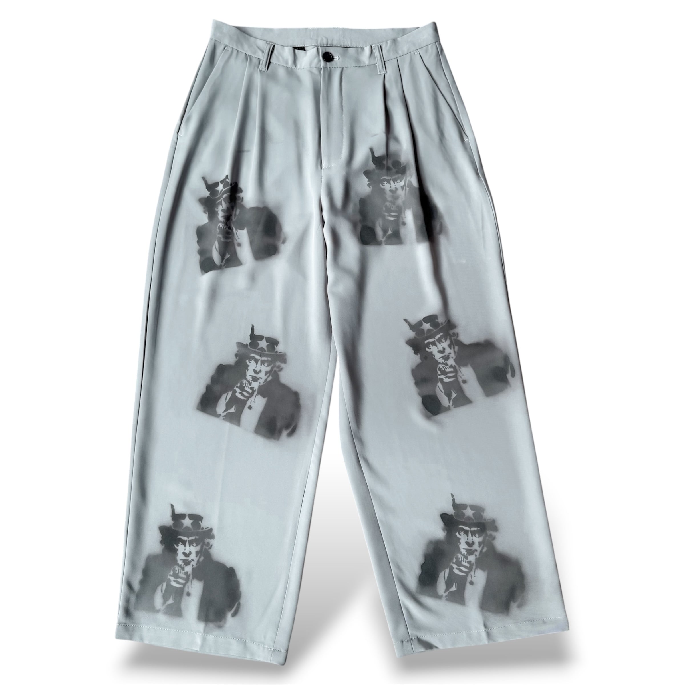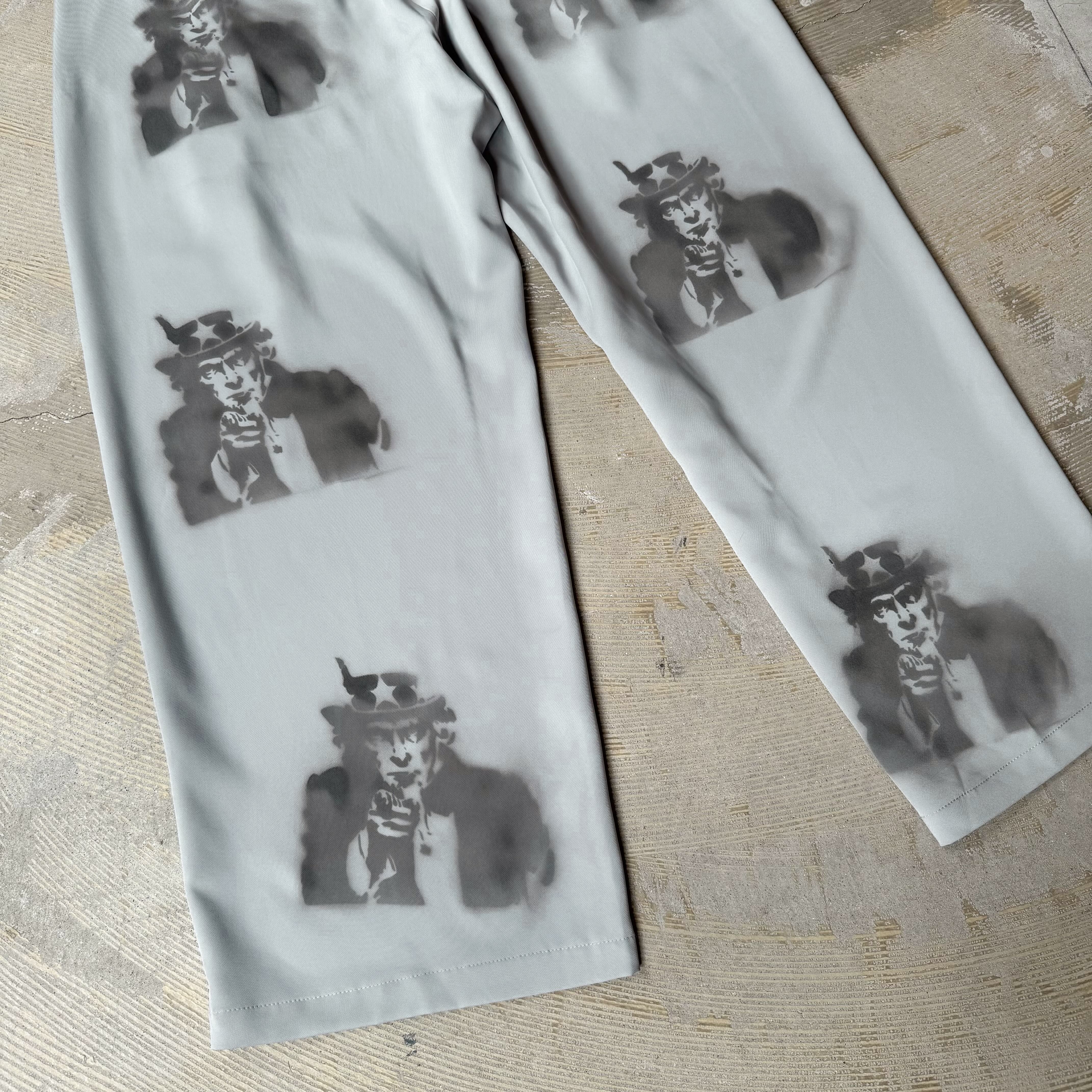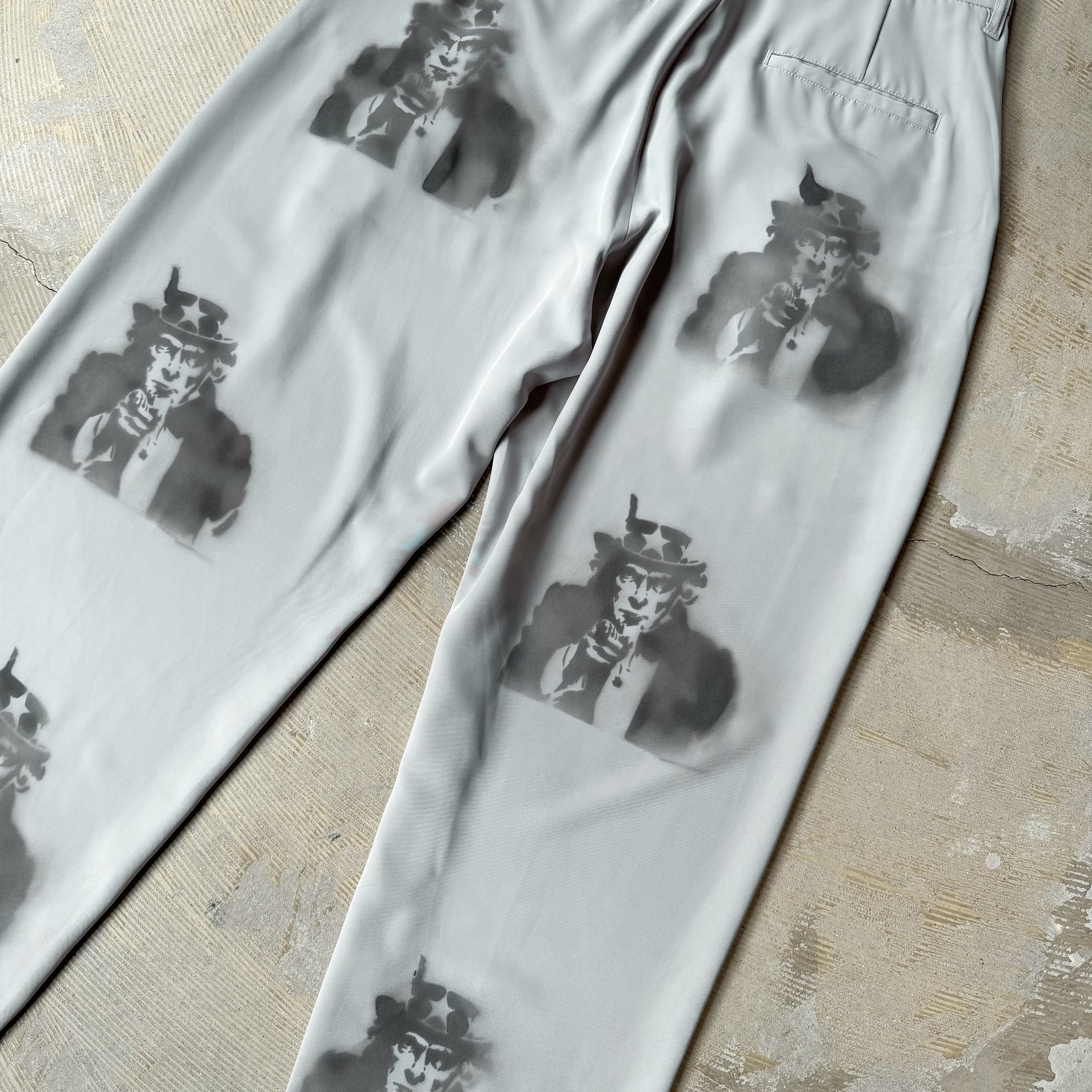 "UNCLE SAM" STENCIL ART COLOR WIDE SLACKS PANTS / アンクル サム ステンシル アート ワイド スラックス パンツ