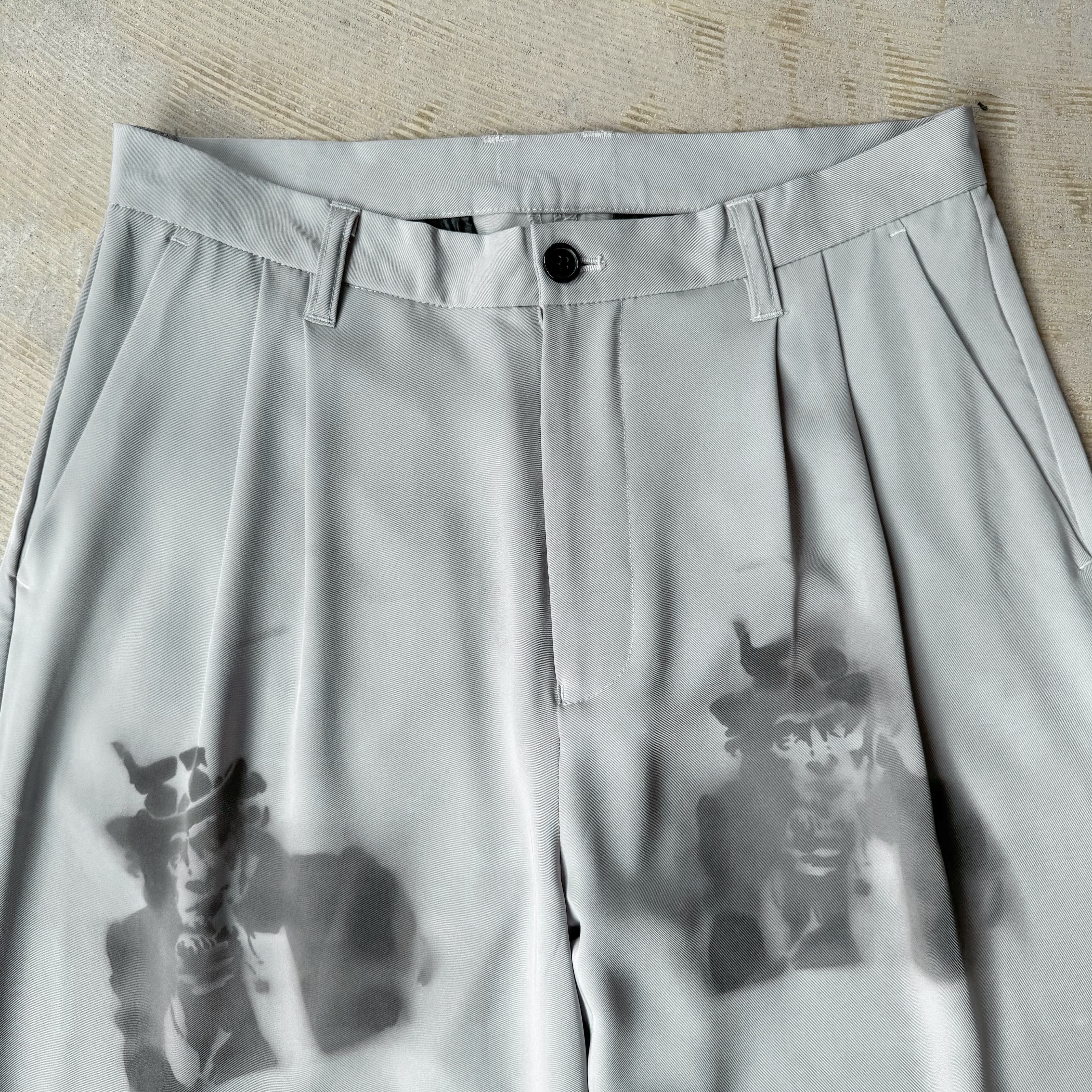 ・上品なワイドスラックスに、アンクルサムのステンシルが無造作に重ねられた一本。