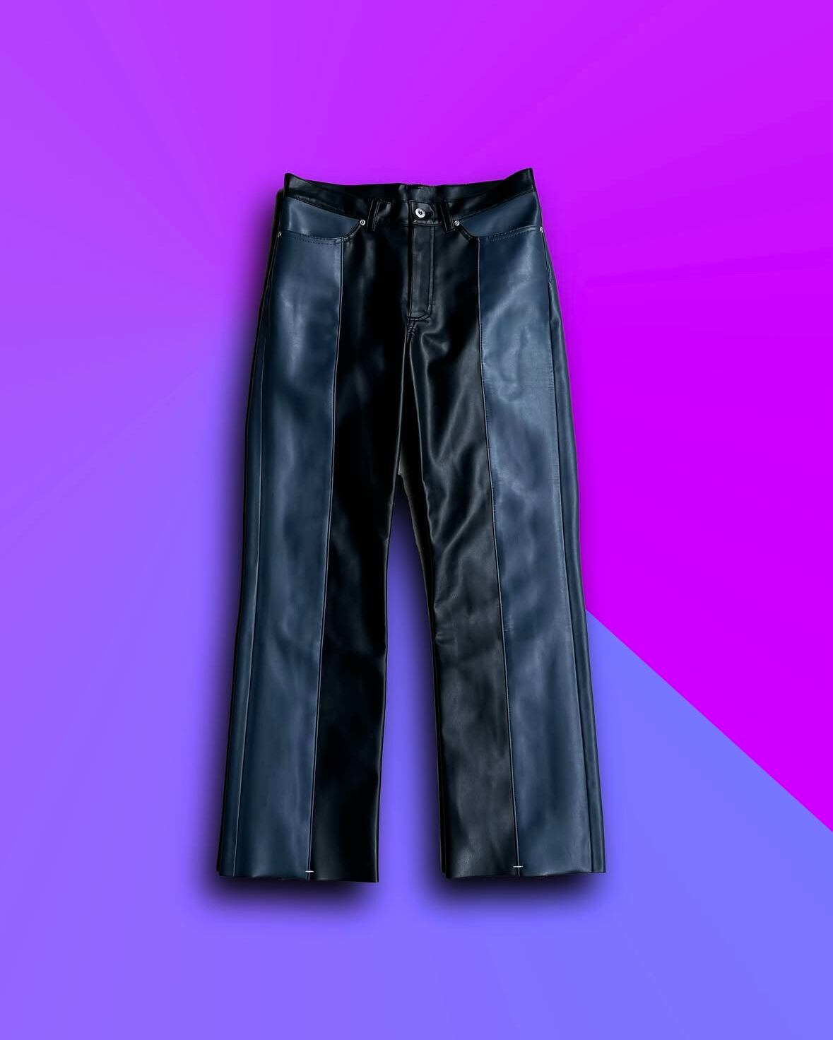 ブラックとネイビーのバイカラーFAUX LEATHER パンツ。
