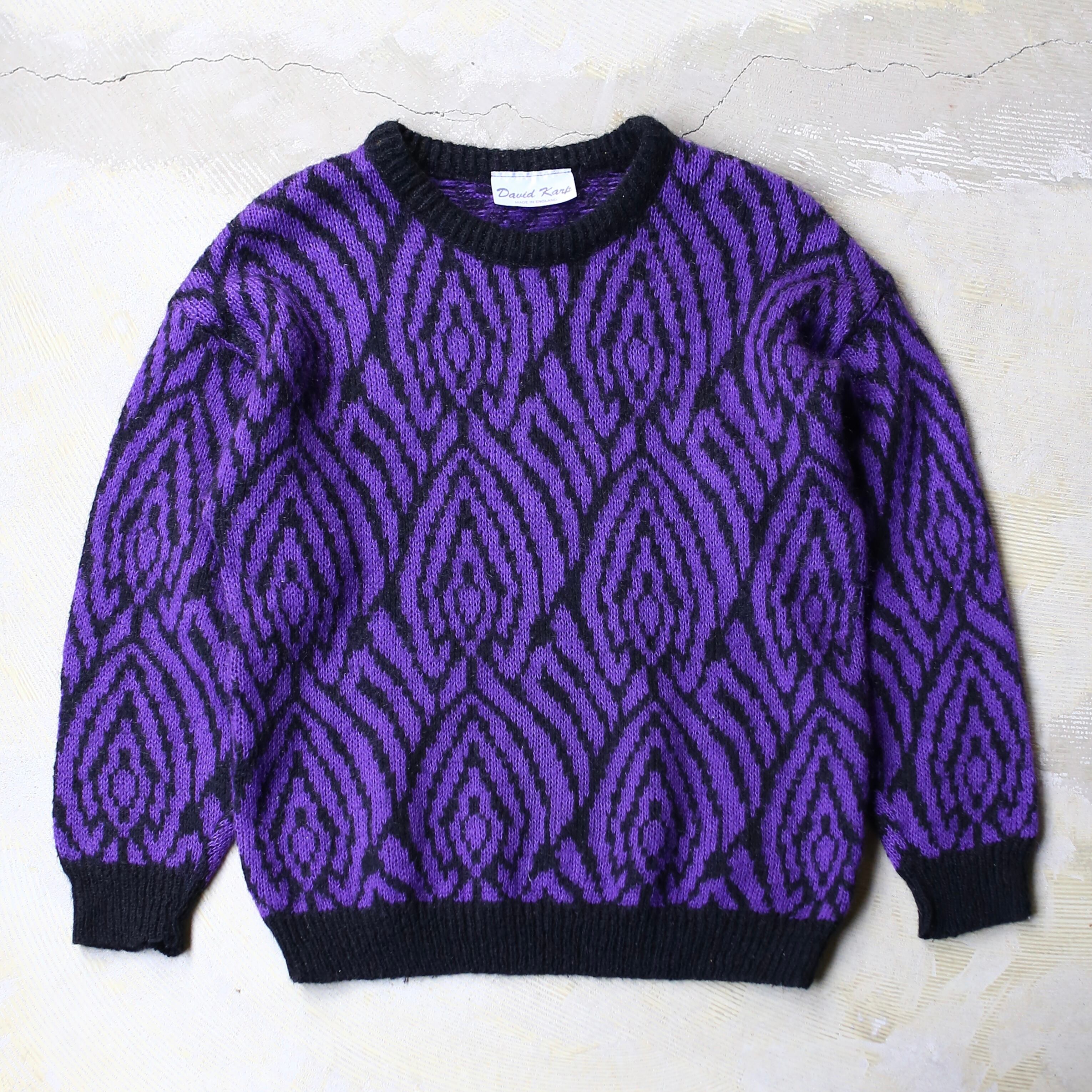 1990's ARTISTIC ALL OVER PATTERN MOHAIR KNIT SWEATER / MADE IN ENGLAND / 90年代 モヘア 総柄 イングランド ニット セーター