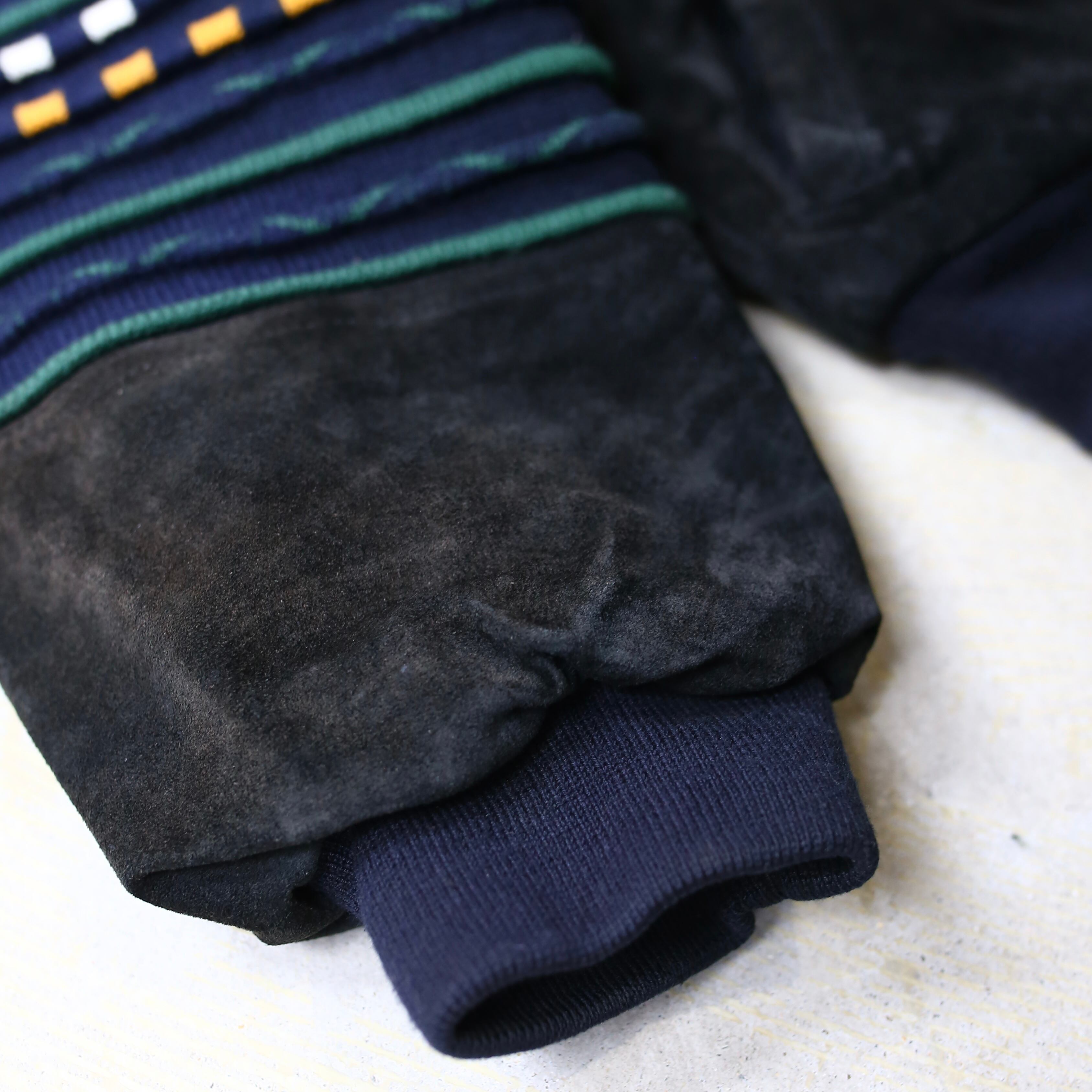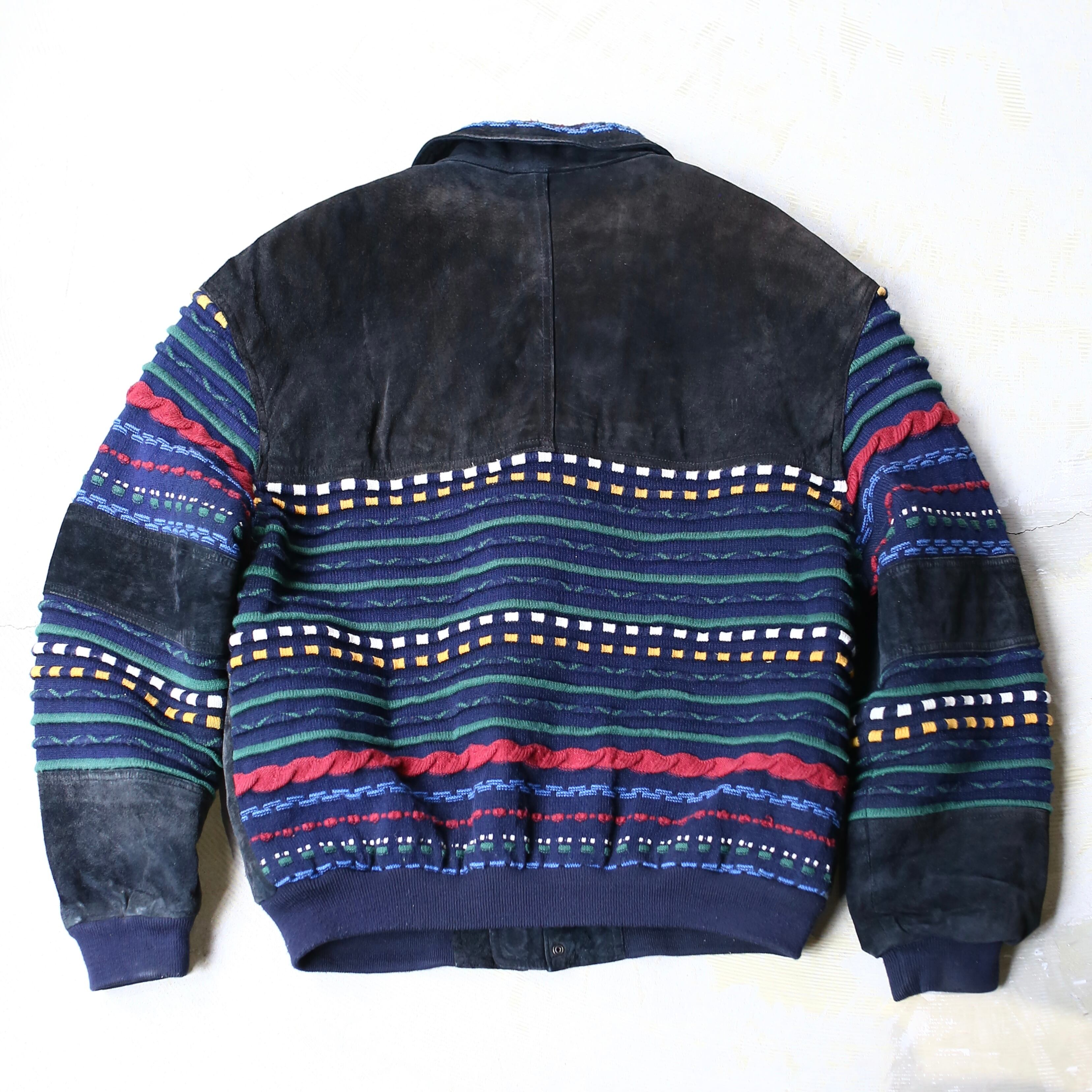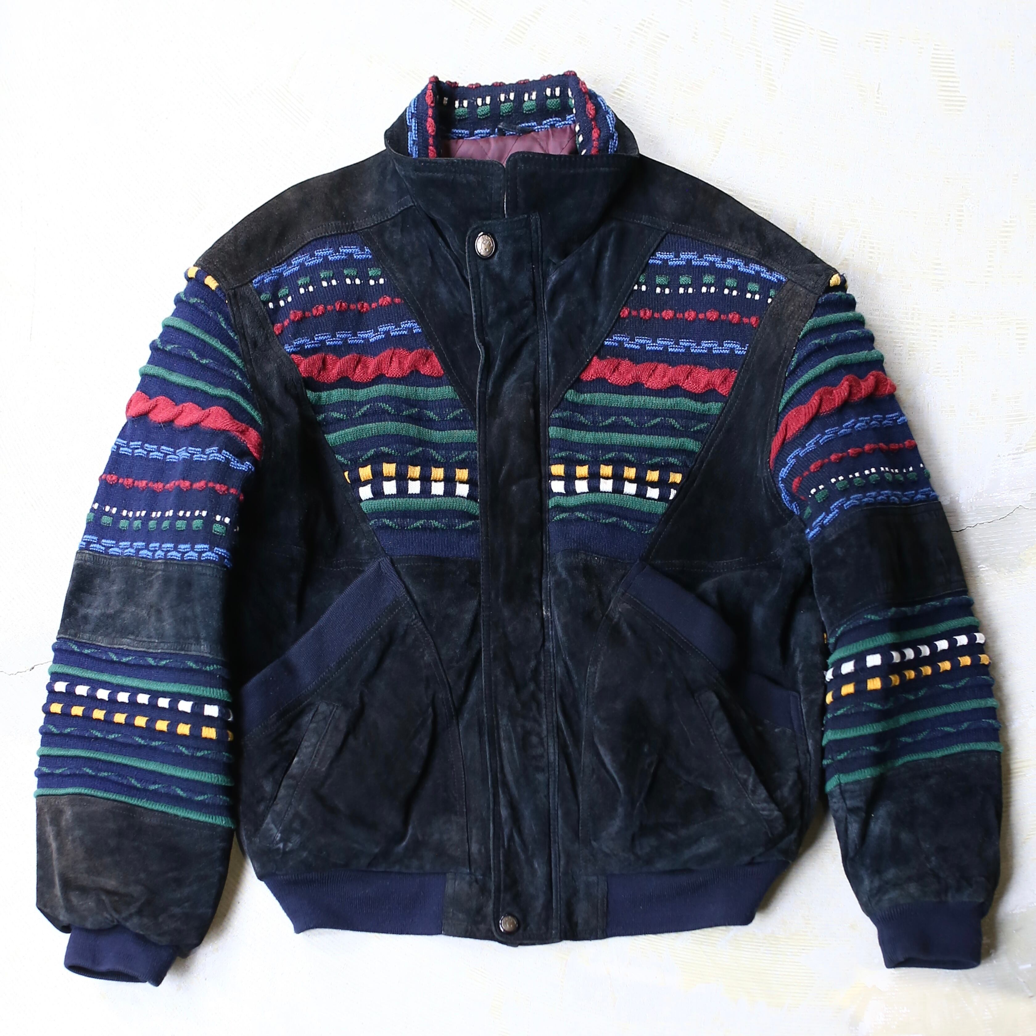 SUEDE LEATHER × 3D KNIT SWITCHED BOMBER JACKET / ボーダー クージー COOGI 風 ニット スウェード レザー ブルゾン ジャケット