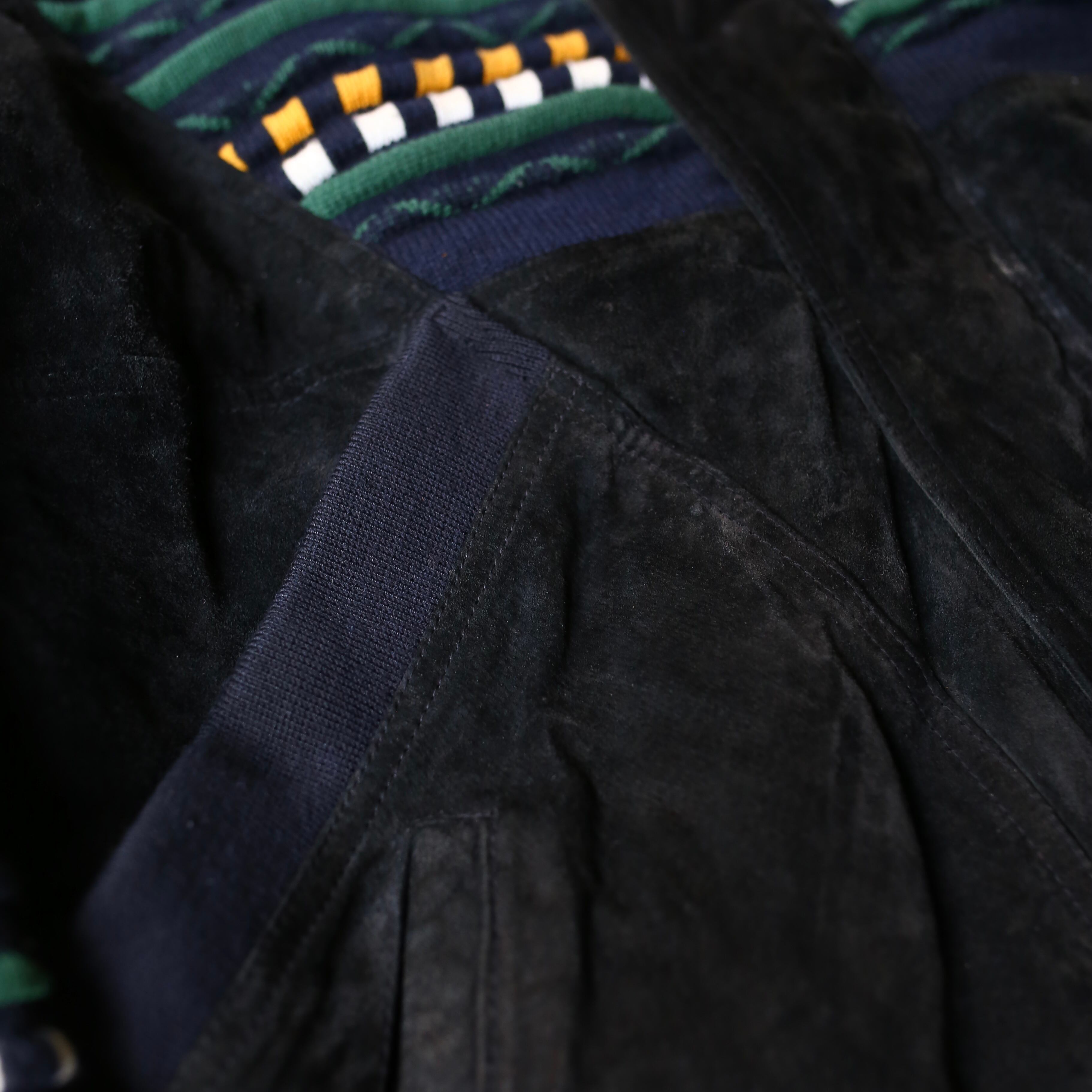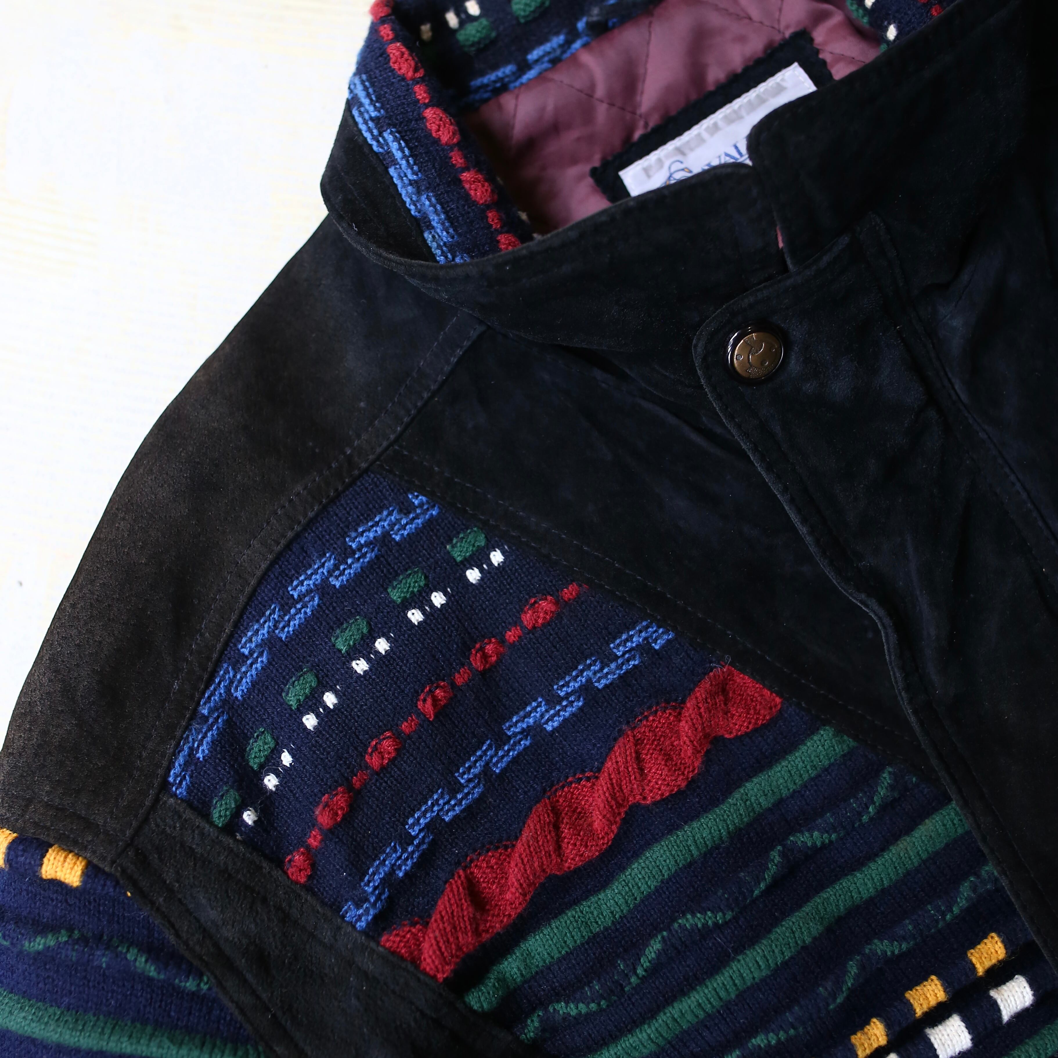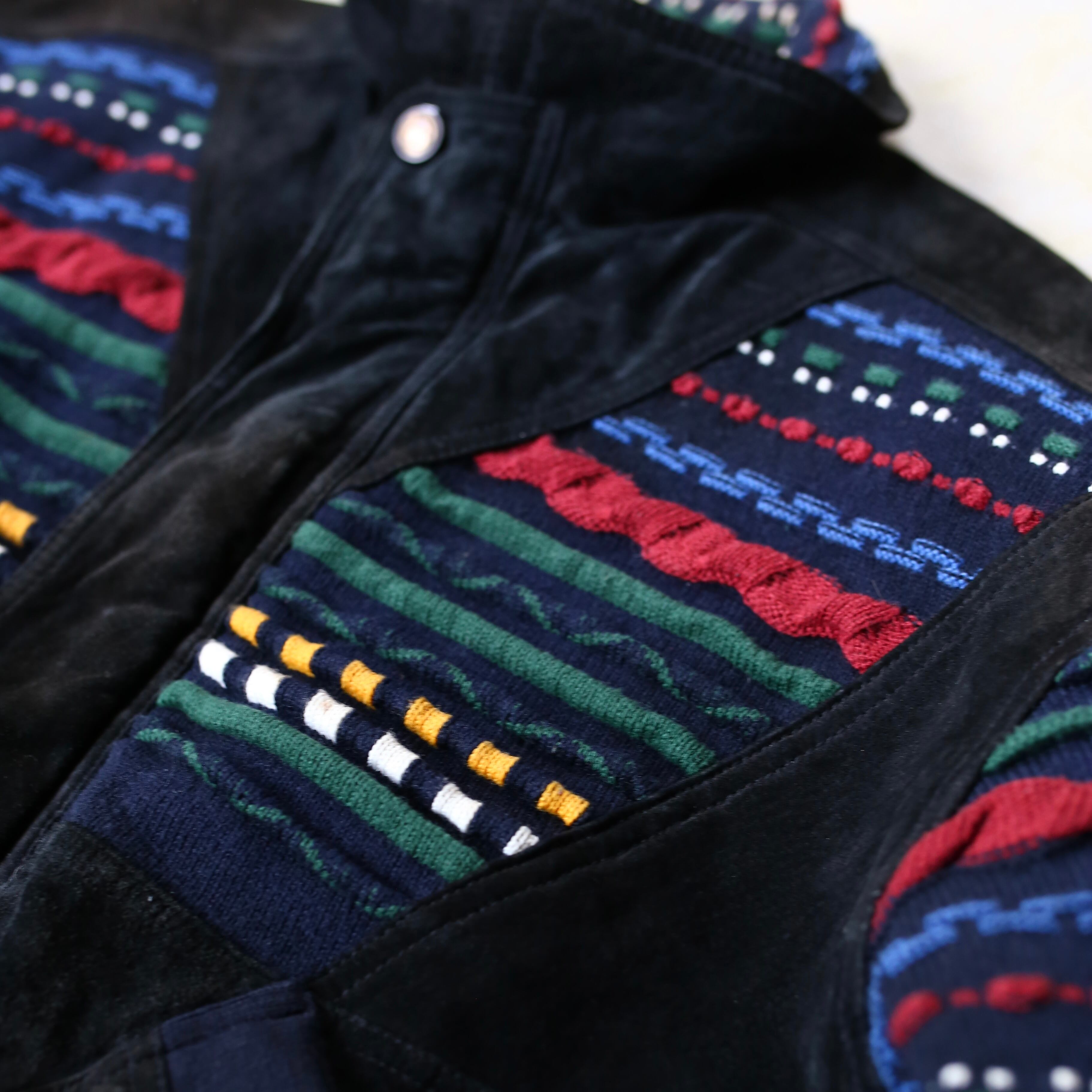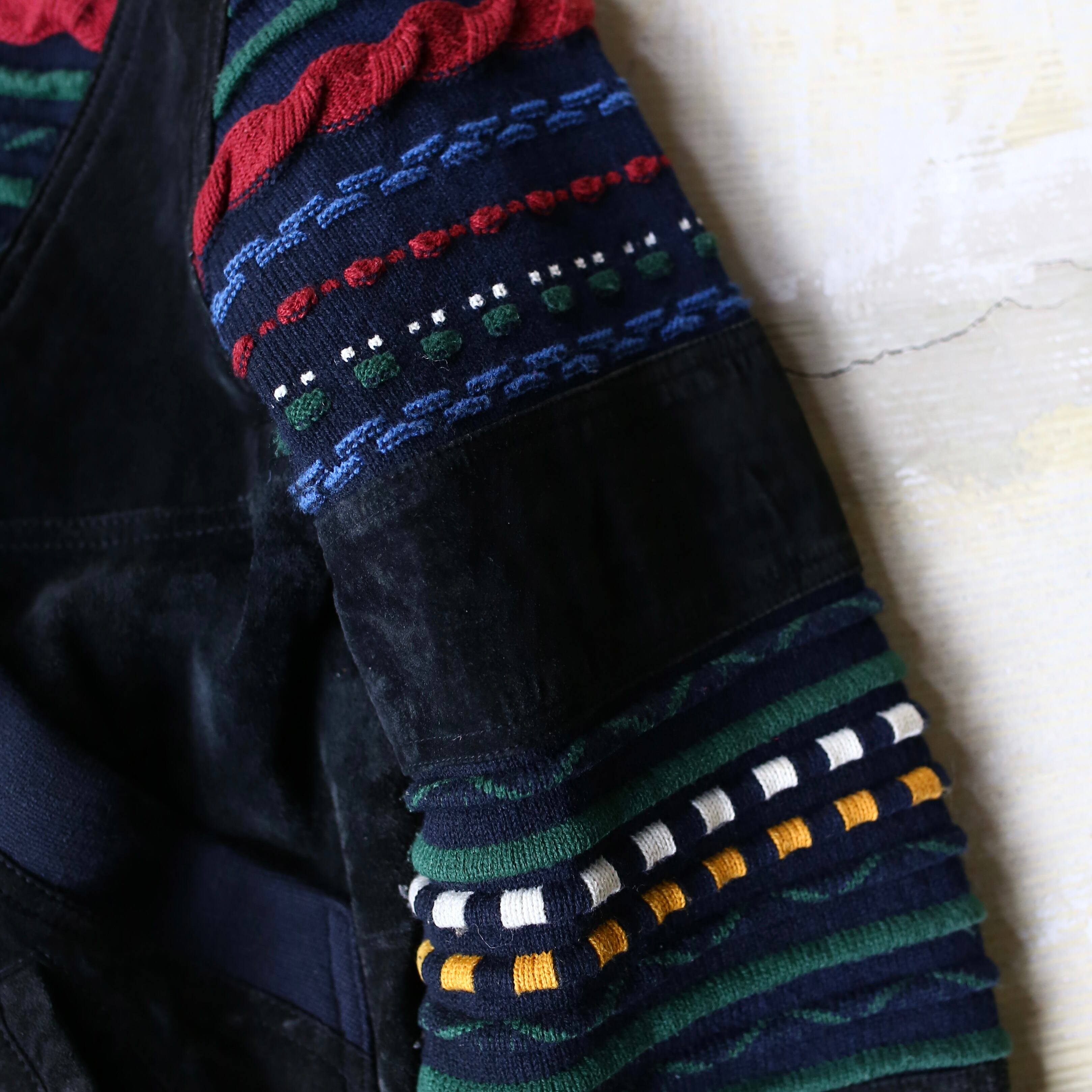 SUEDE LEATHER × 3D KNIT SWITCHED BOMBER JACKET / ボーダー クージー COOGI 風 ニット スウェード レザー ブルゾン ジャケット
