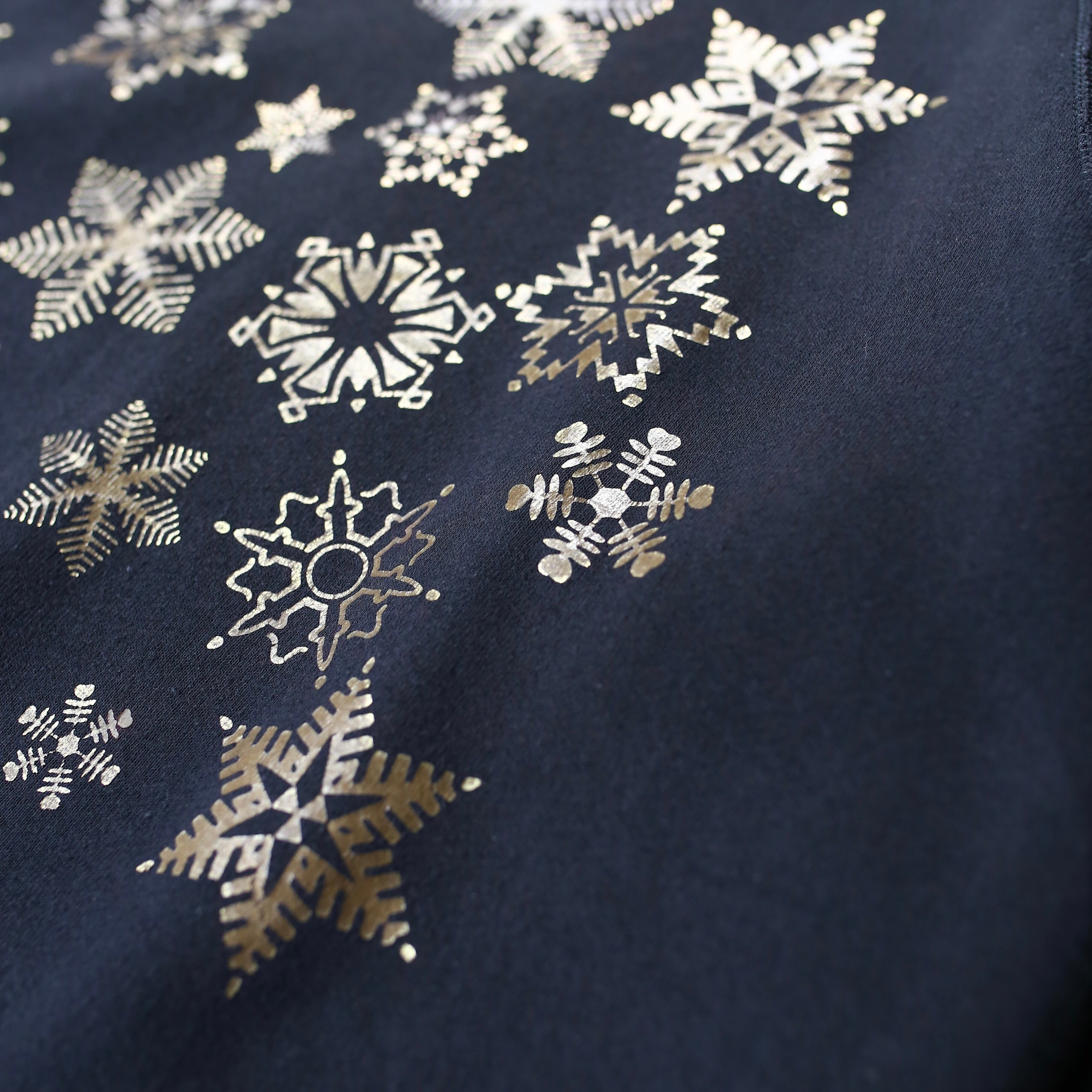様々な雪の結晶を箔プリントでデザイン。