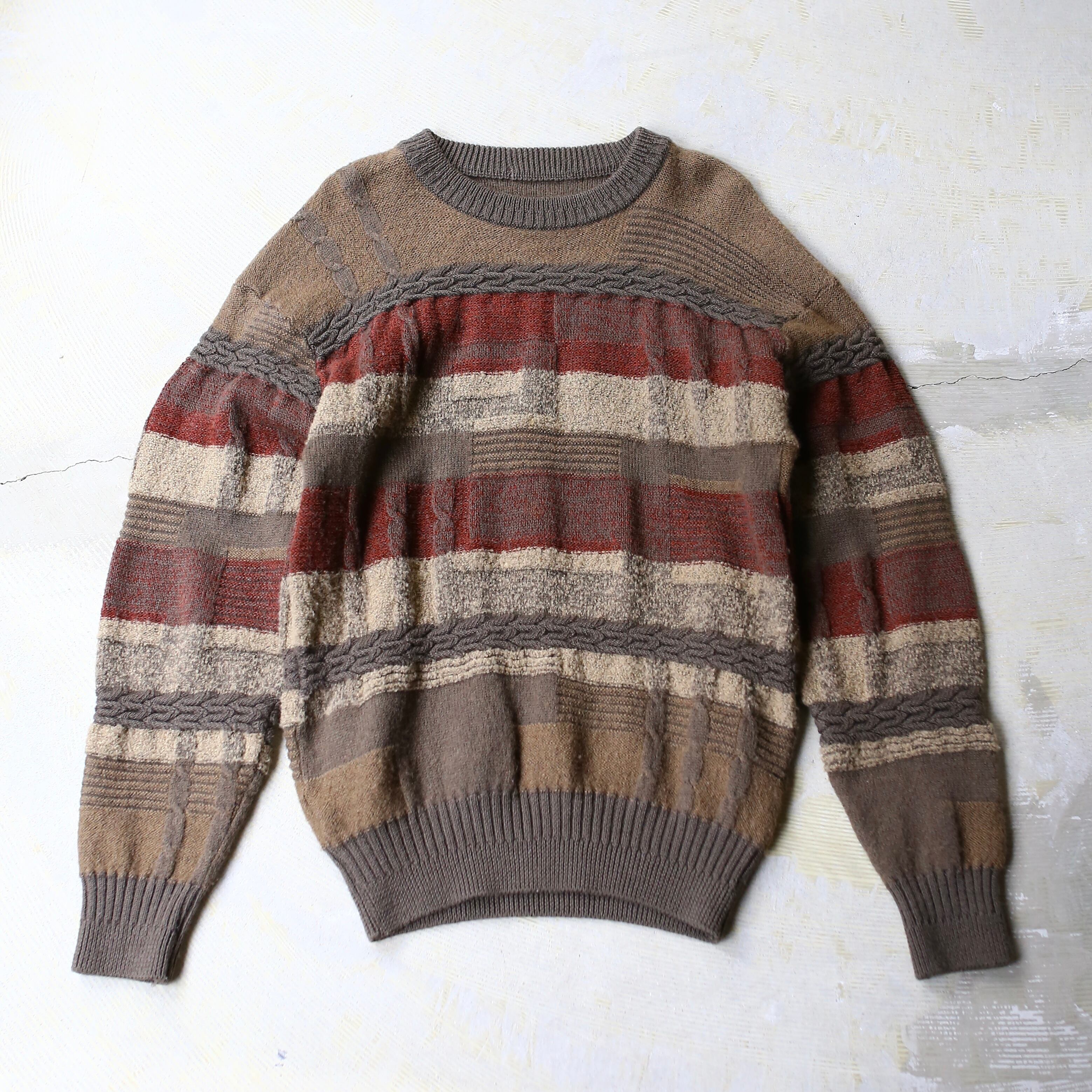 3D BORDER PATTERN KNITTING SWEATER / ボーダー クージー COOGI 風 ニット セーター