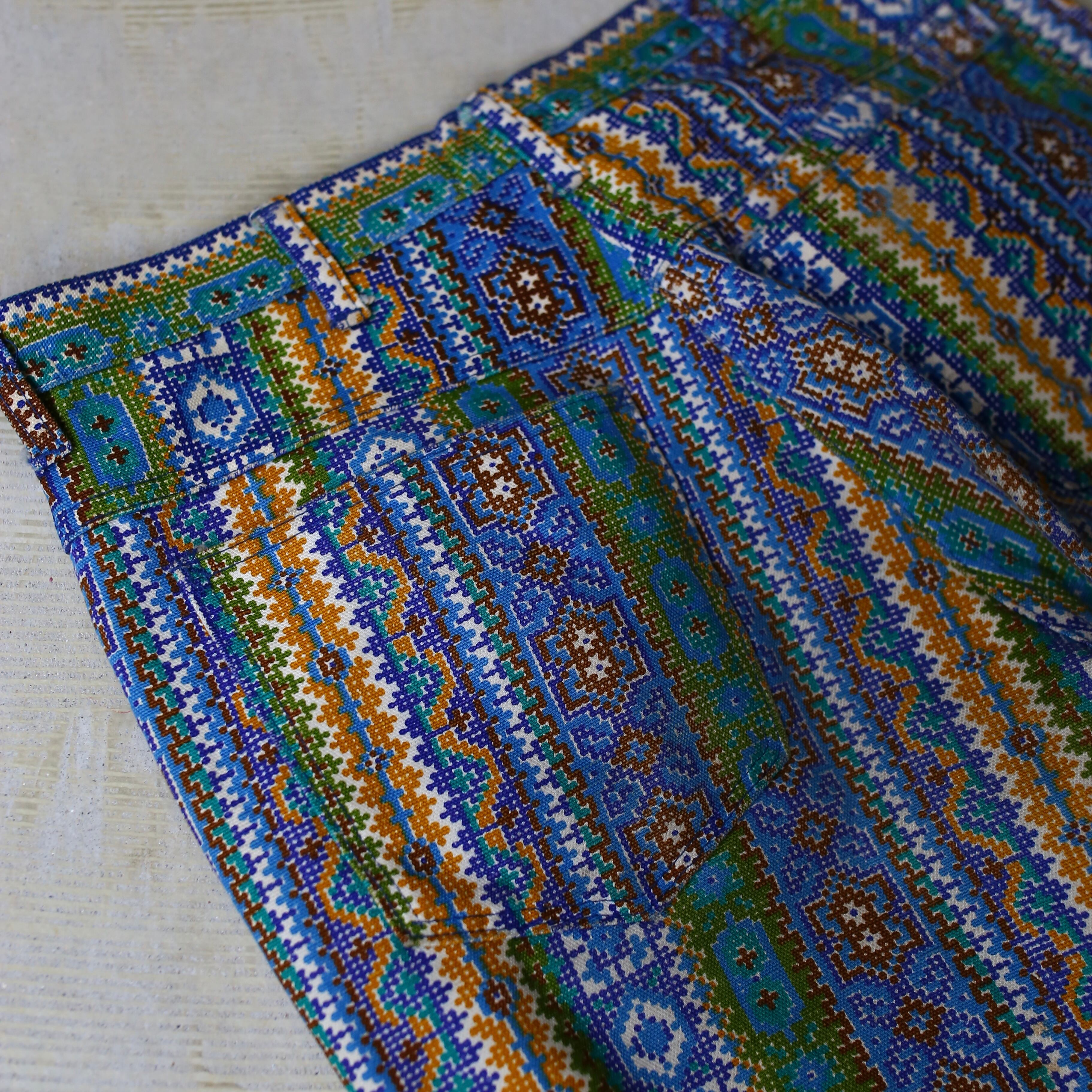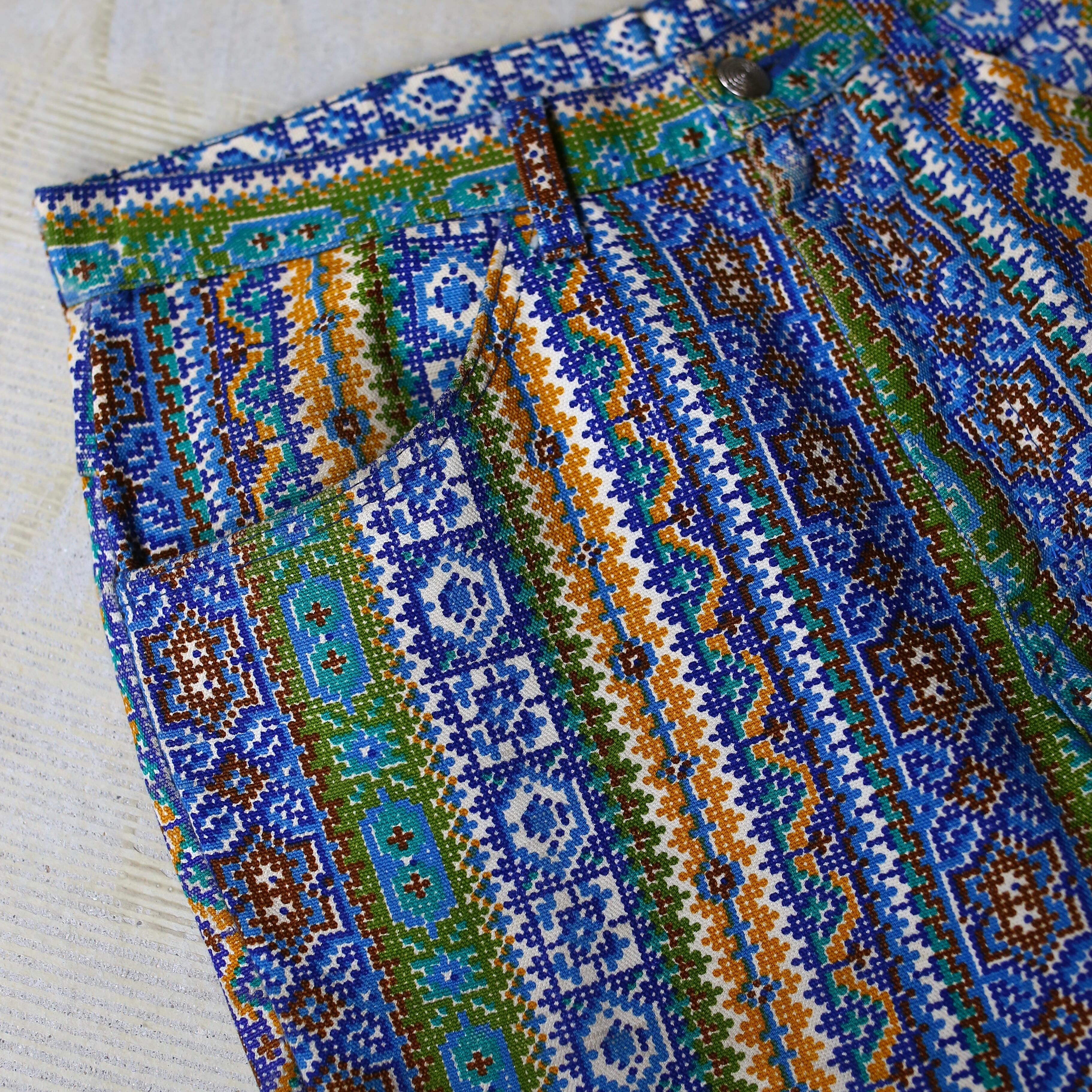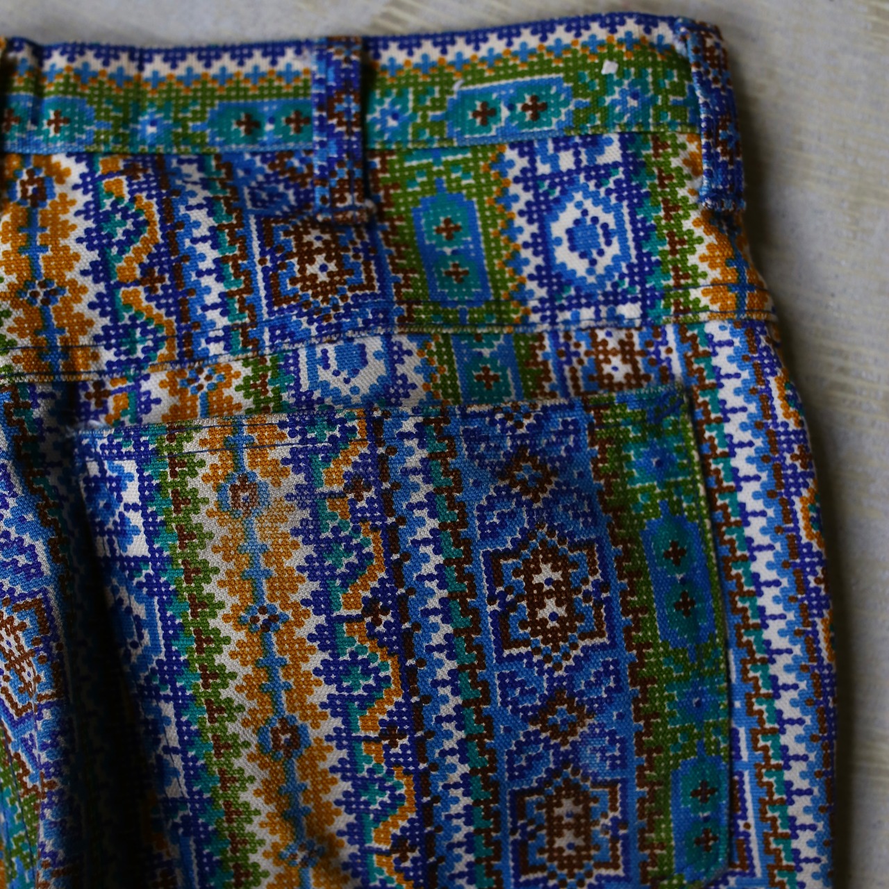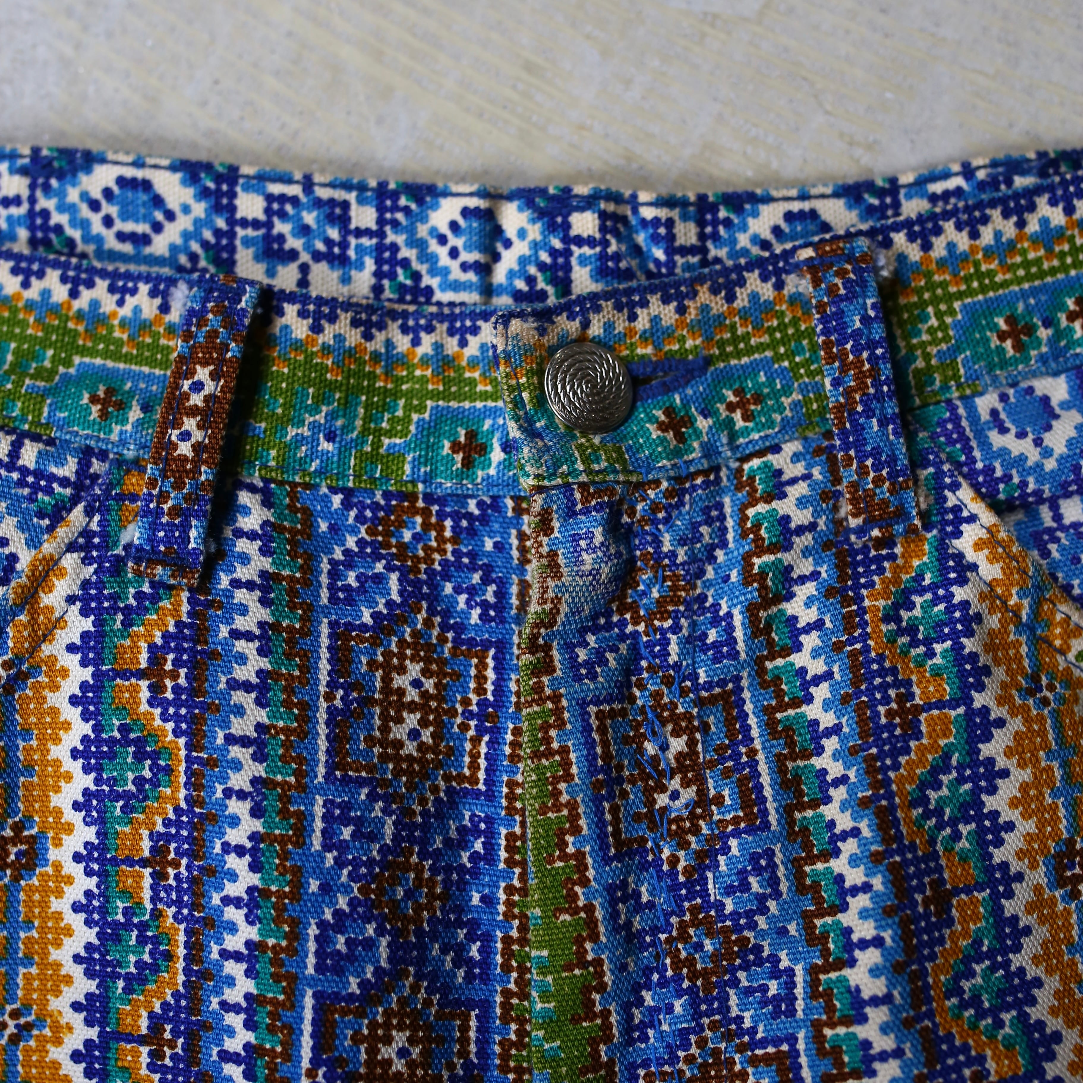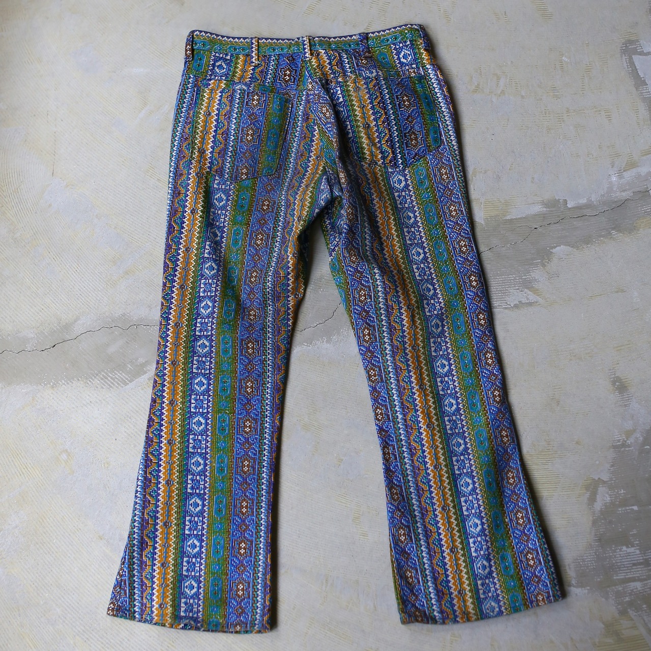 1970's NATIVE STRIPE PATTERN FLARE PANTS / 70年代 ネイティブ ストライプ 総柄 フレア パンツ