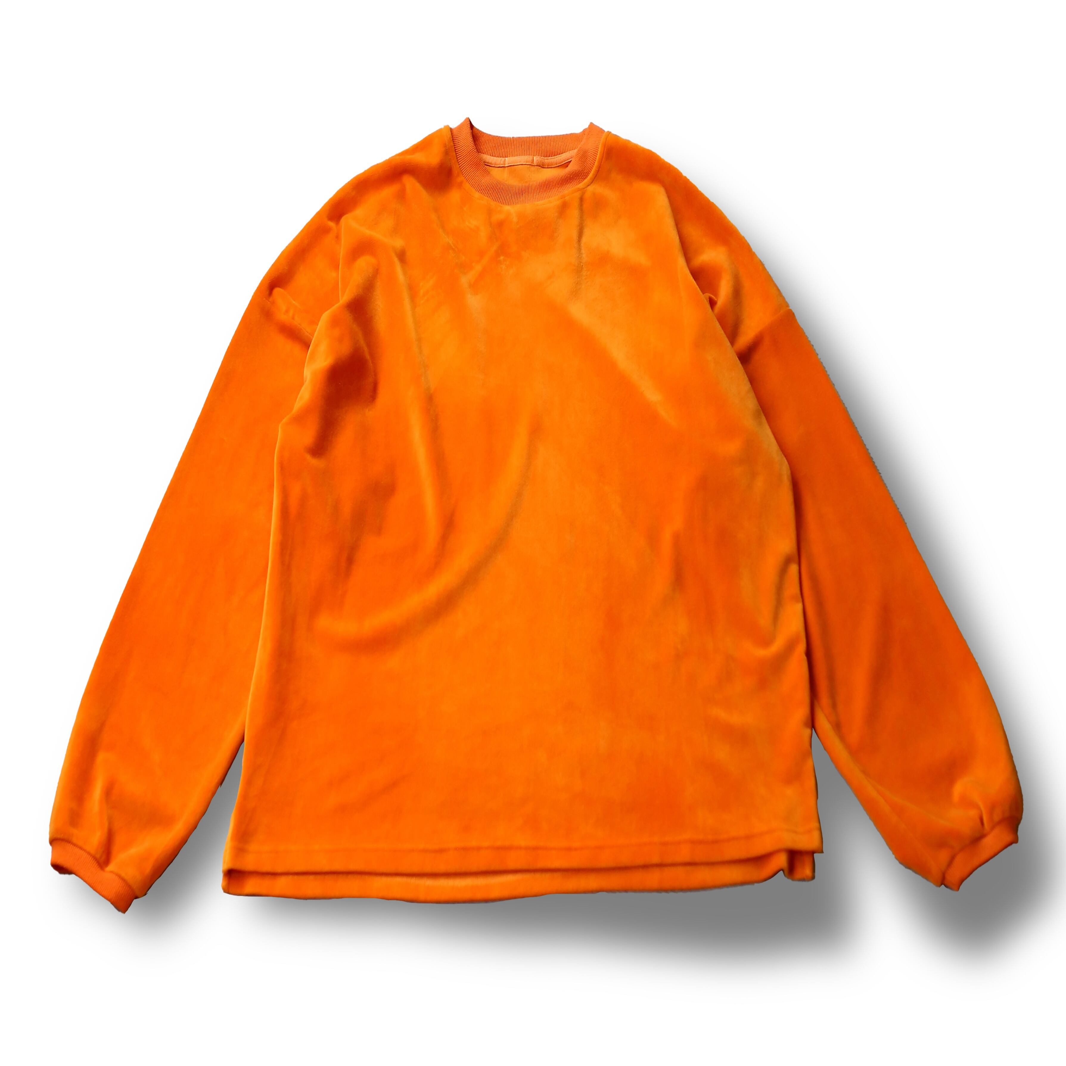 ORANGE COLOR VELOUR BIG SILHOUETTE SWEAT / ビッグ サイズ カラー ベロア スウェット トップス