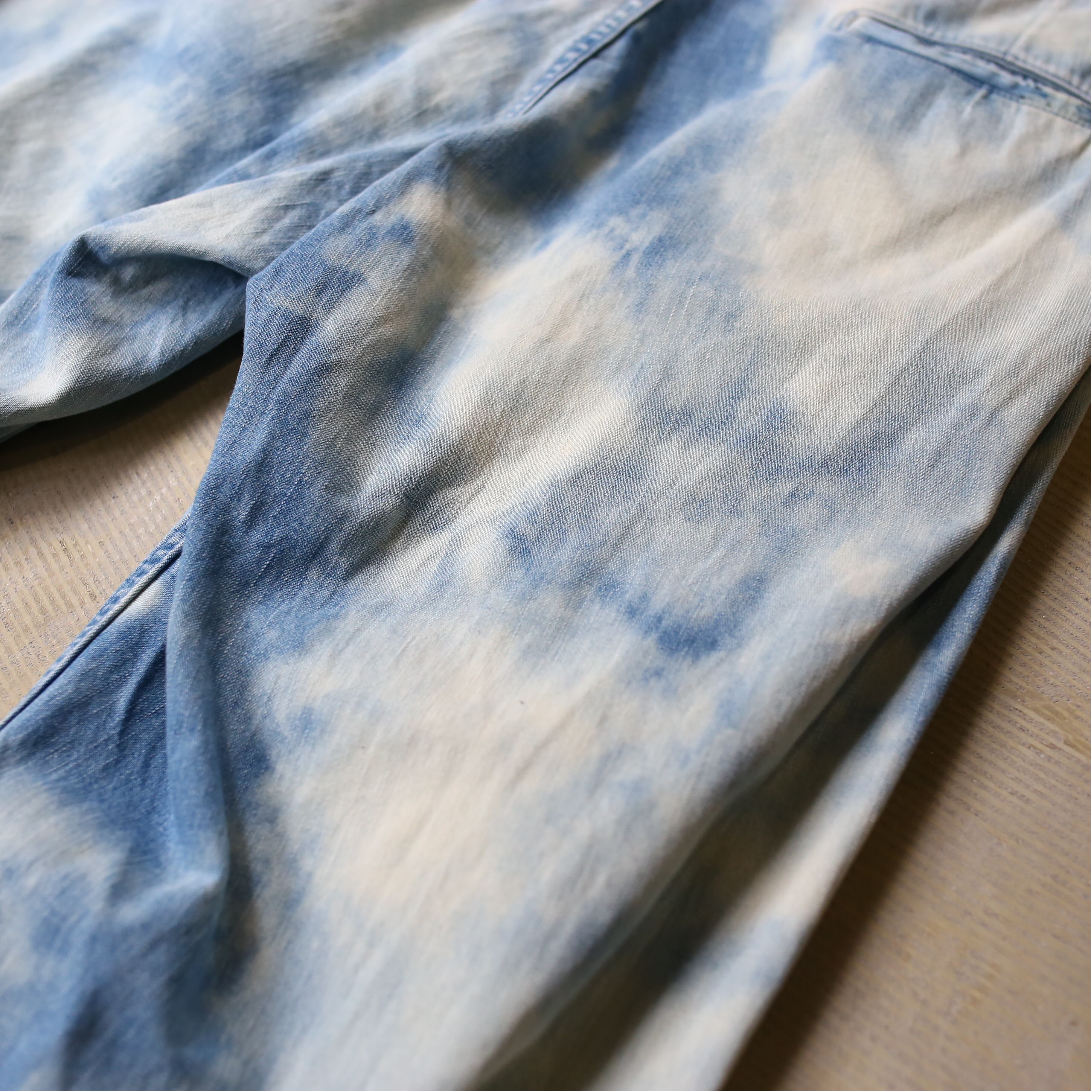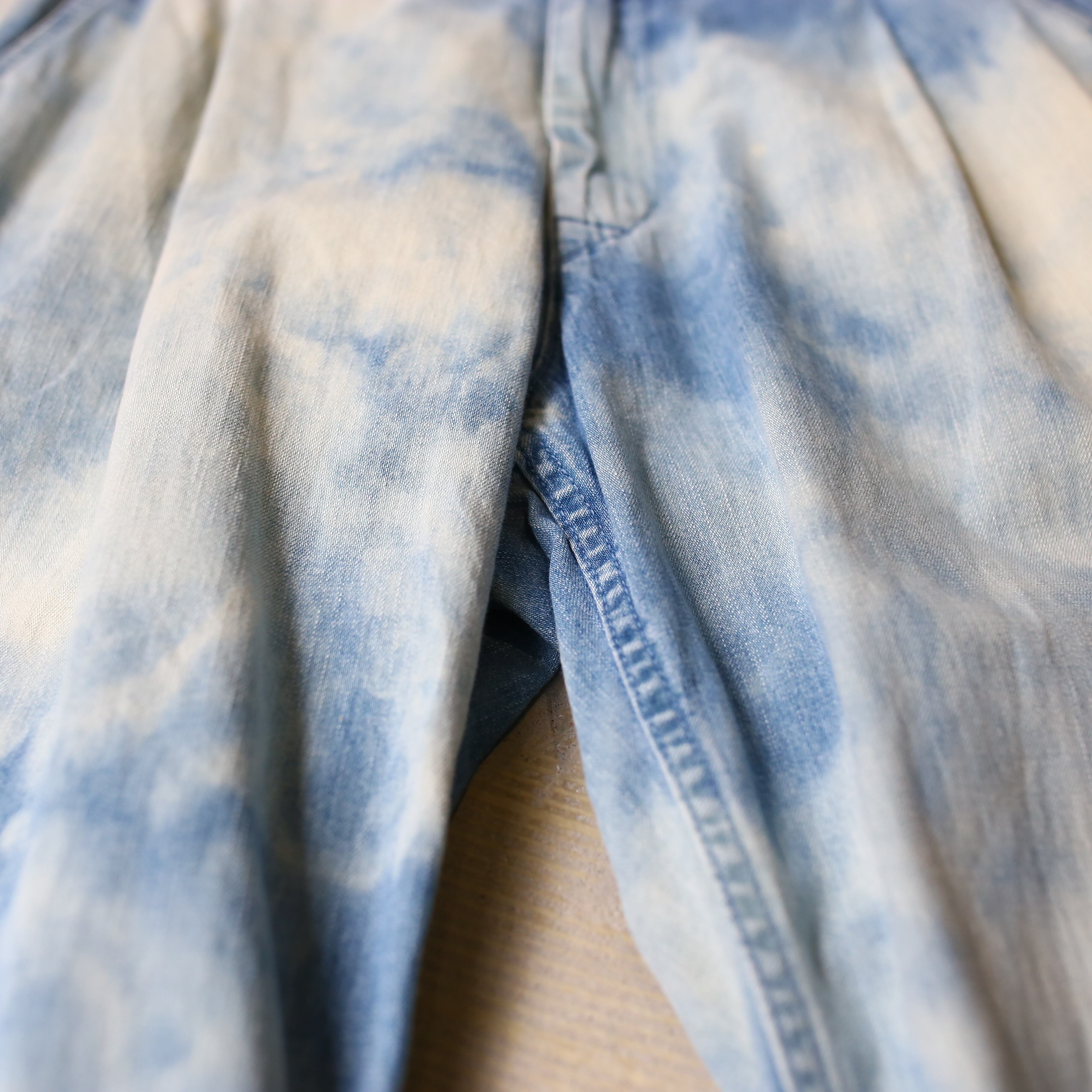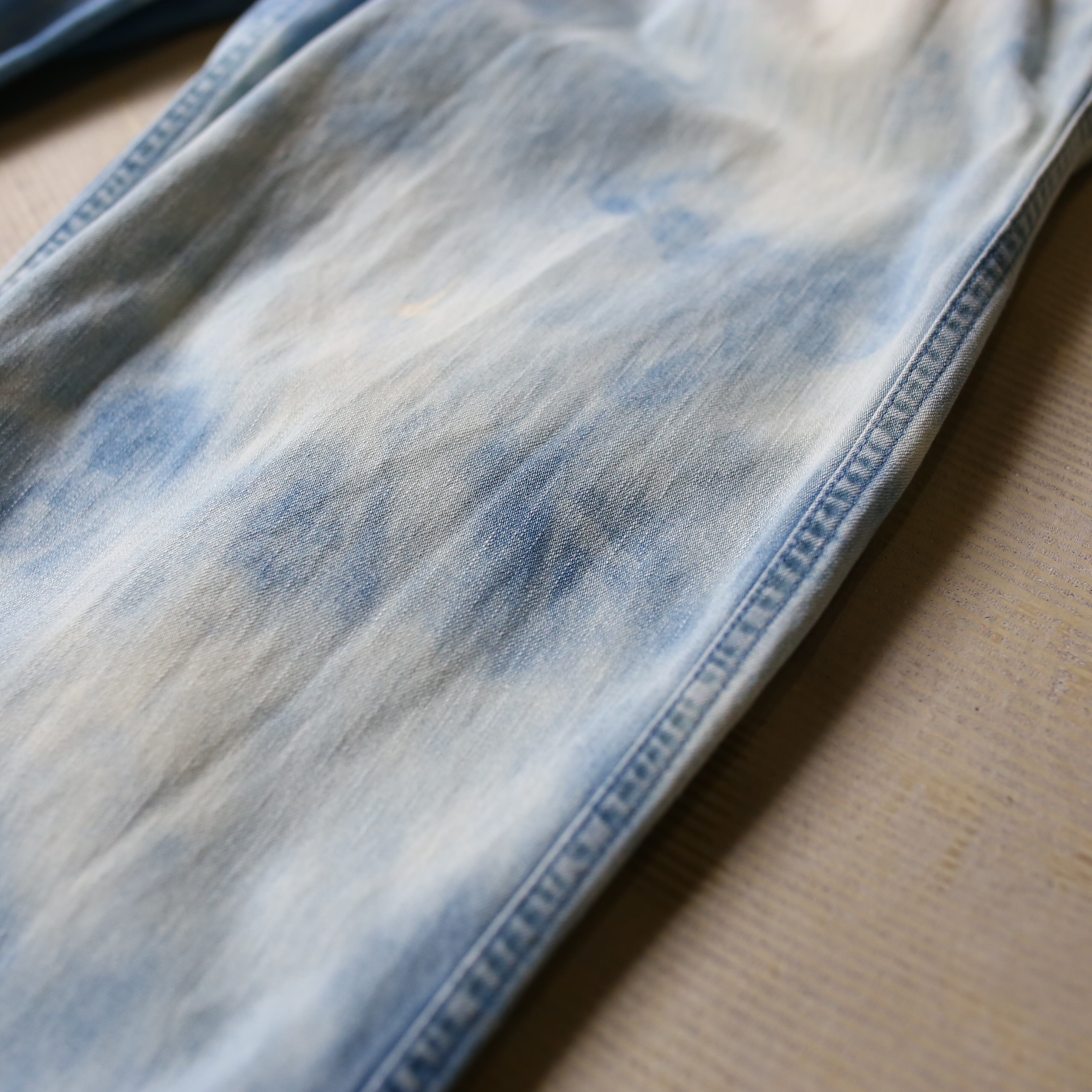 ・マーブル模様のような滑らかで水彩的なブリーチが美しいデニムパンツ。