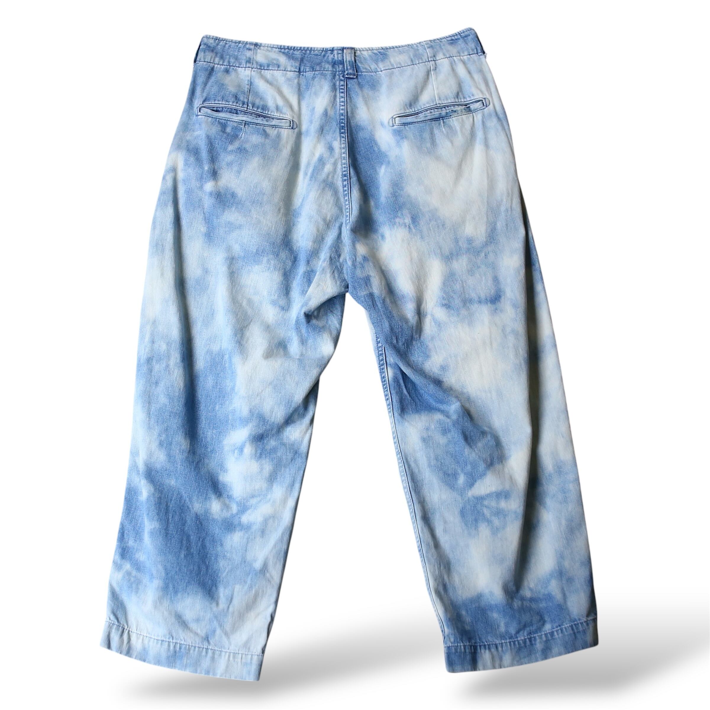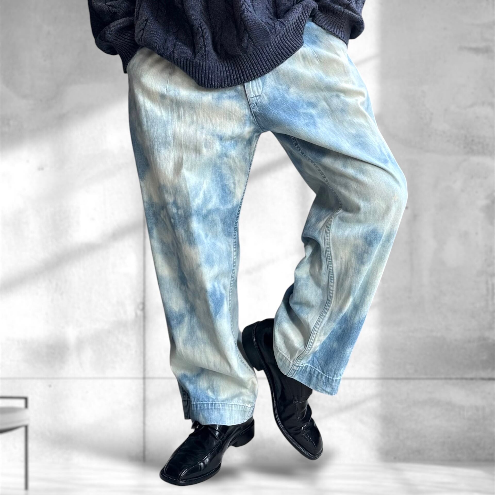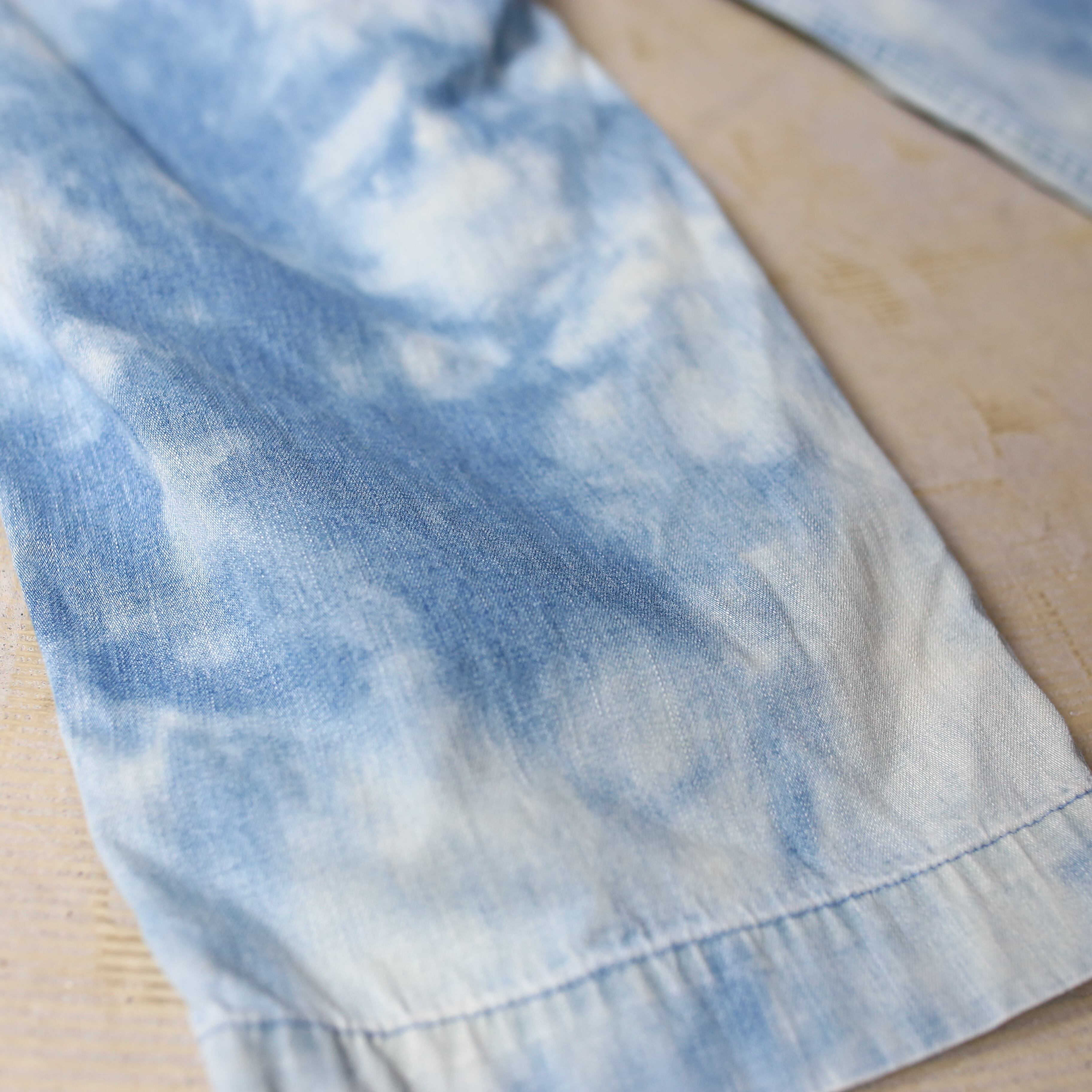 ・マーブル模様のような滑らかで水彩的なブリーチが美しいデニムパンツ。
