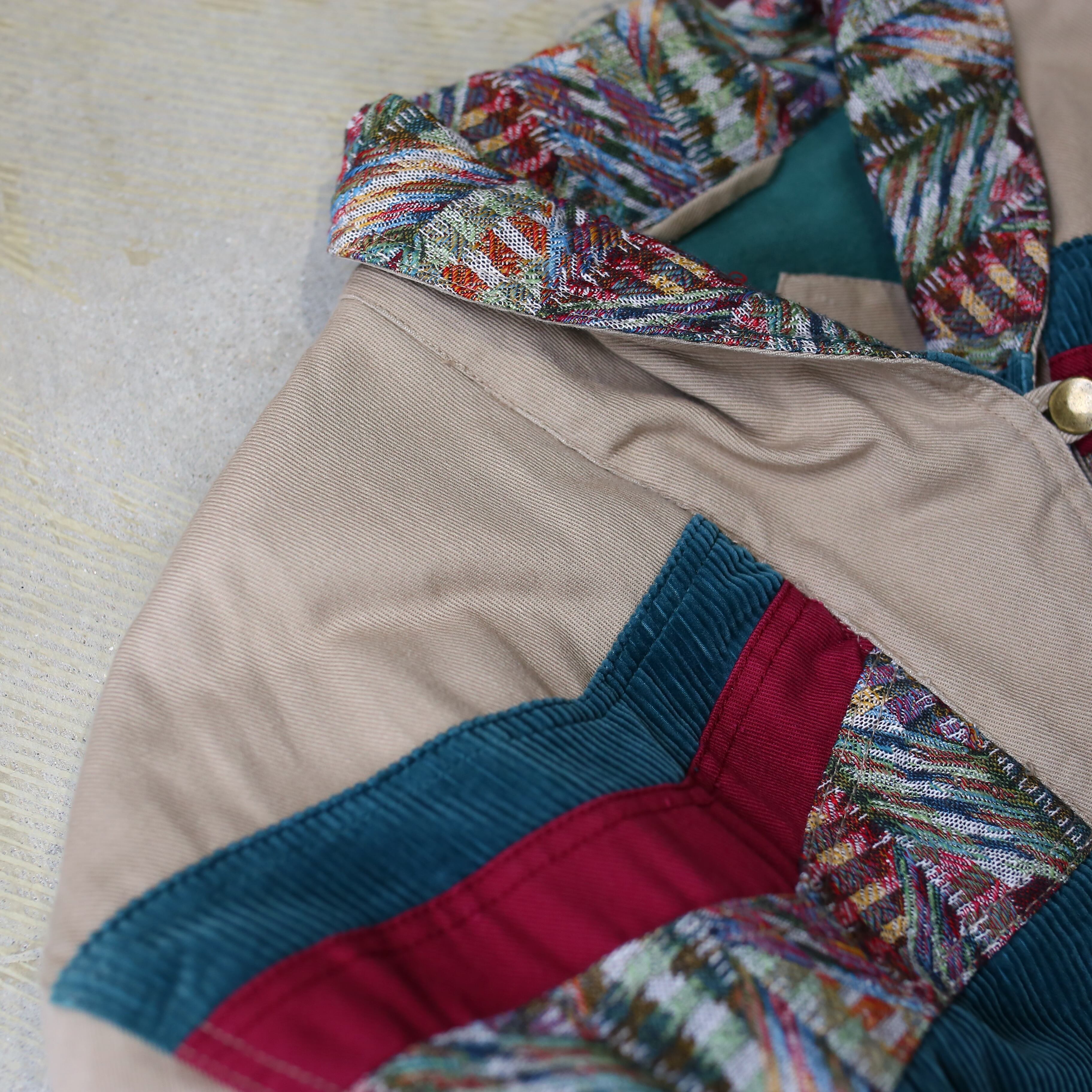 ・1990年代、様々なテキスタイルが融合したコットンハーフコート。