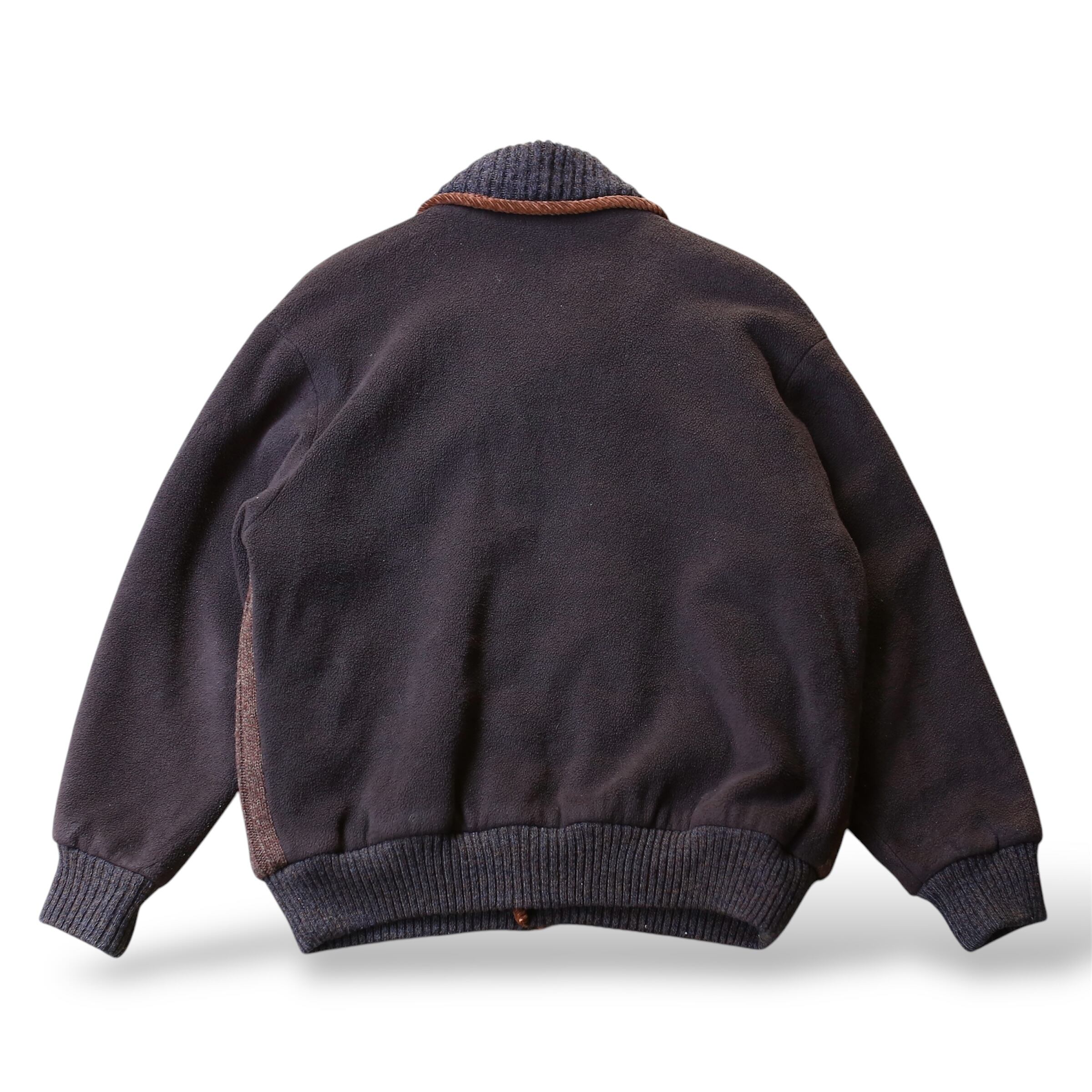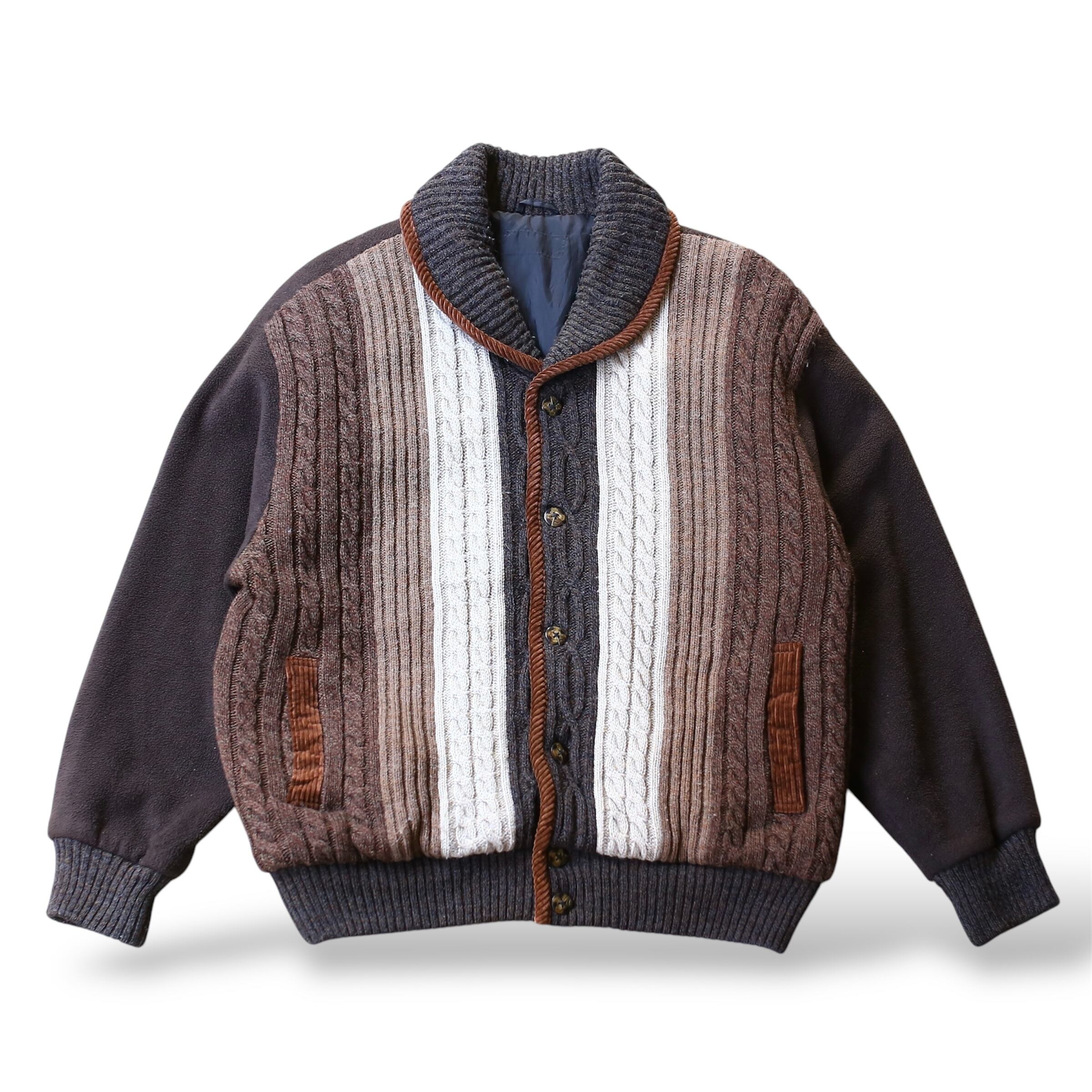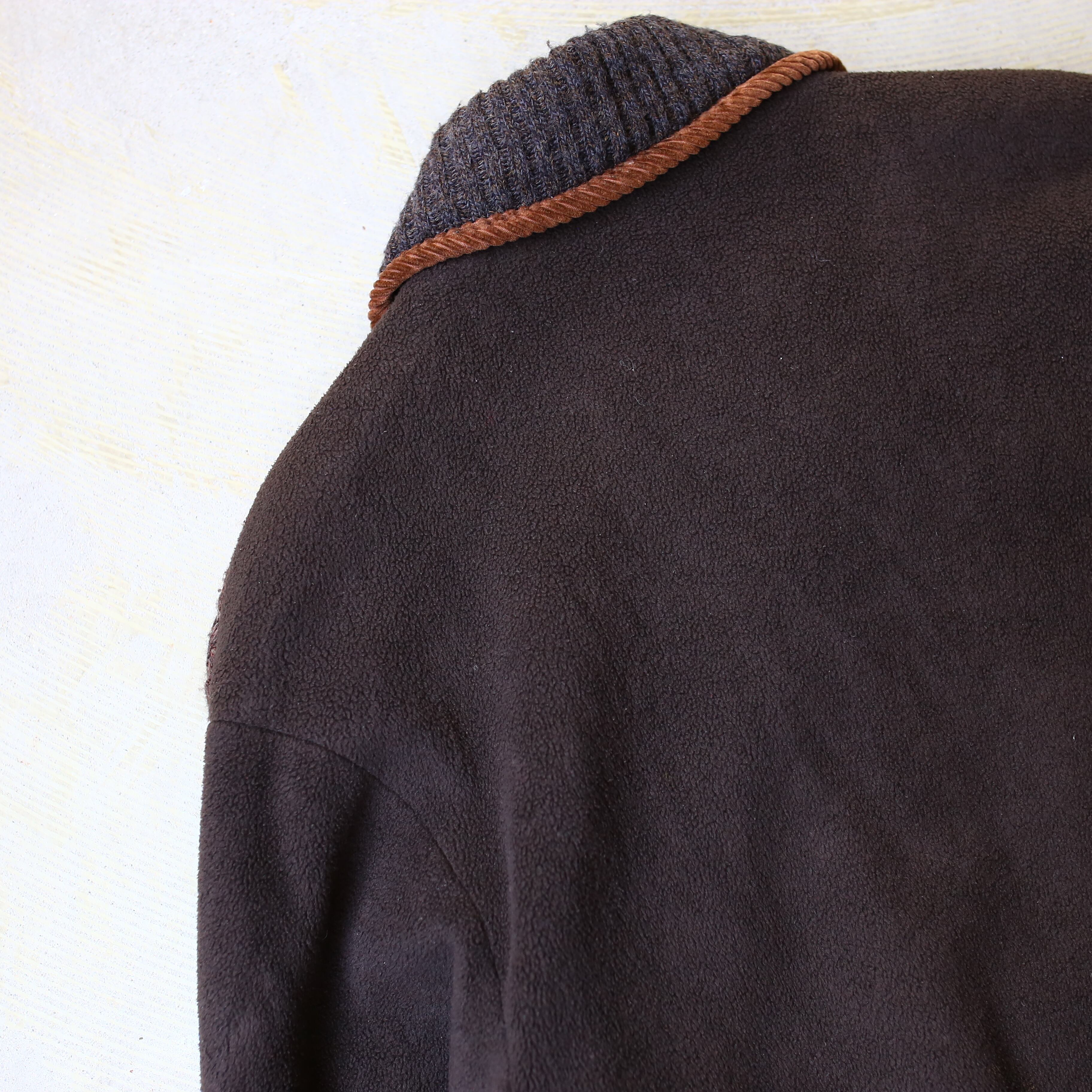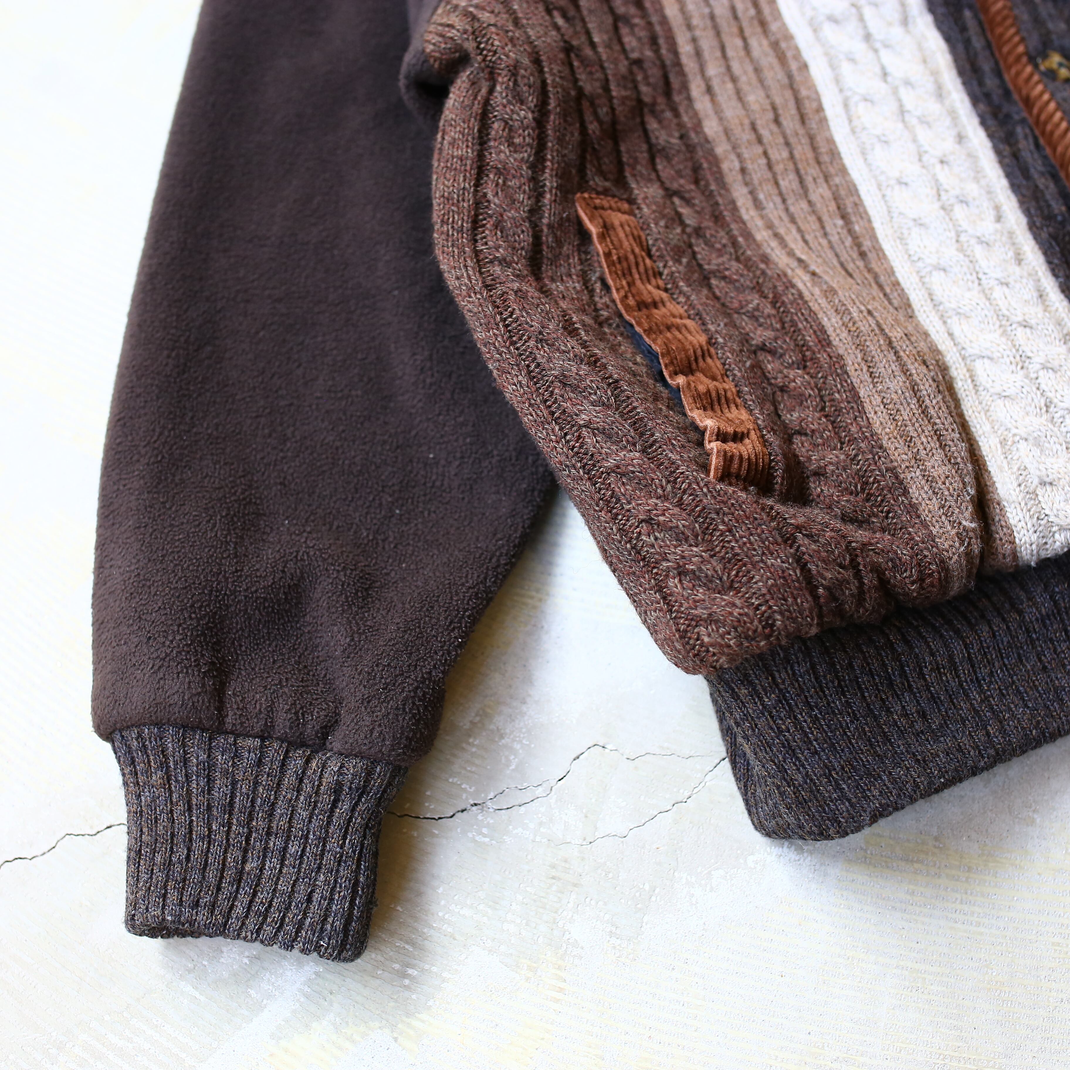 スリーブとバックはフリース素材で切り替えたニットカーディガンジャケット。