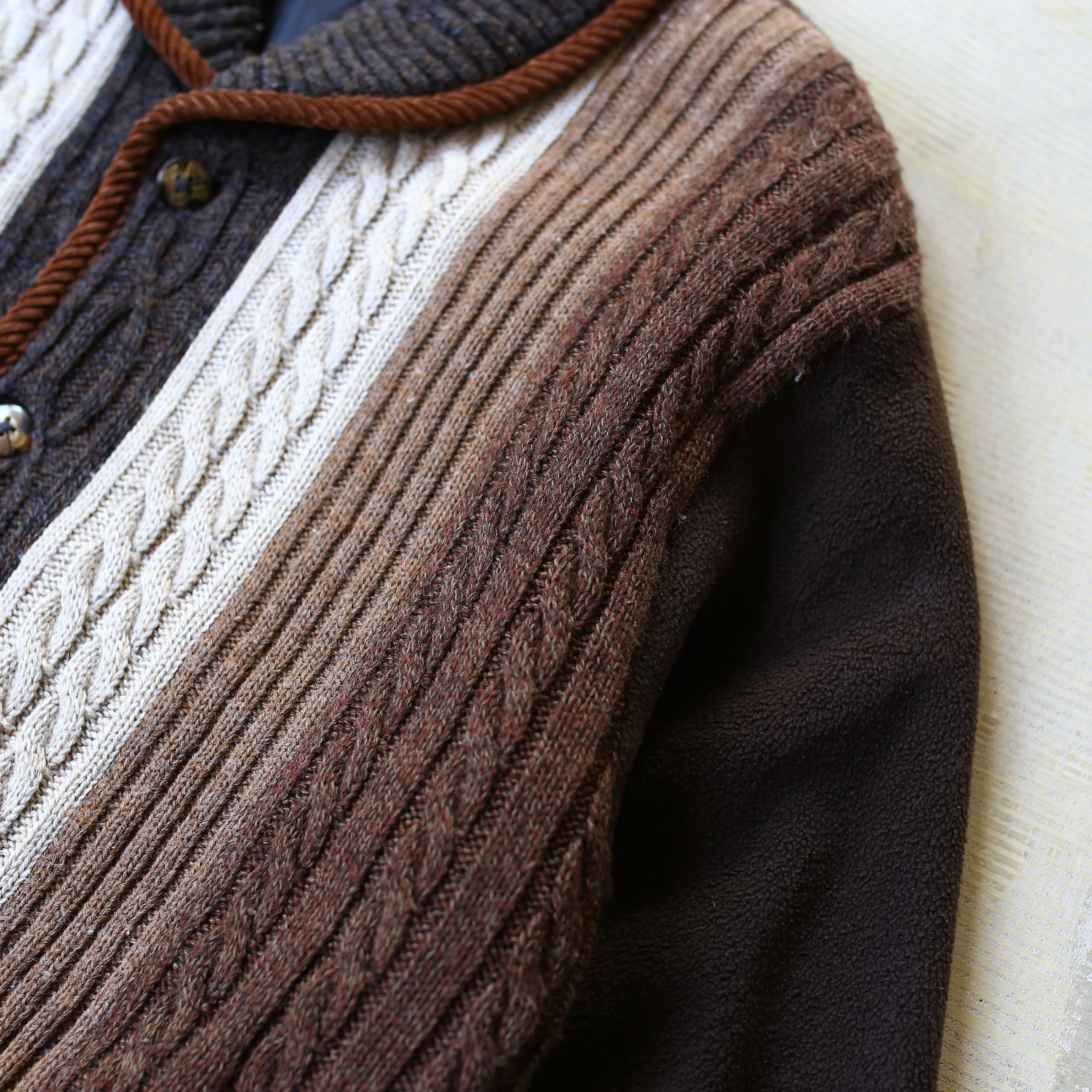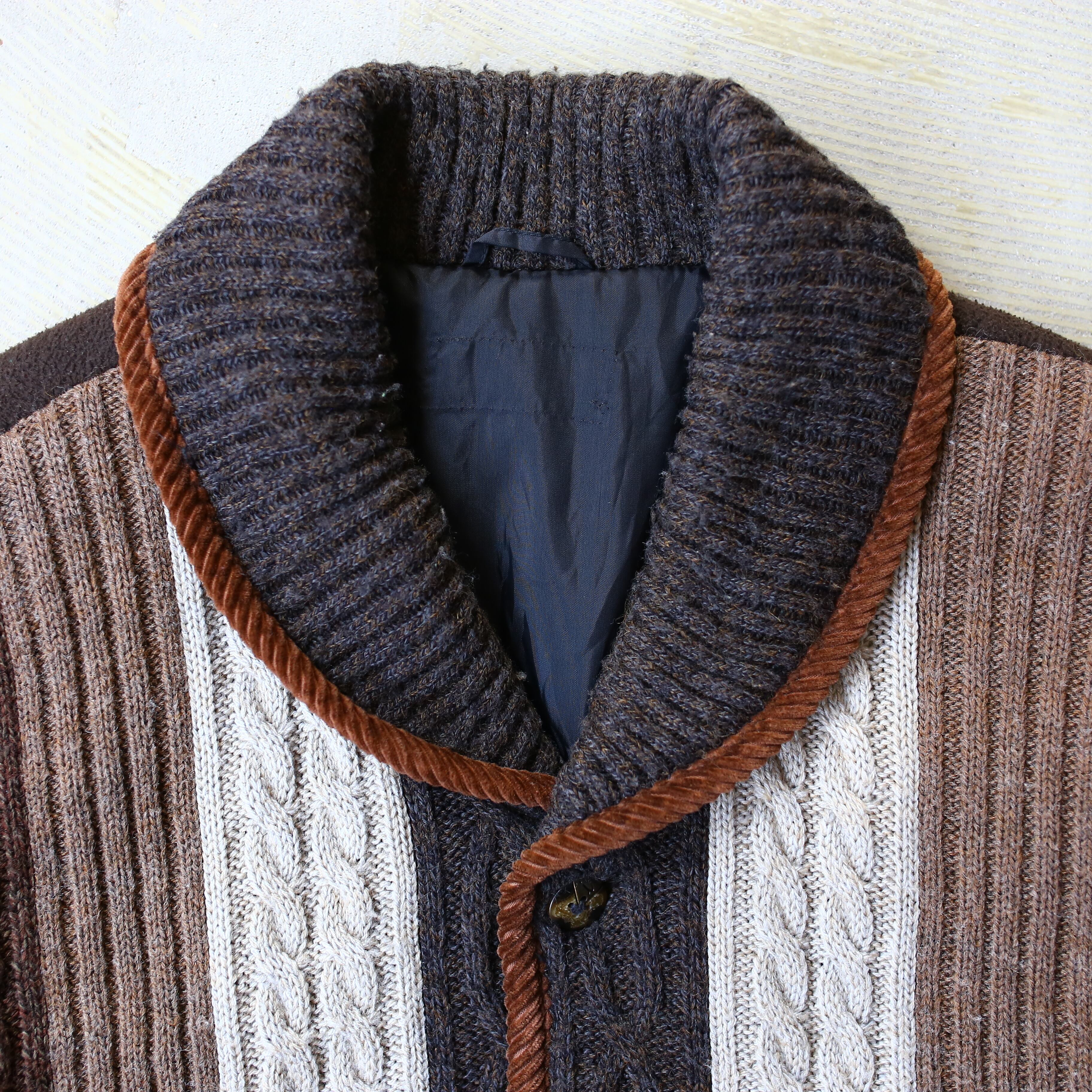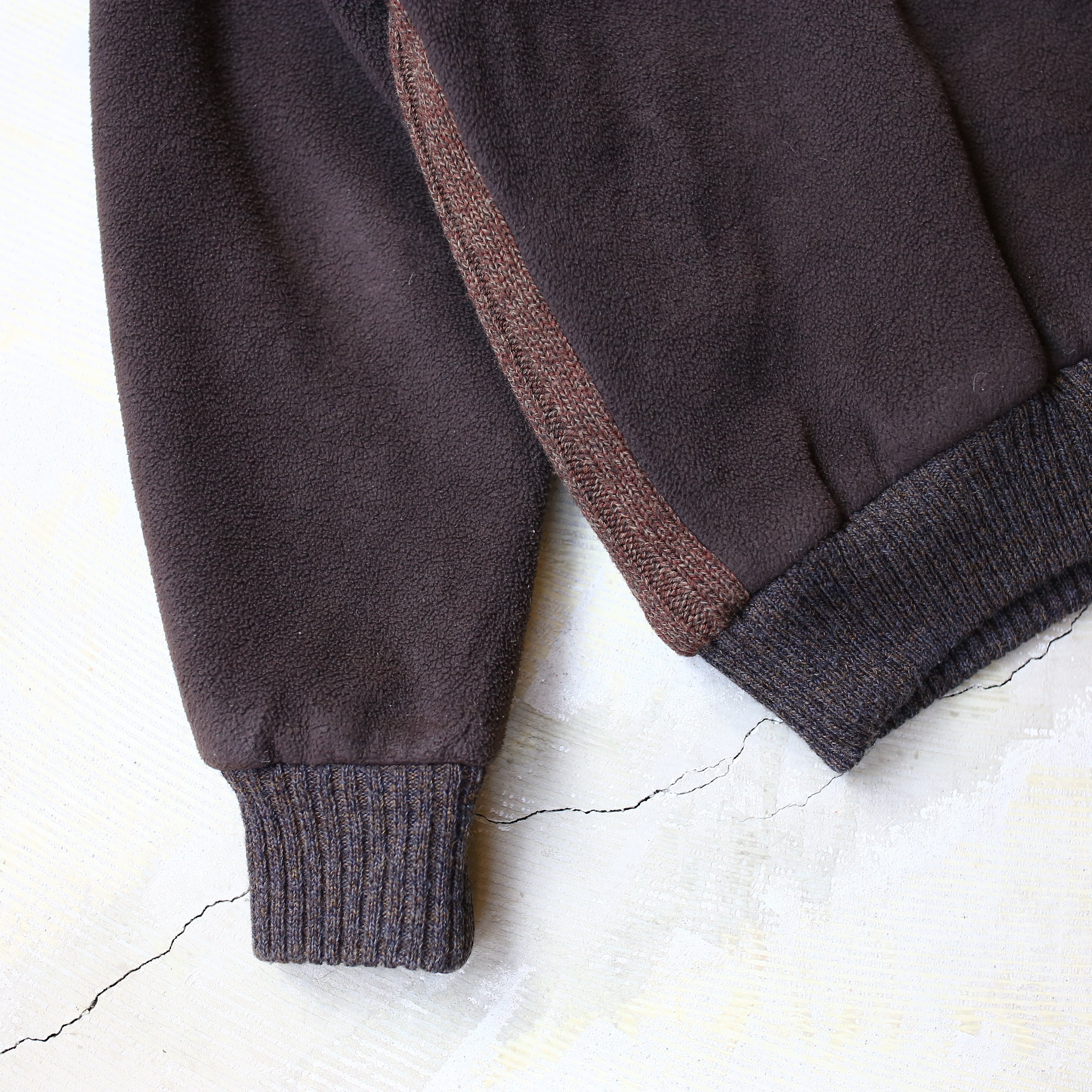 スリーブとバックはフリース素材で切り替えたニットカーディガンジャケット。