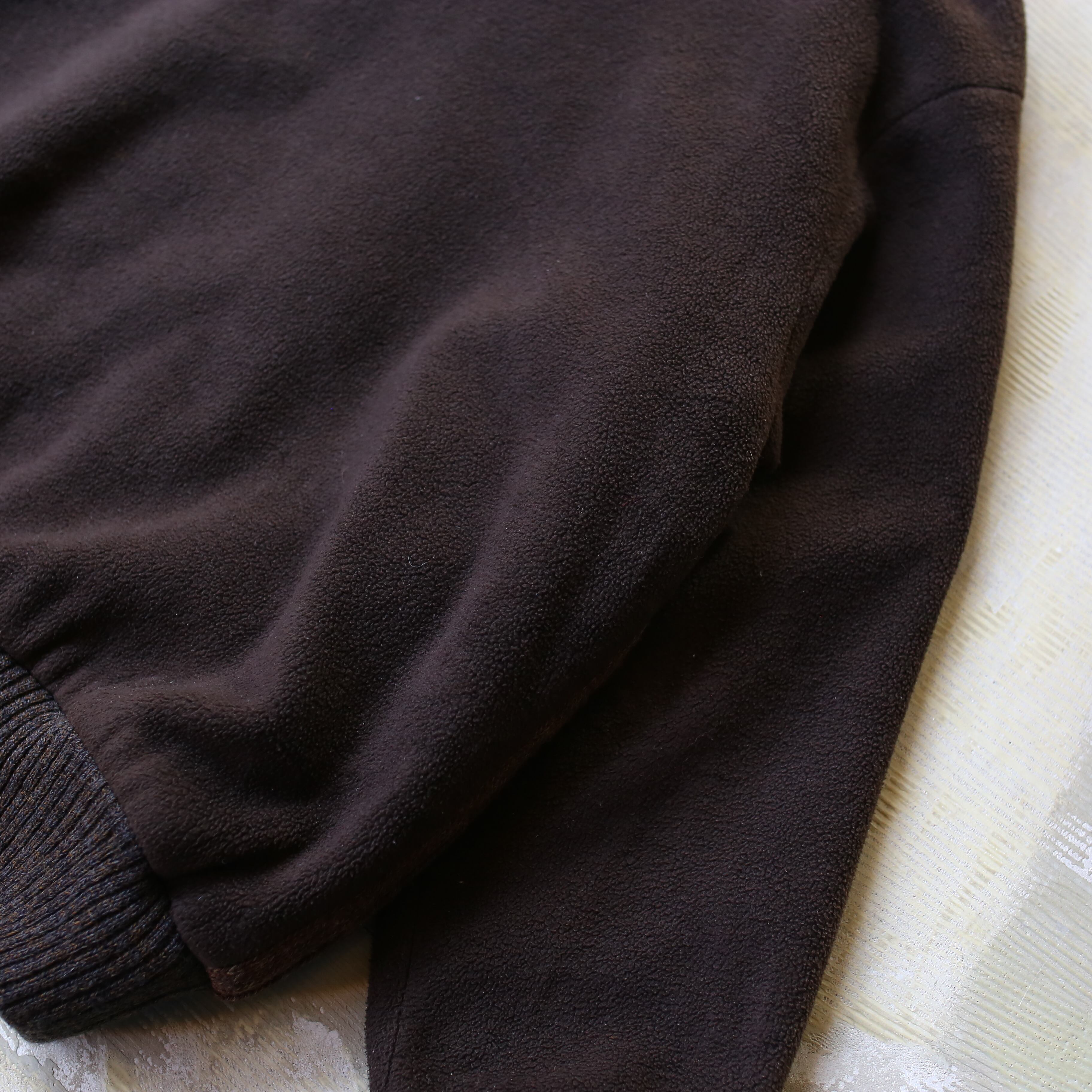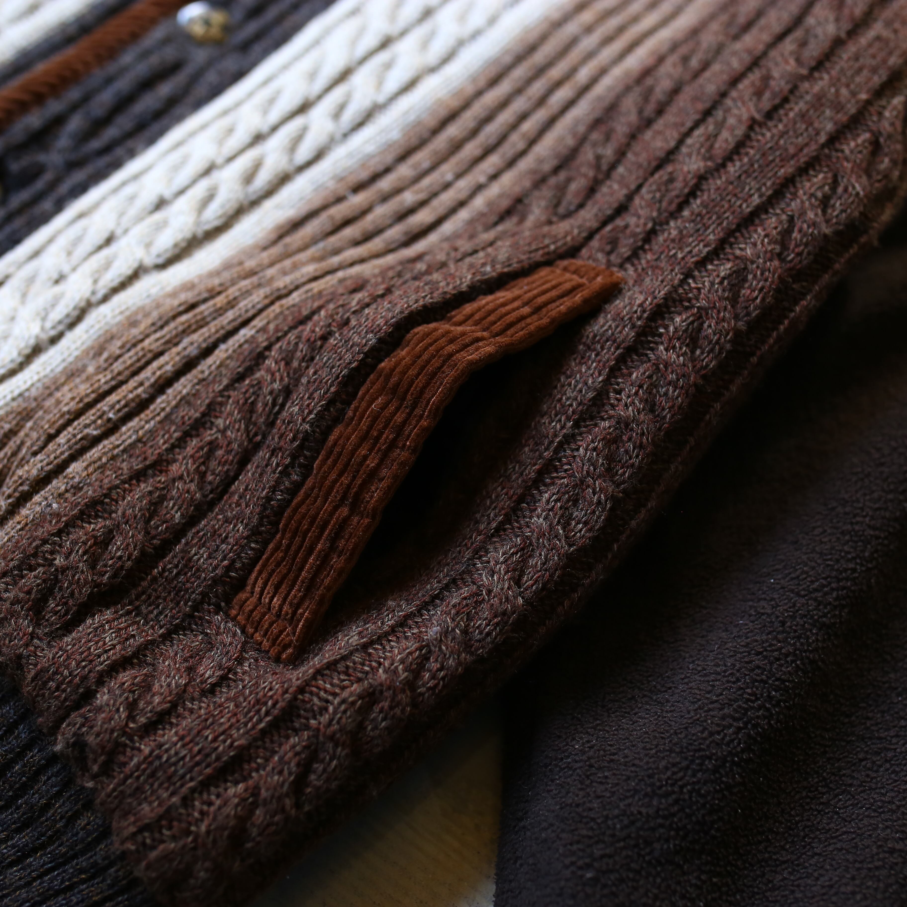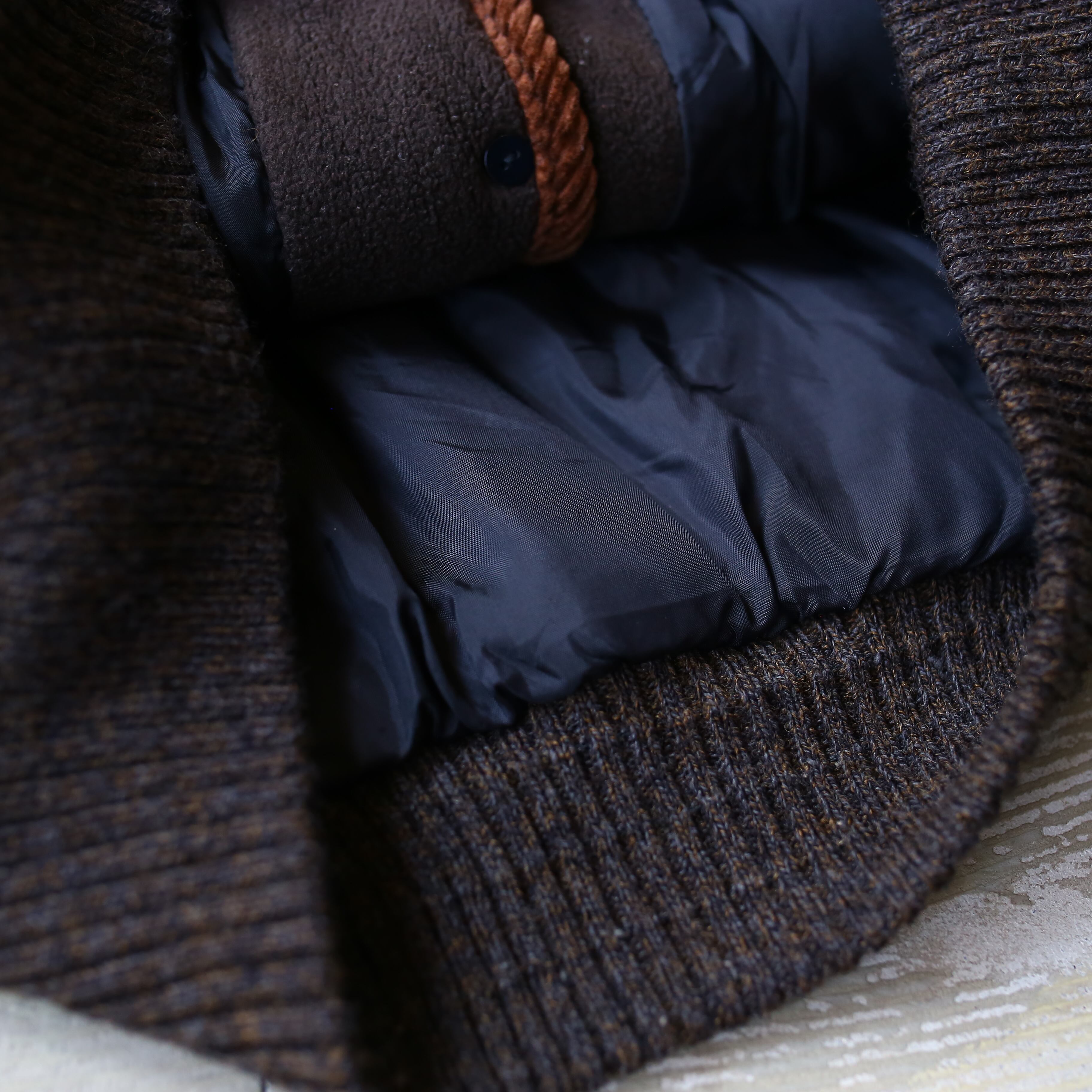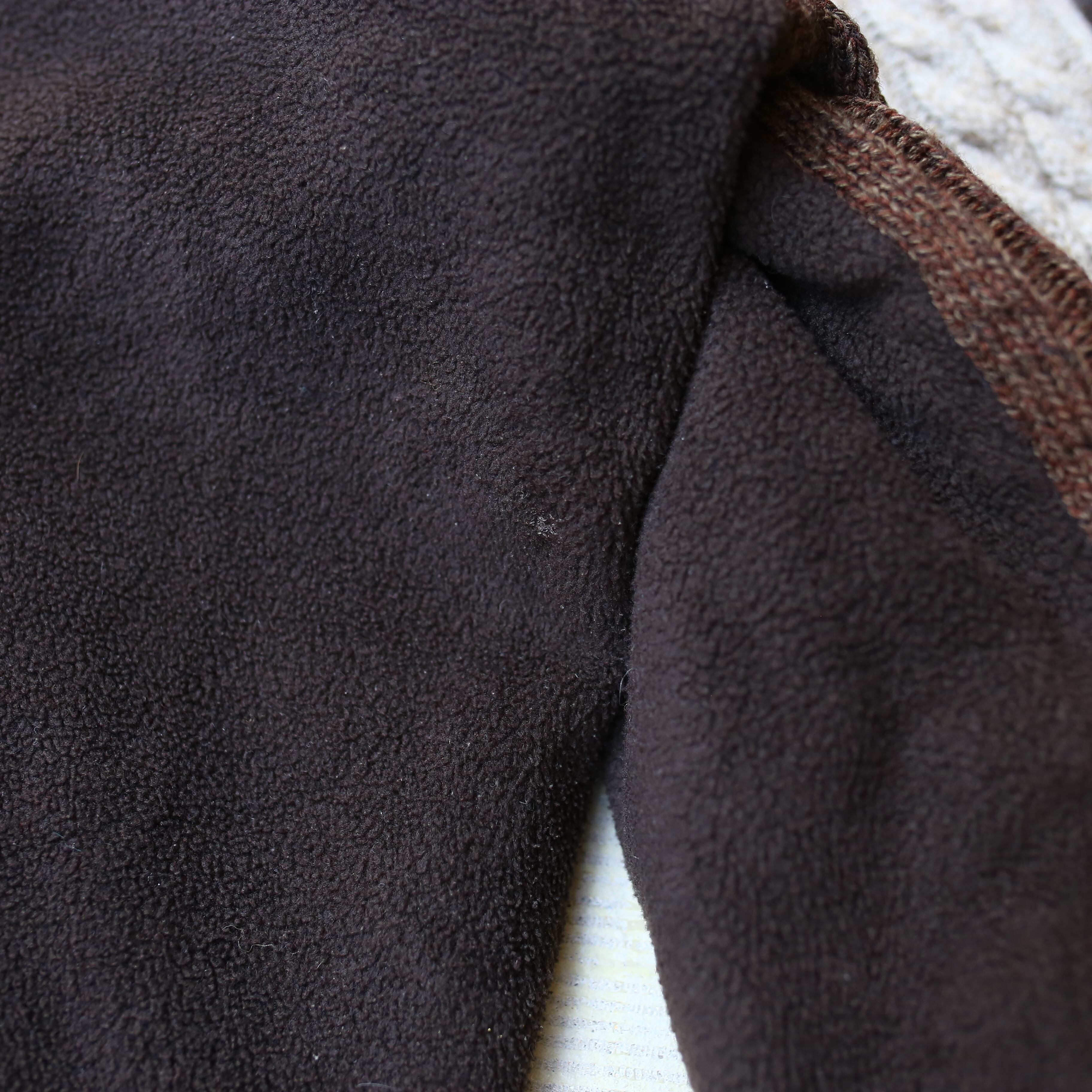 スリーブとバックはフリース素材で切り替えたニットカーディガンジャケット。