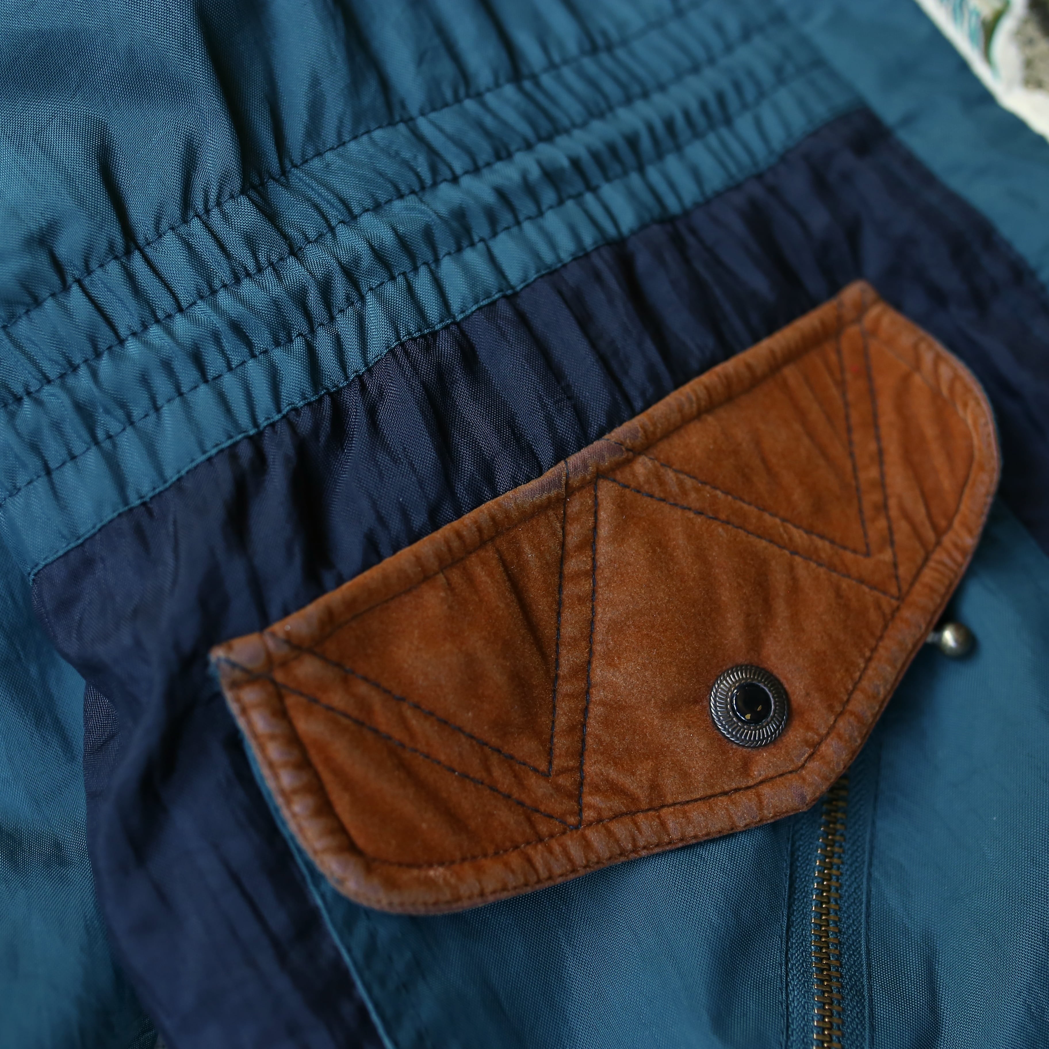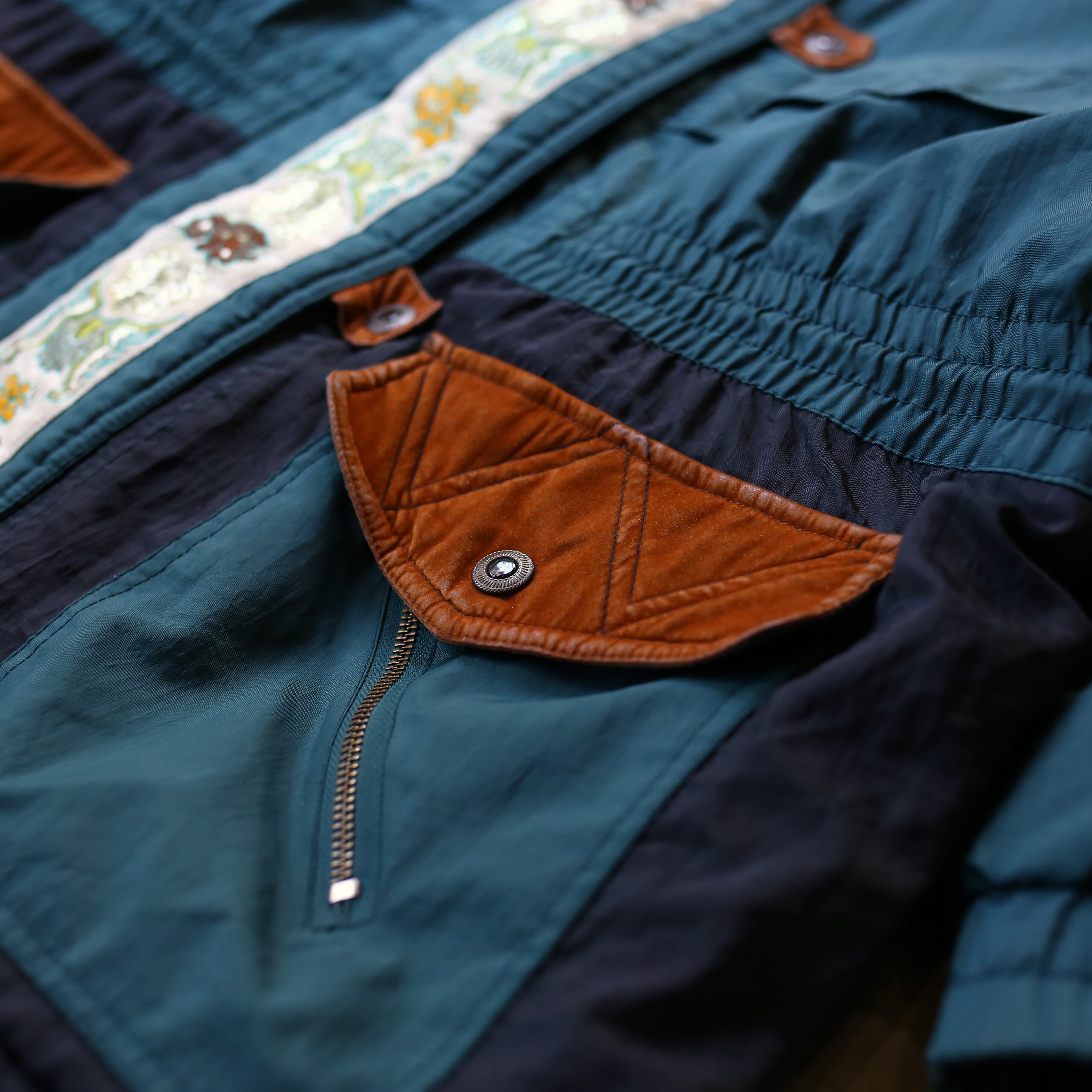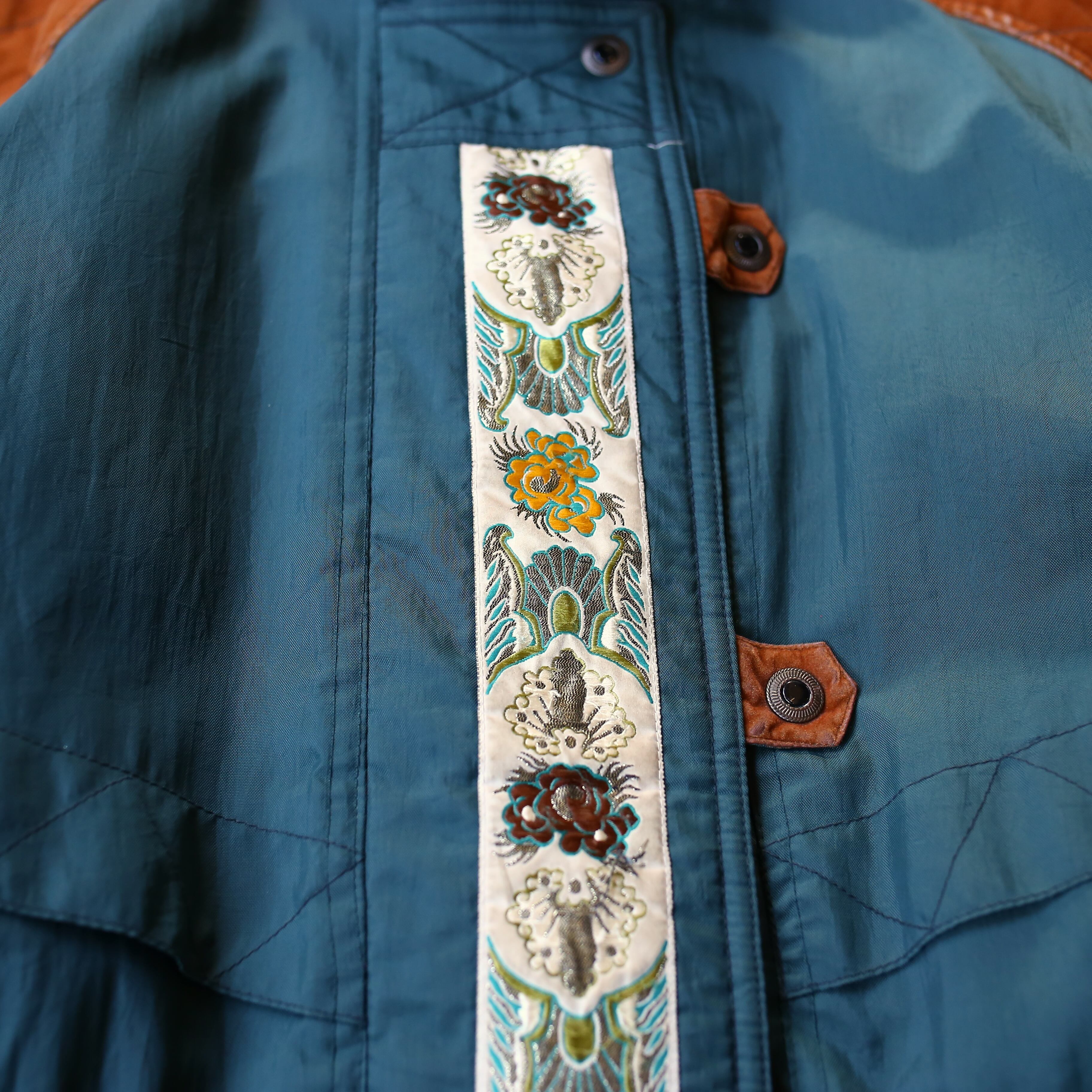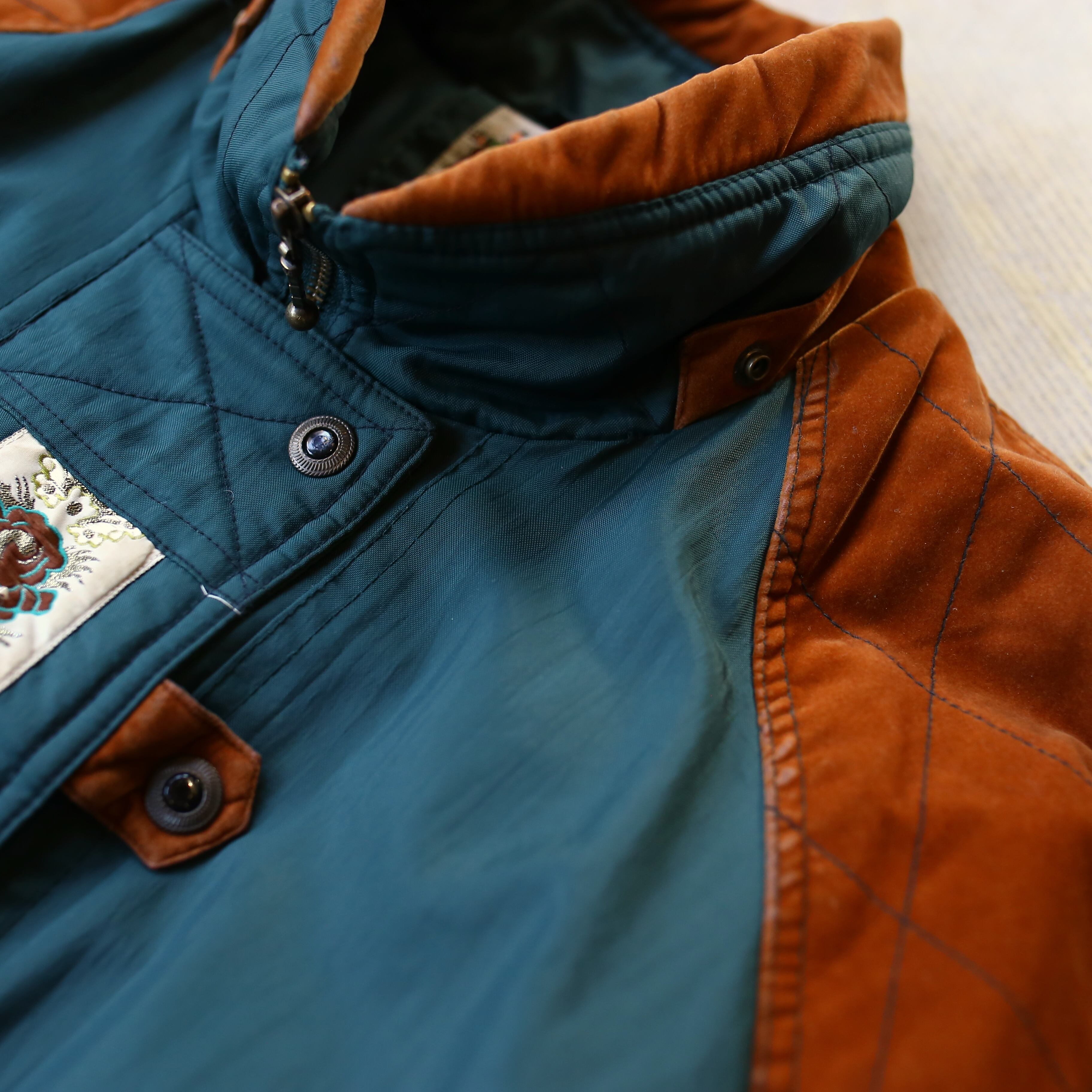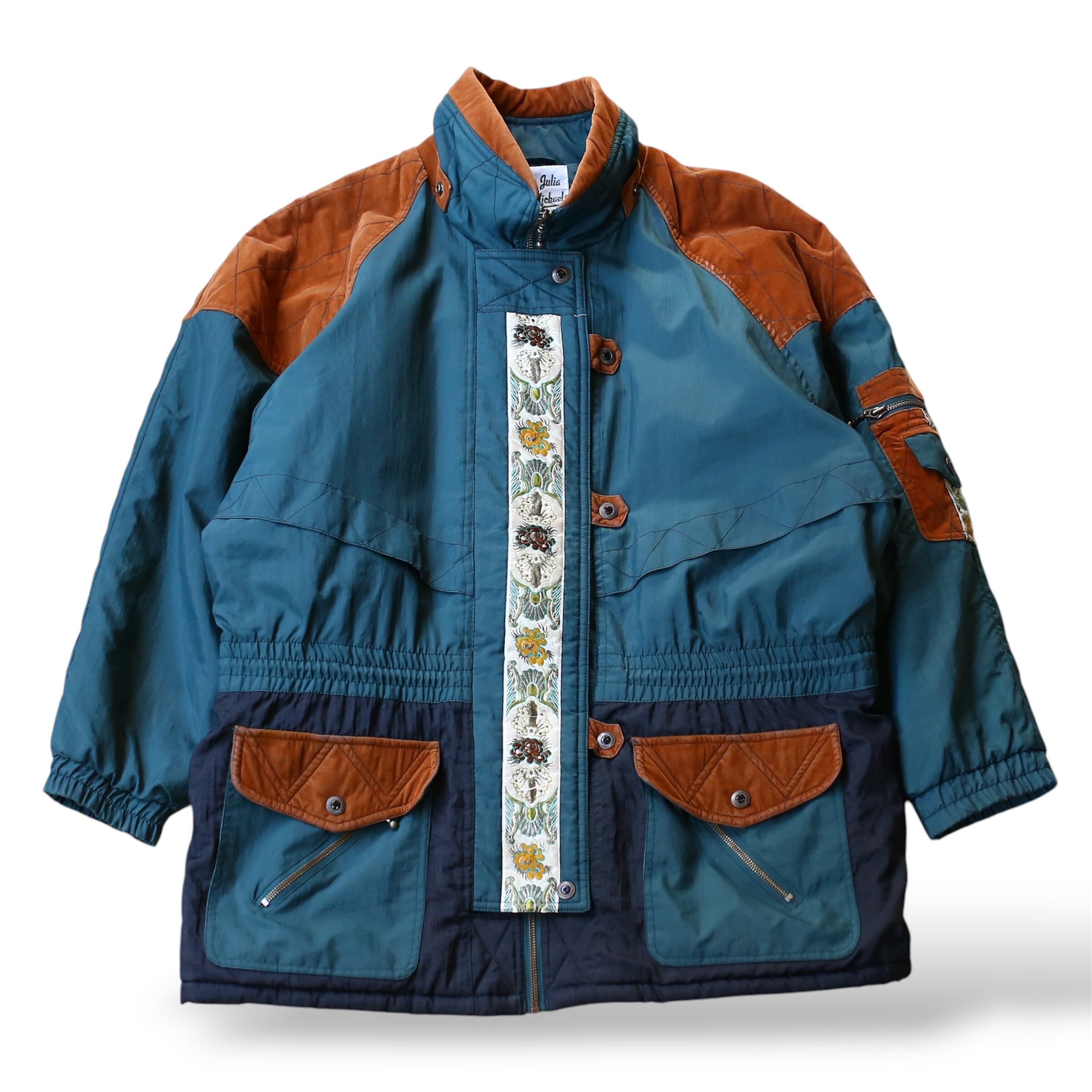 1990's VARIOUS FABRIC SWITCHED HI NECK MIDDLE COAT / 90年代 切替 アート ハイネック コート ジャケット
