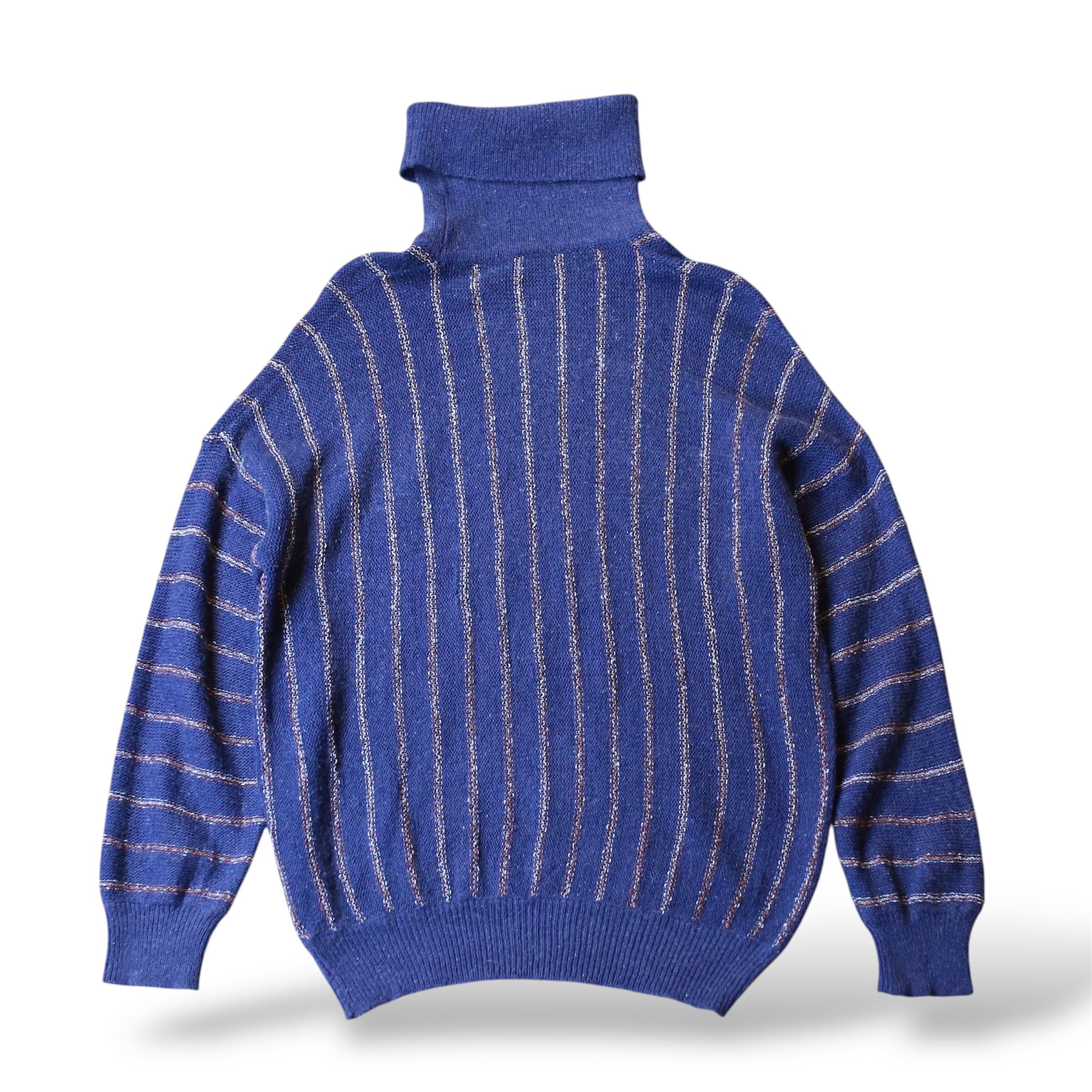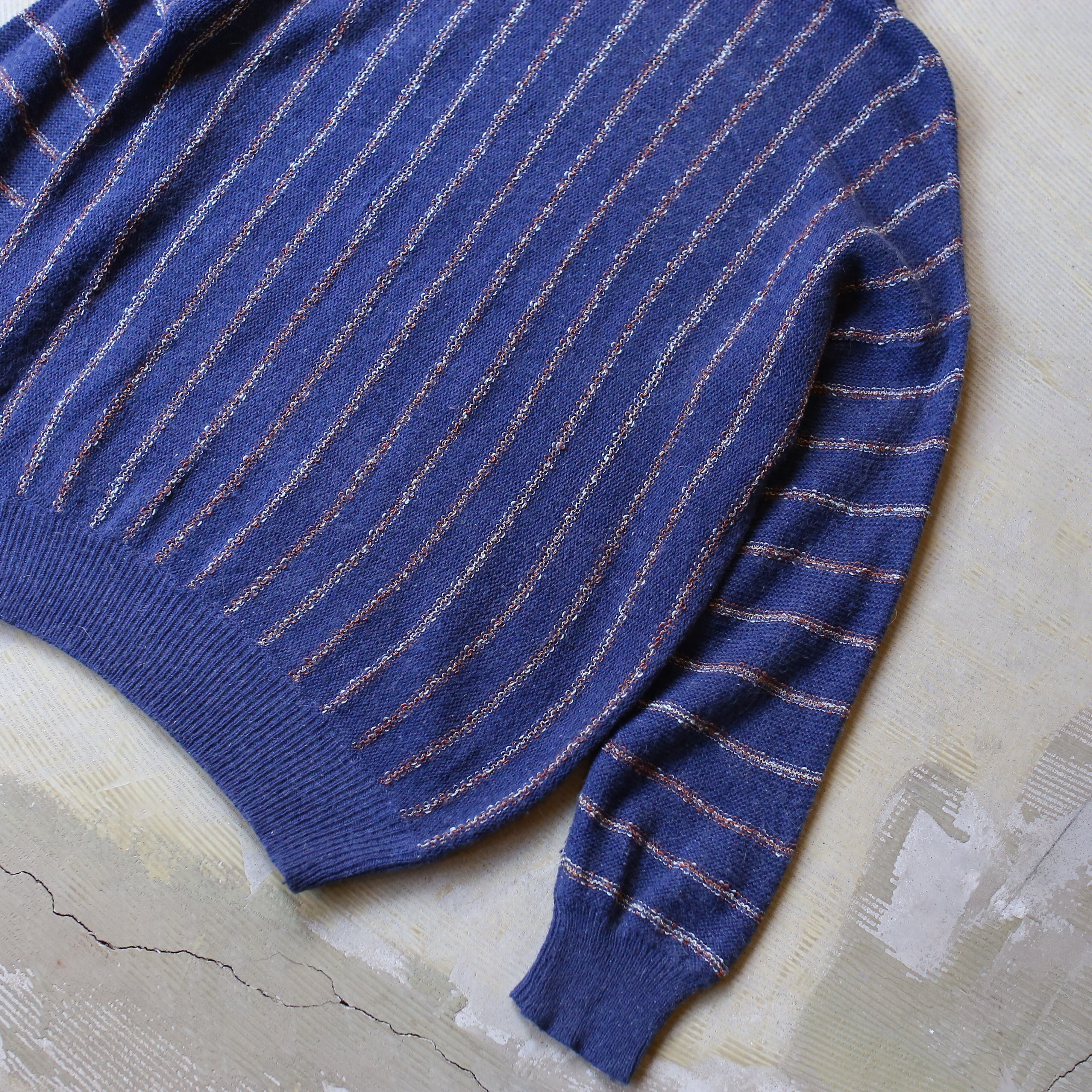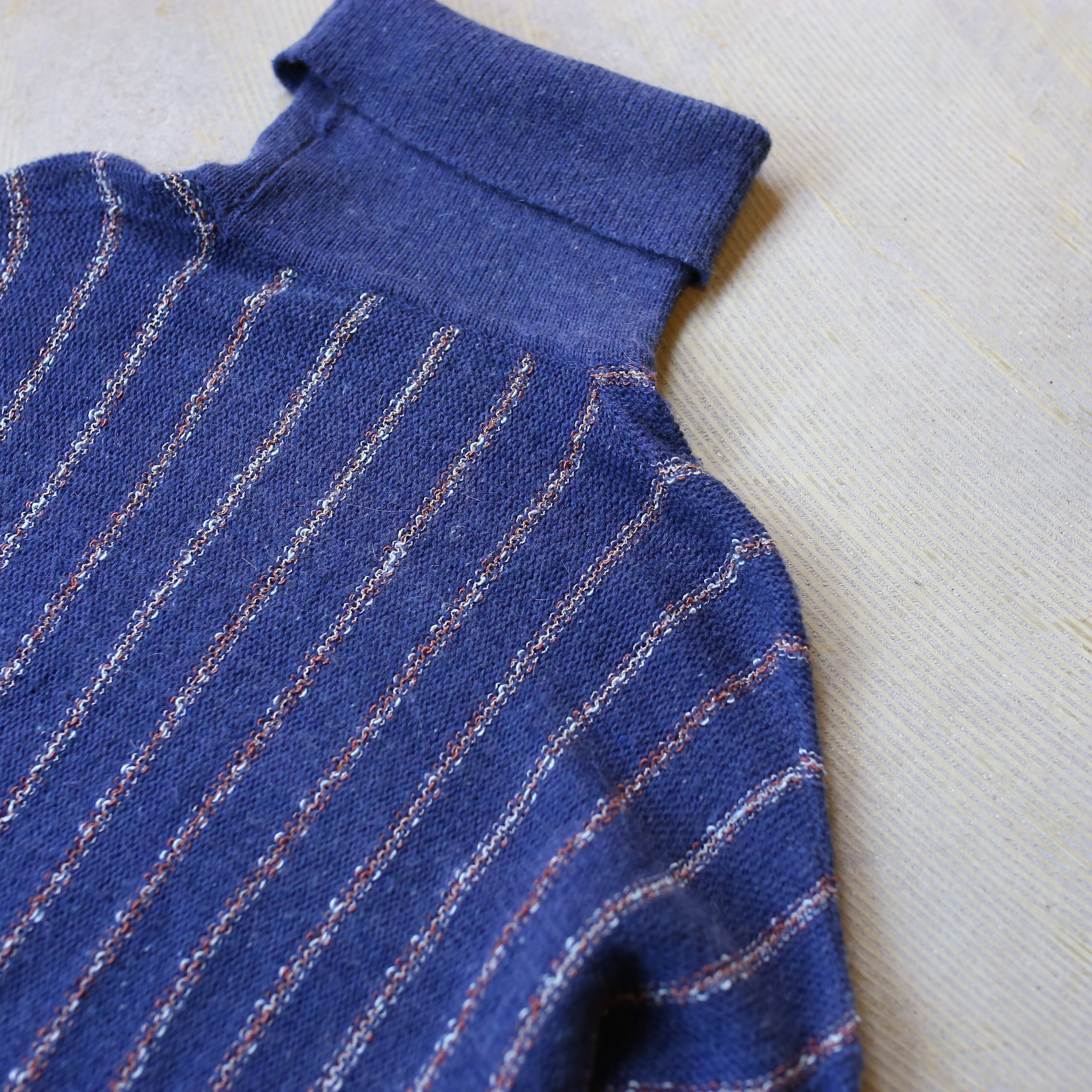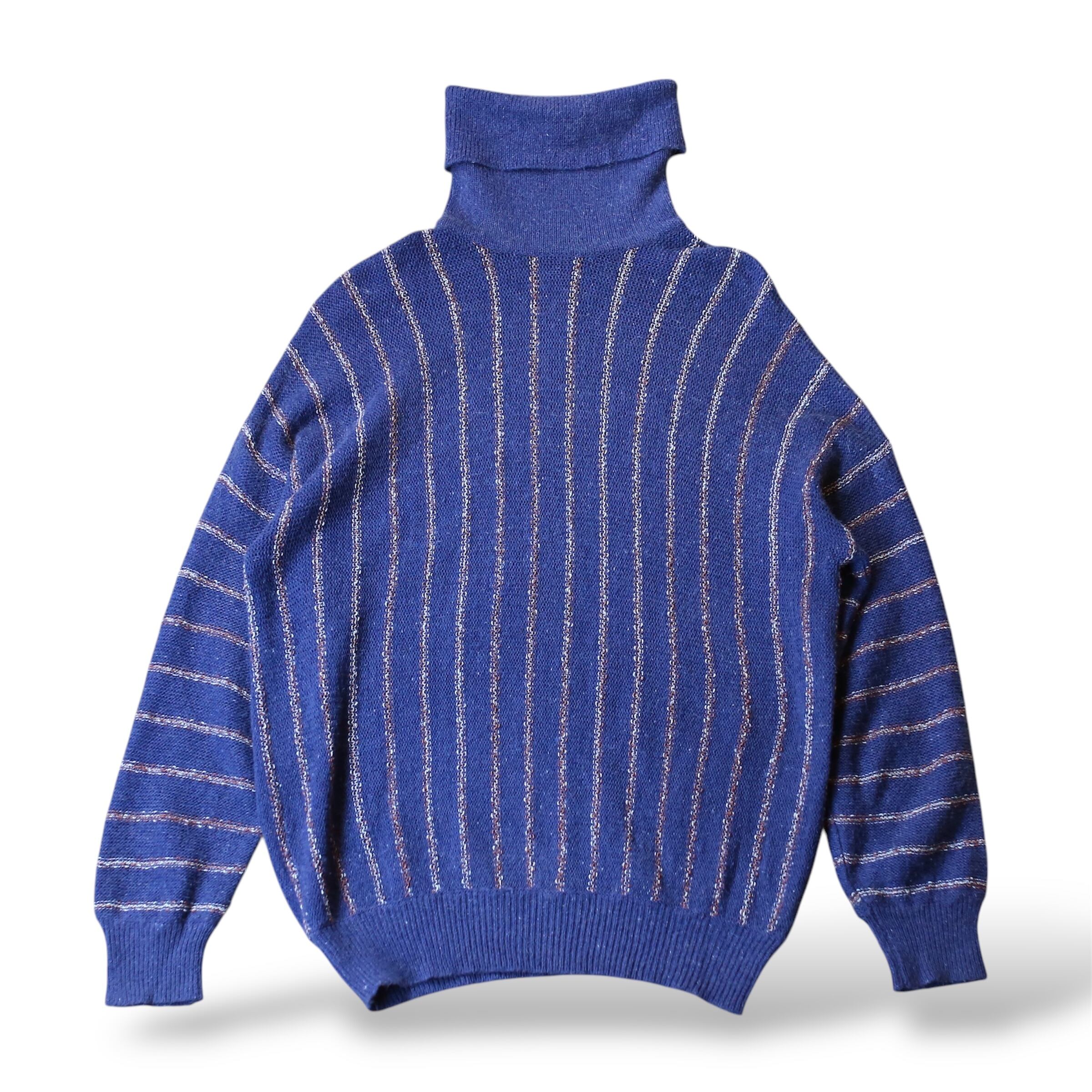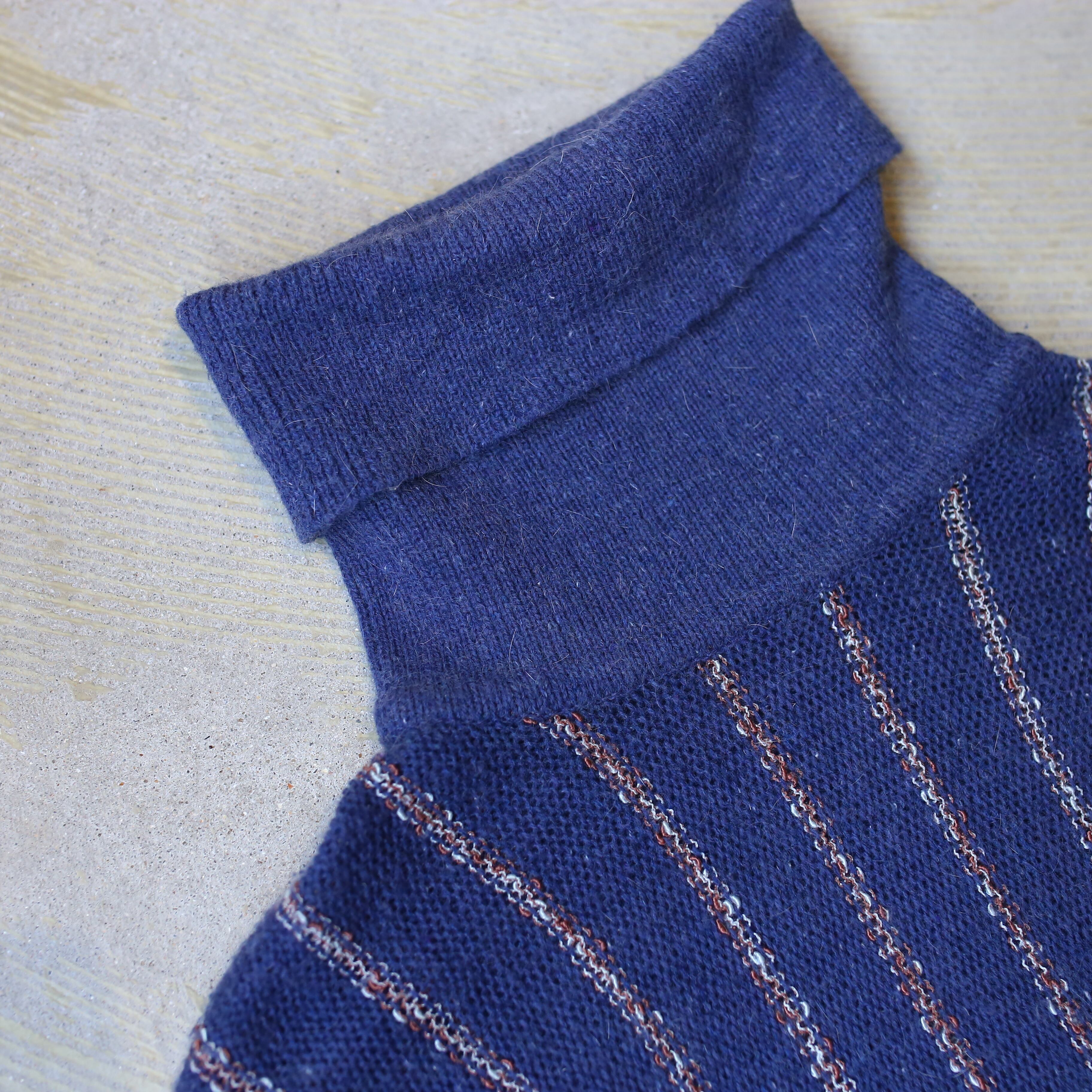 STRIPE PATTERN TURTLE NECK ANGORA KNIT SWEATER / ストライプ 総柄 タートル ネック ニット セーター