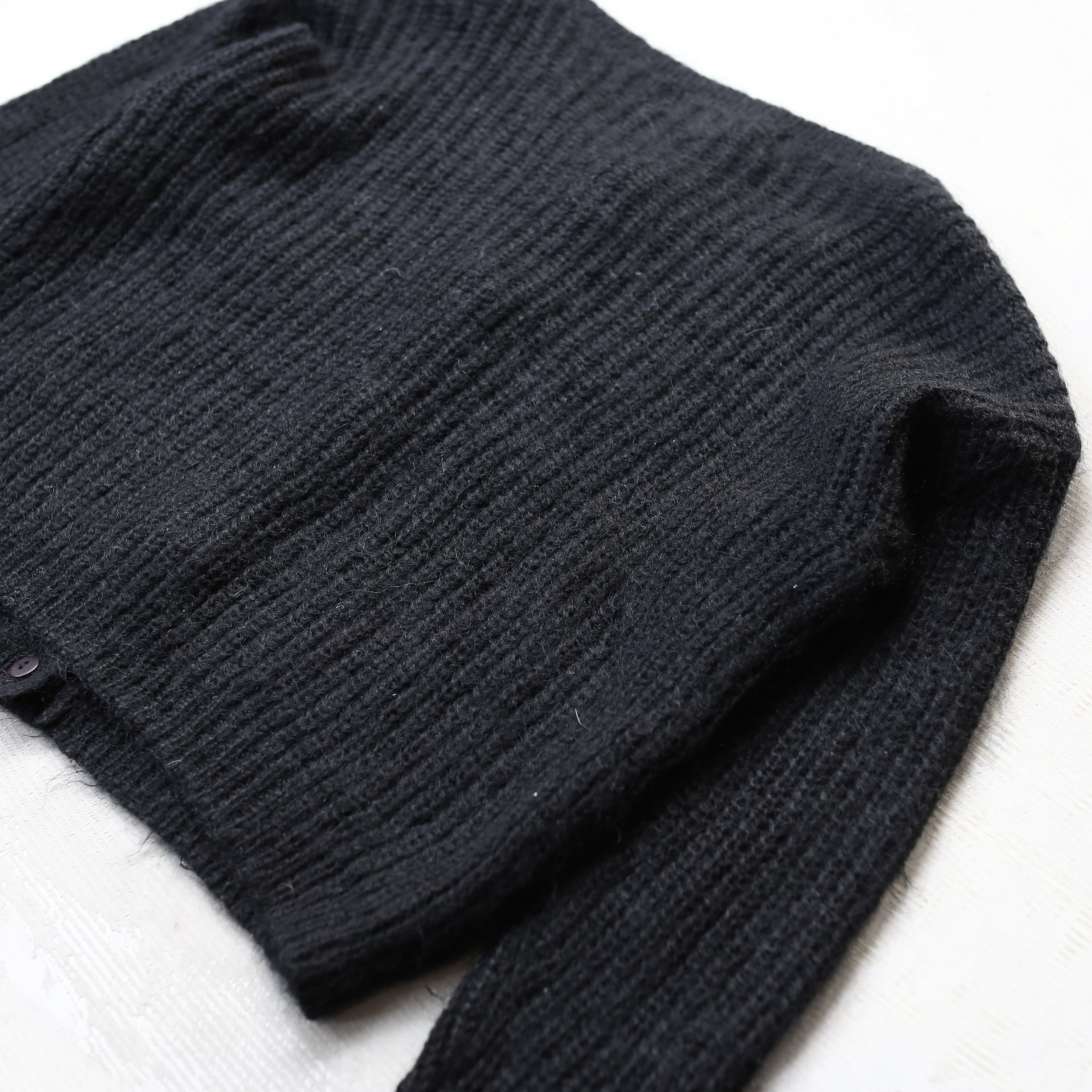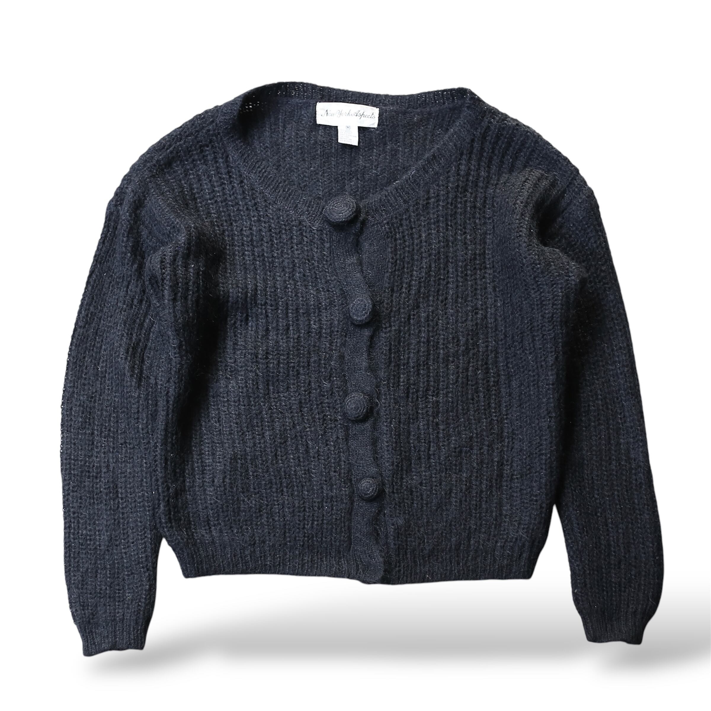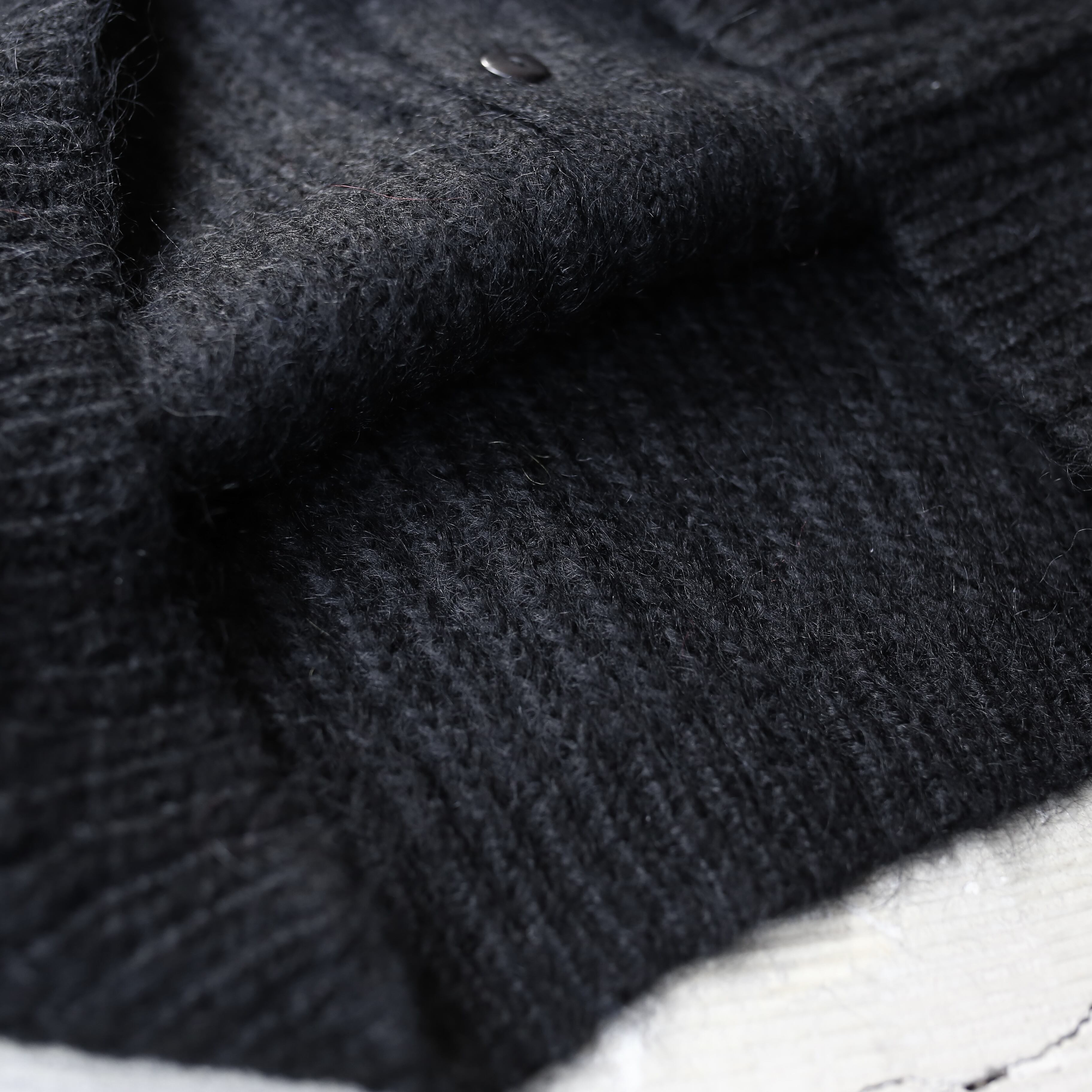 1990's VINTAGE BLACK COLOR BUTTON DESIGN MOHAIR KNIT CARDIGAN / 90年代 モヘア ニット カーディガン
