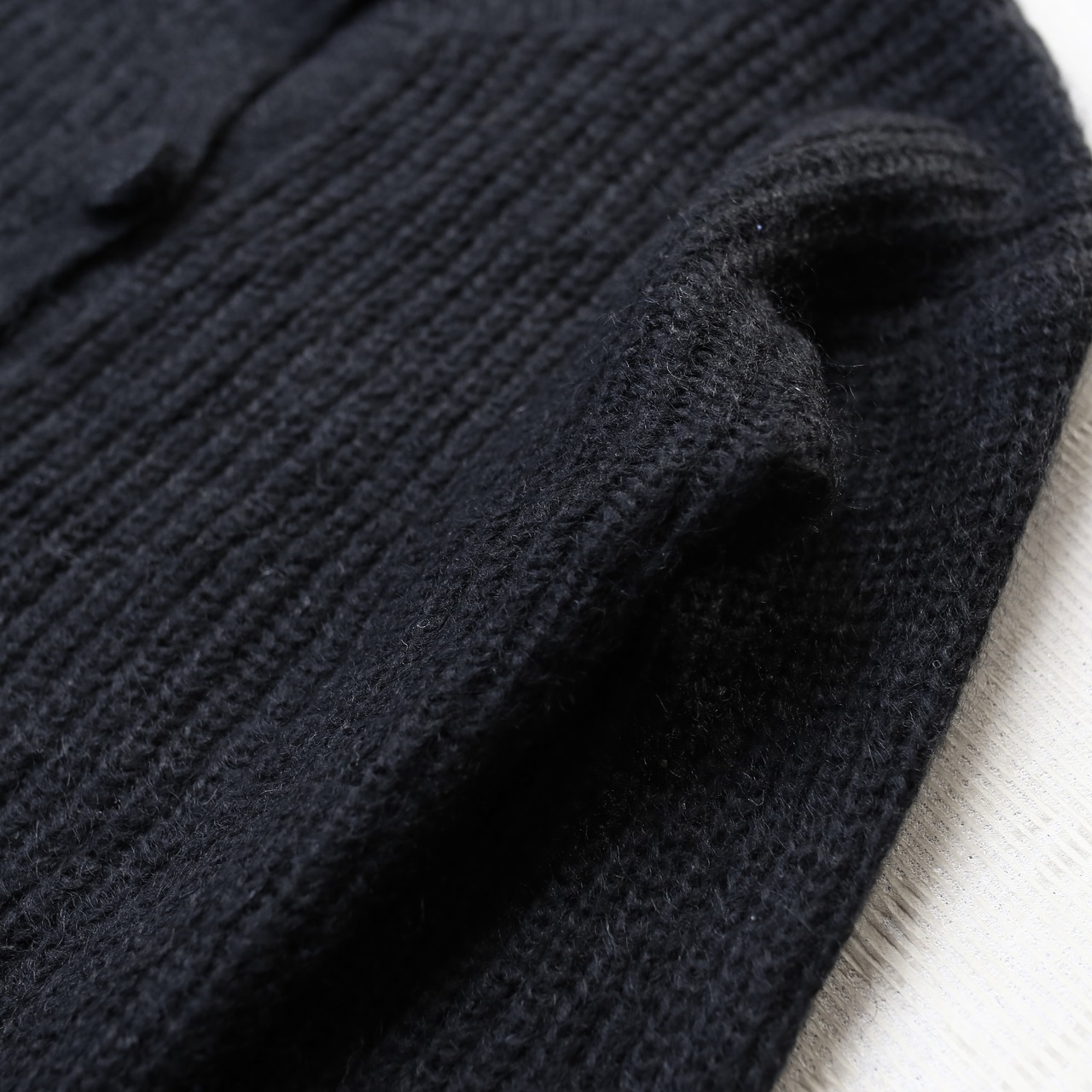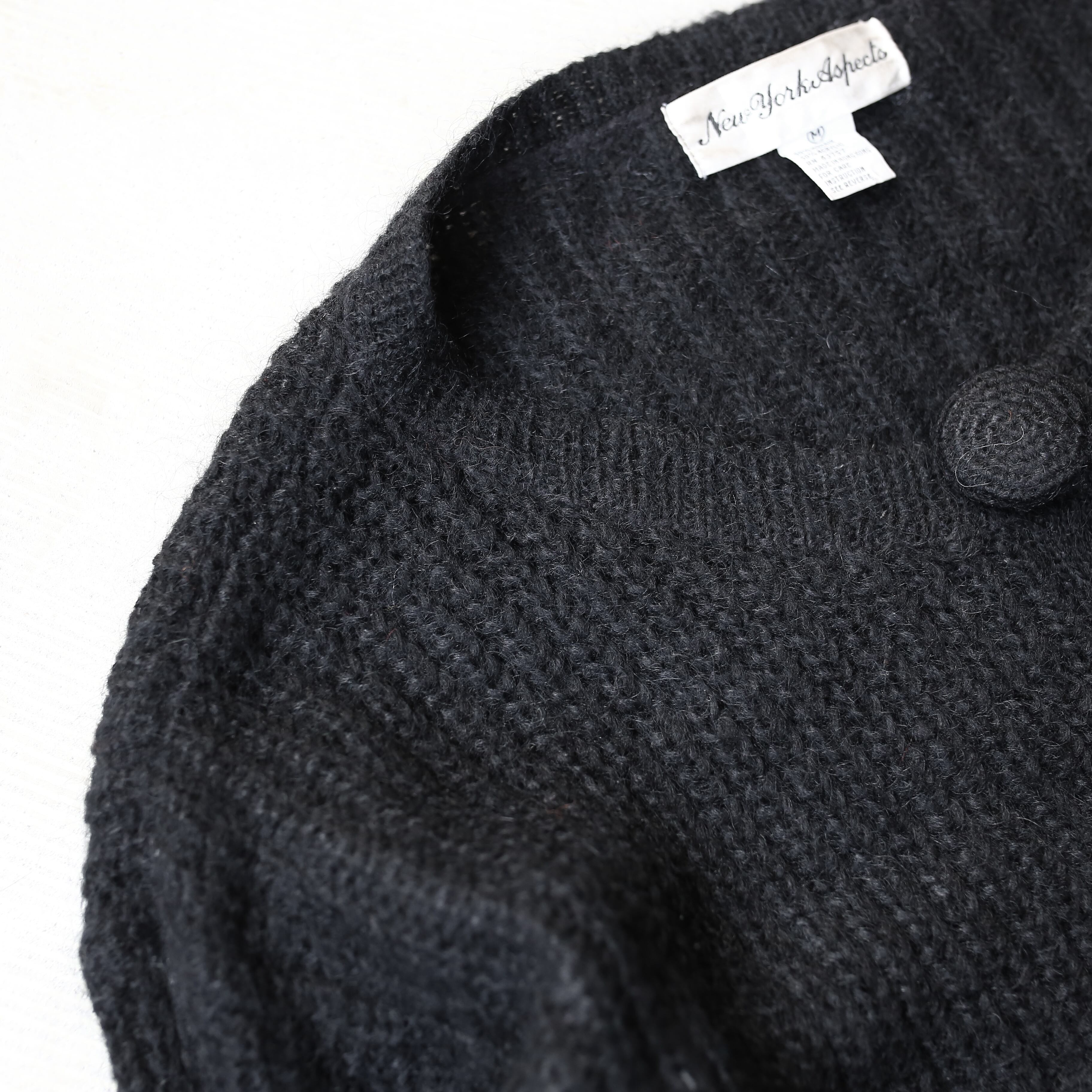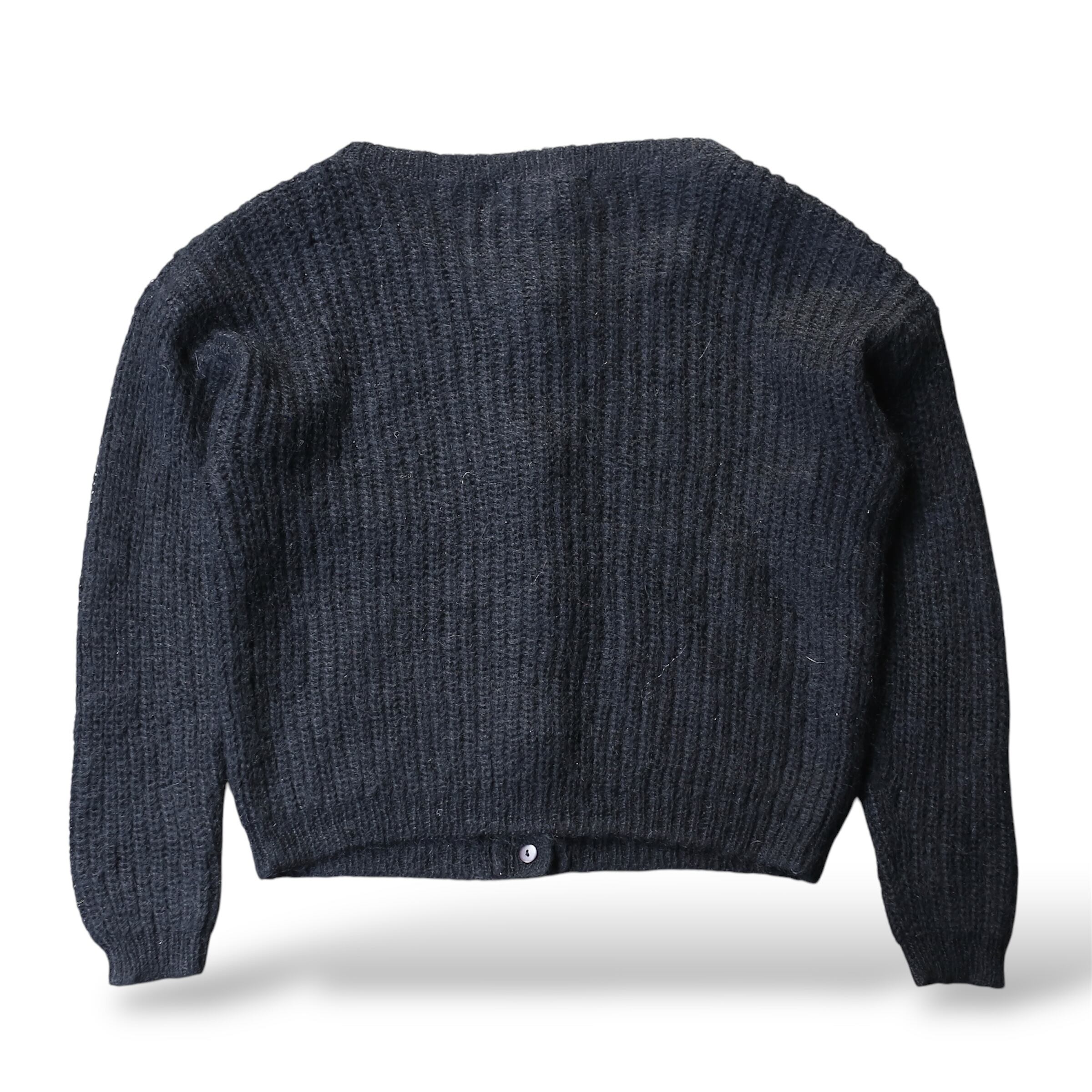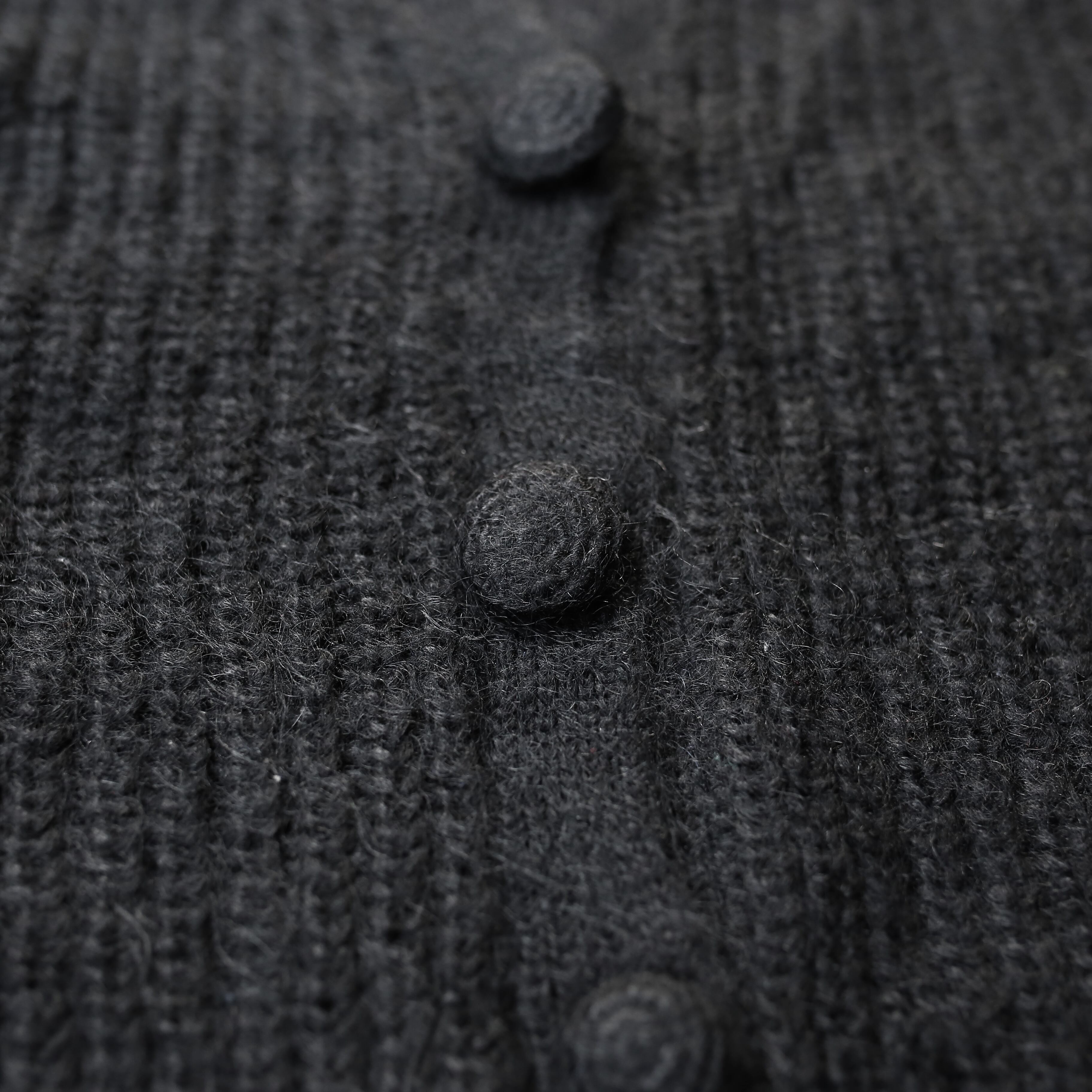 1990's VINTAGE BLACK COLOR BUTTON DESIGN MOHAIR KNIT CARDIGAN / 90年代 モヘア ニット カーディガン
