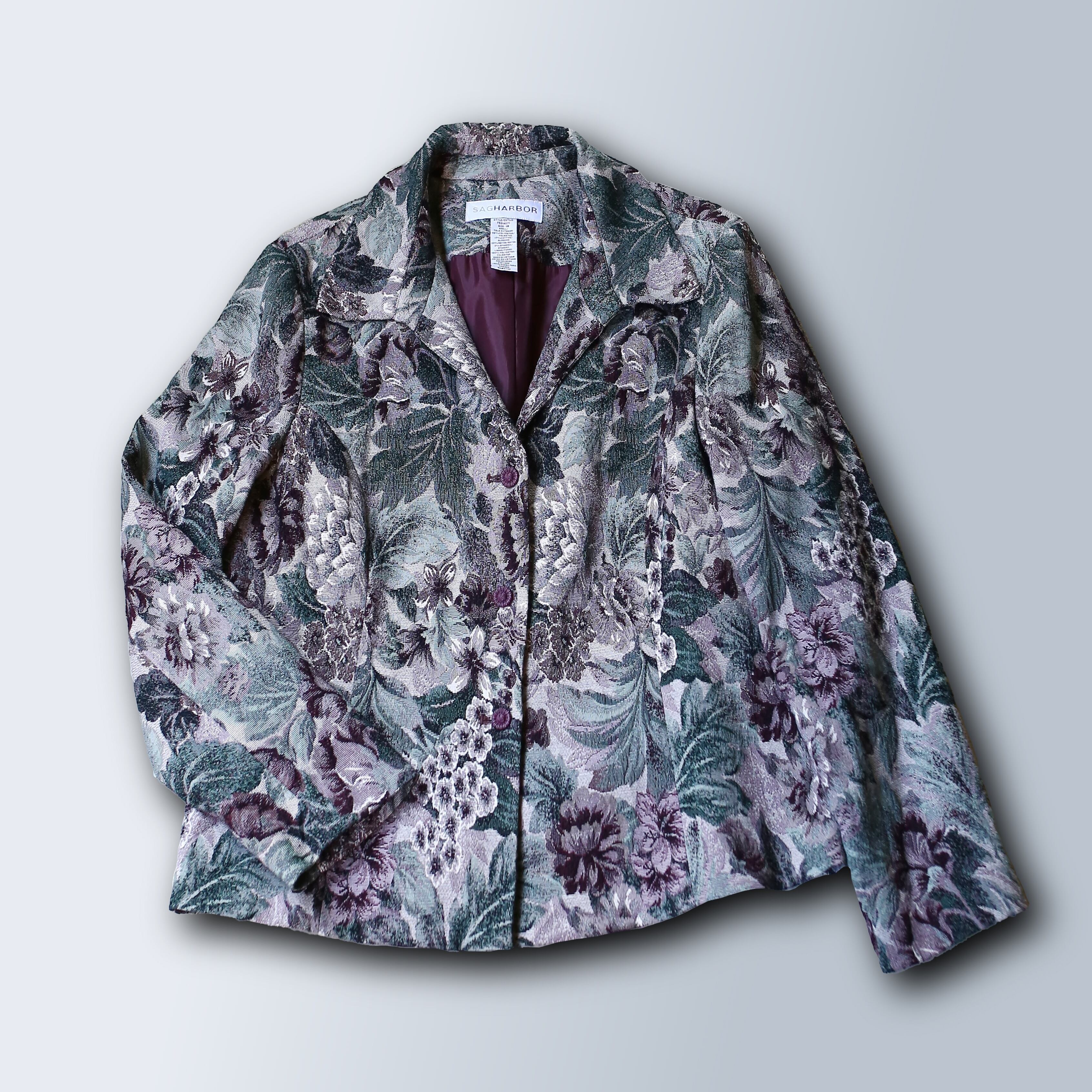 FLORAL PATTERN WAVE EMBROIDERY JACQUARD JACKET / 花柄 総柄 ゴブラン ジャガード ジャケット